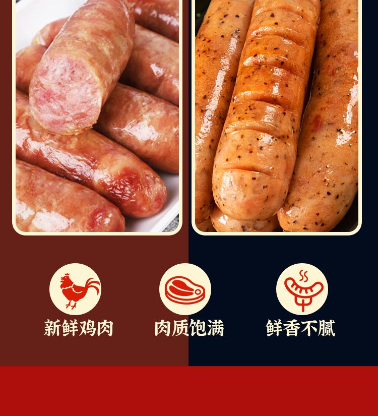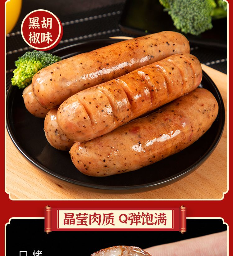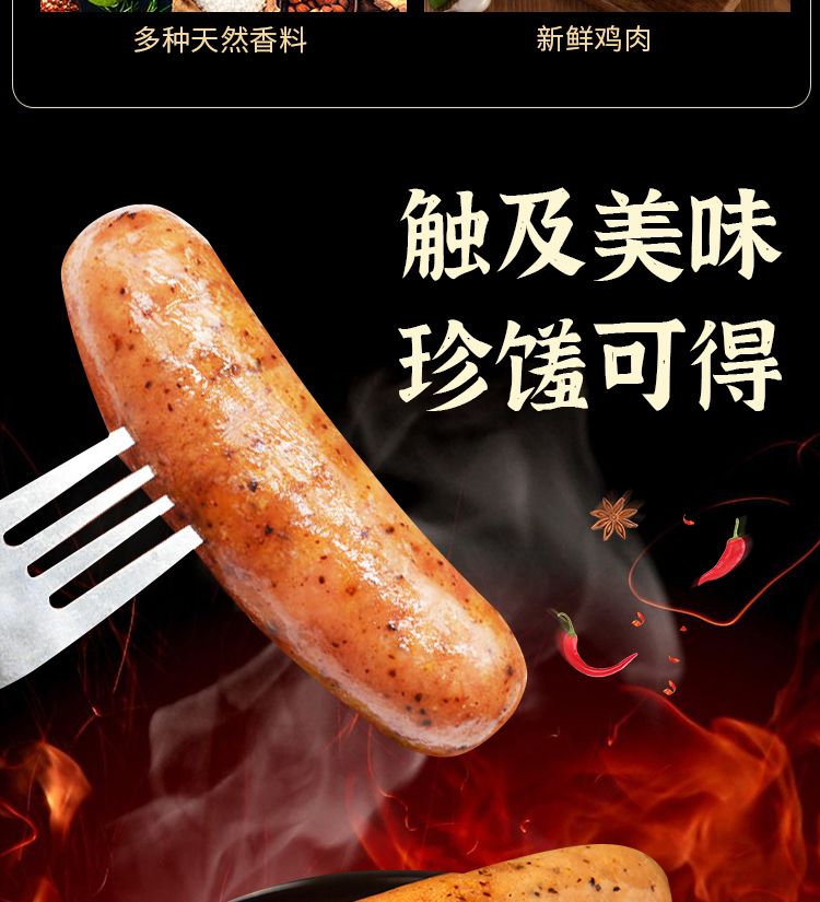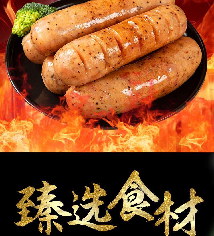 清真火山石烤肠鸡肉牛肉地道肠黑胡椒原味大香肠早餐肠烧烤肠批发