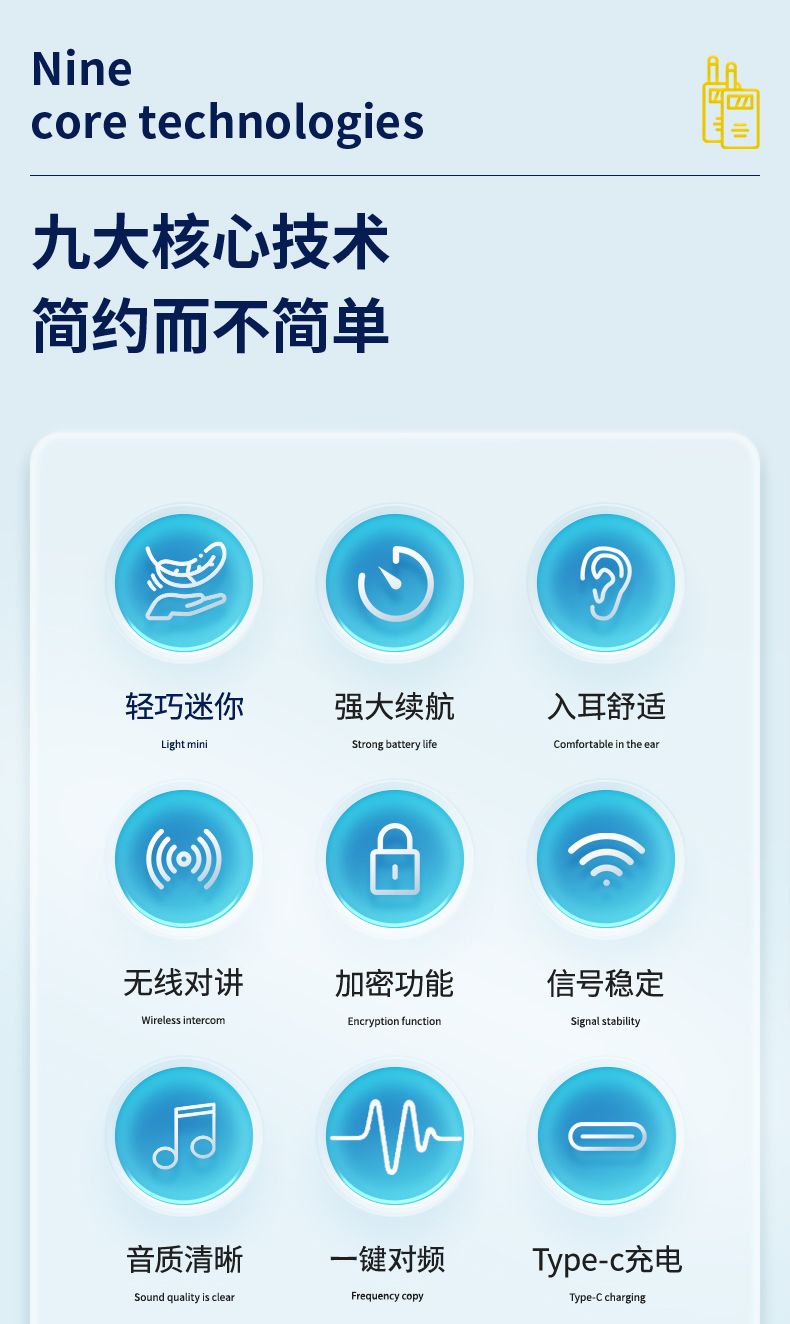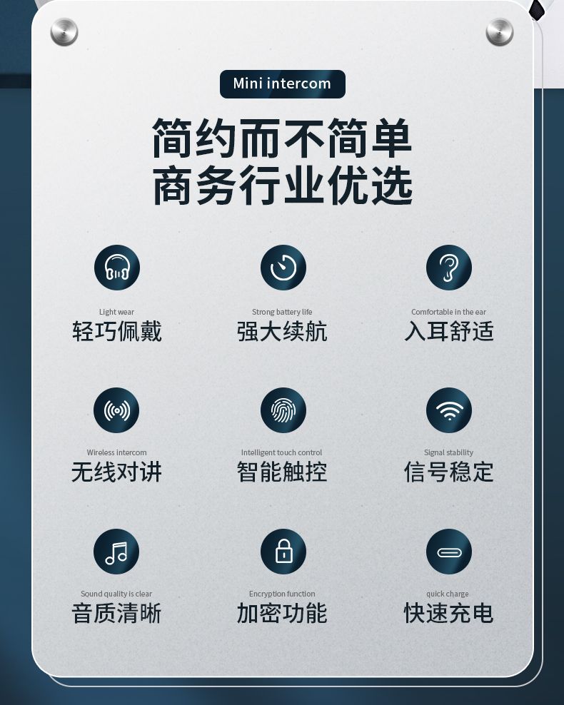 2024新款领夹式对讲机小型迷你耳麦饭店专用耳挂式耳机餐厅服务员