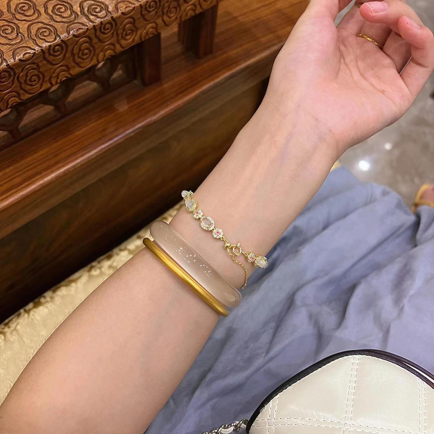 冰种白月光手镯白玉髓手镯月光玛瑙玉镯女生年轻款猫眼手镯送女友