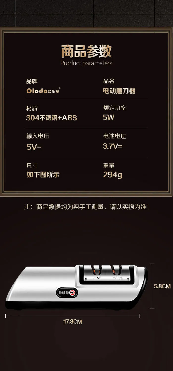 欧乐多品牌电动磨刀器快速磨刀神器金刚石磨刀棒水果刀菜刀精磨机