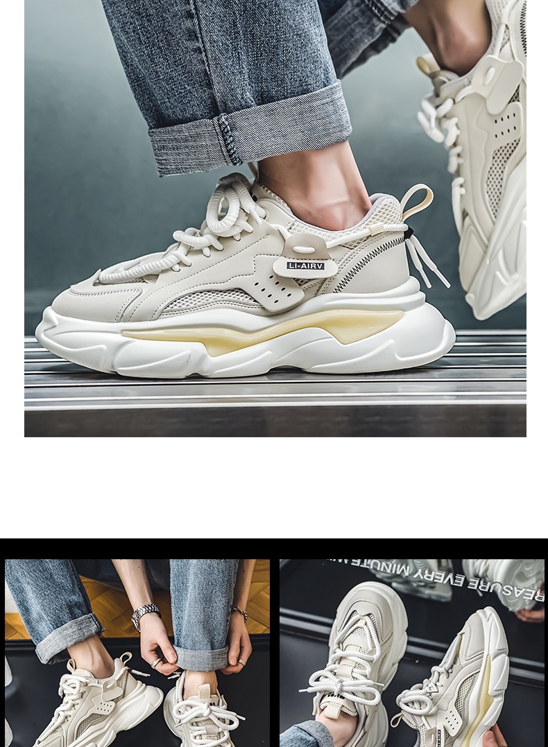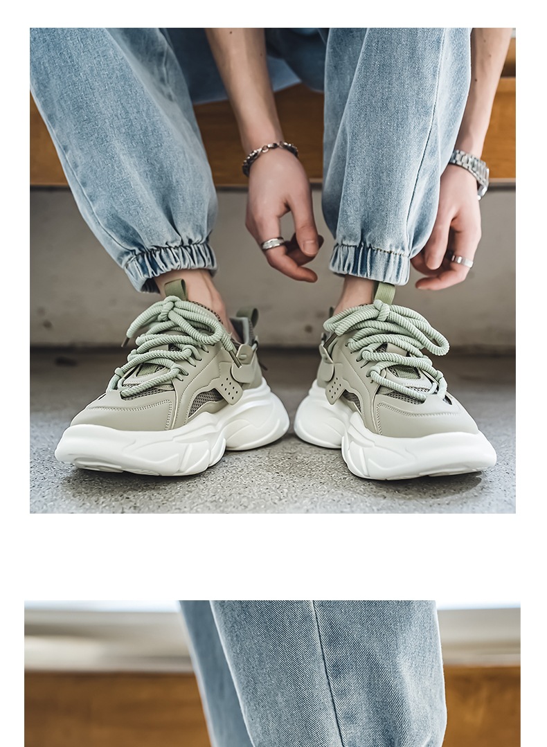 老爹2025春季男鞋新款透气潮流厚底百搭跑步运动鞋运动休闲鞋鞋子