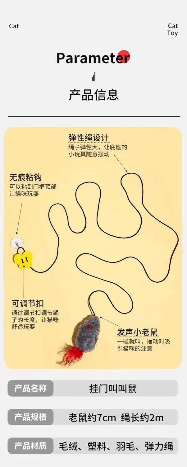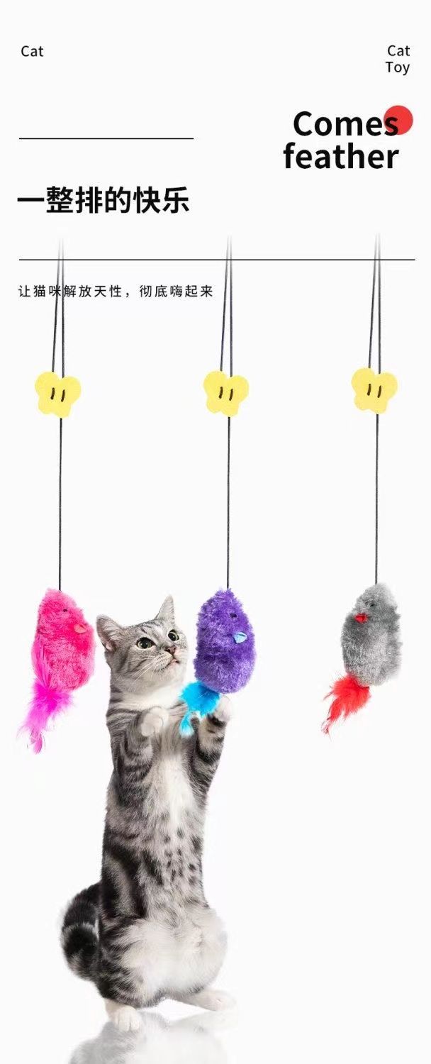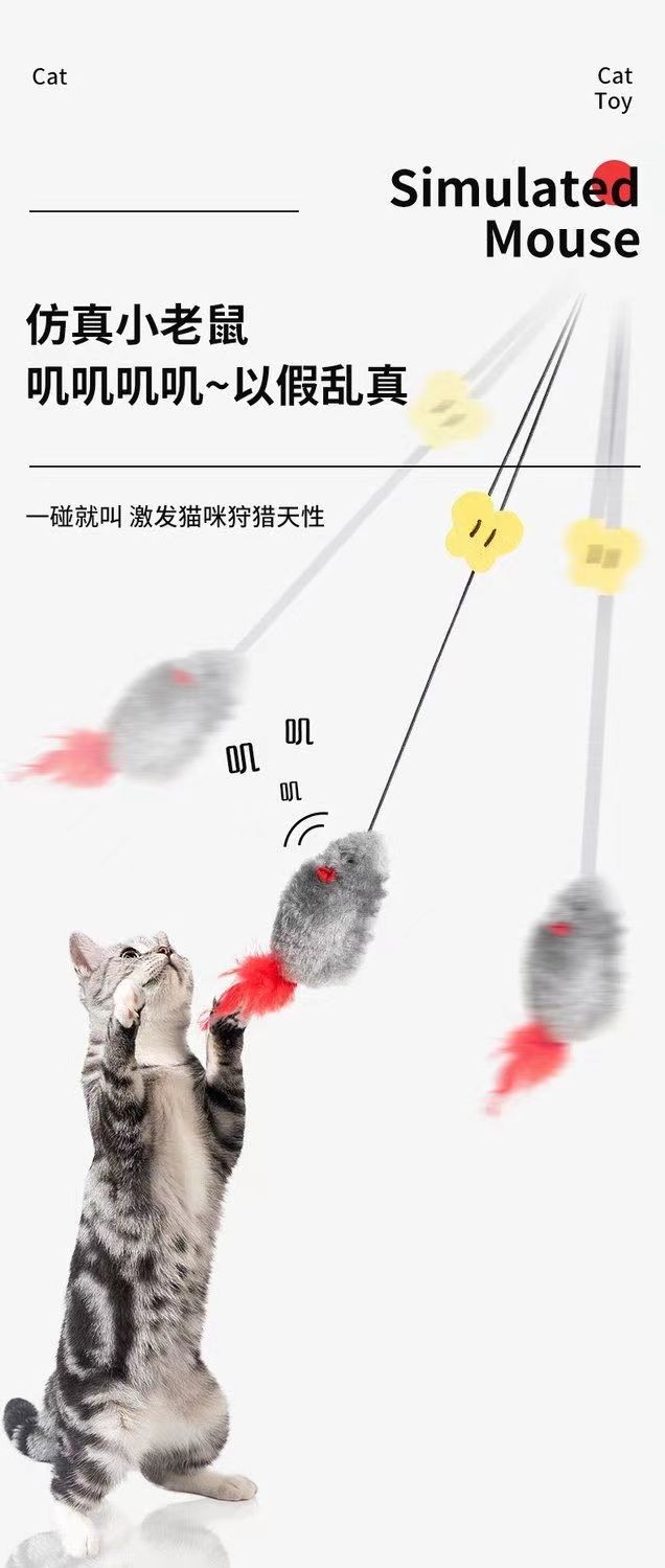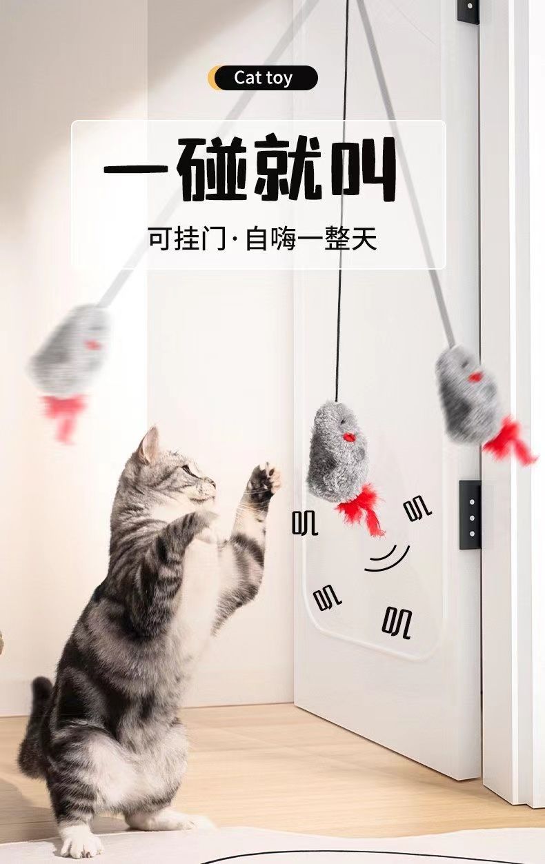 新款悬挂式逗猫棒猫玩具自己玩解闷自嗨仿生叫叫鼠发声逗猫咪玩具