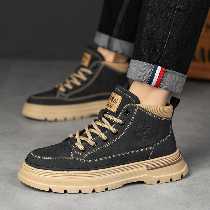 潮流男鞋2024春秋季新款男士高帮复古工装马丁靴百搭户外休闲鞋子