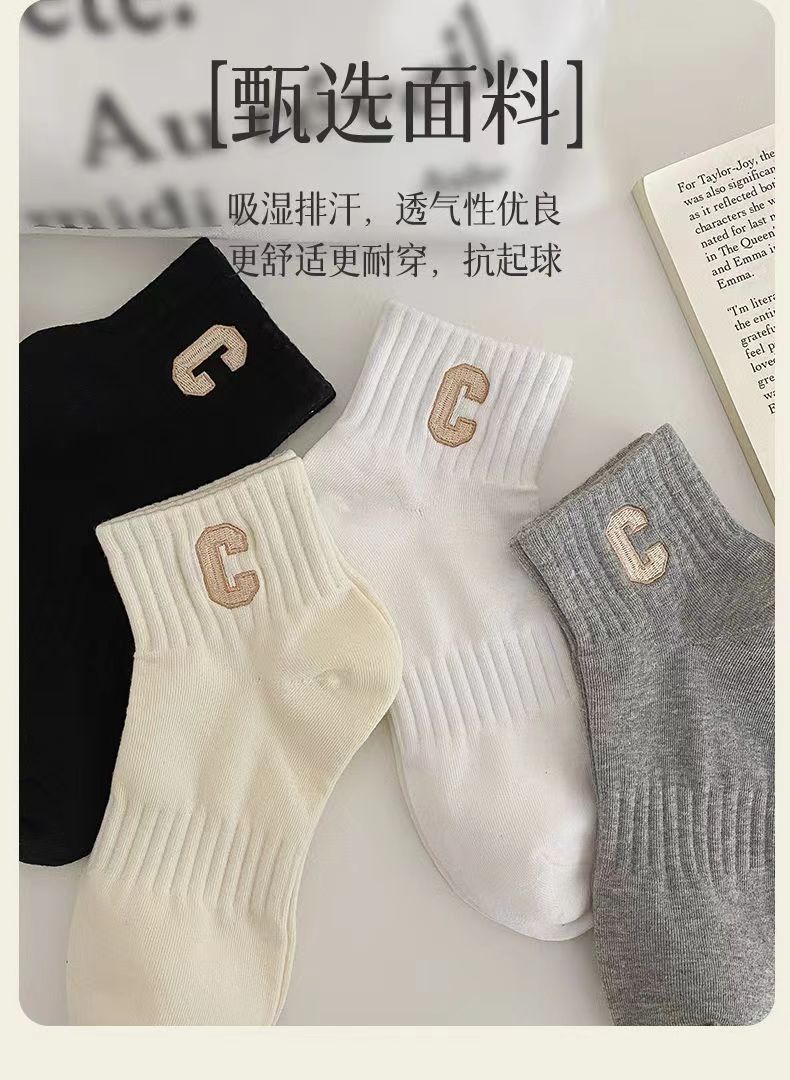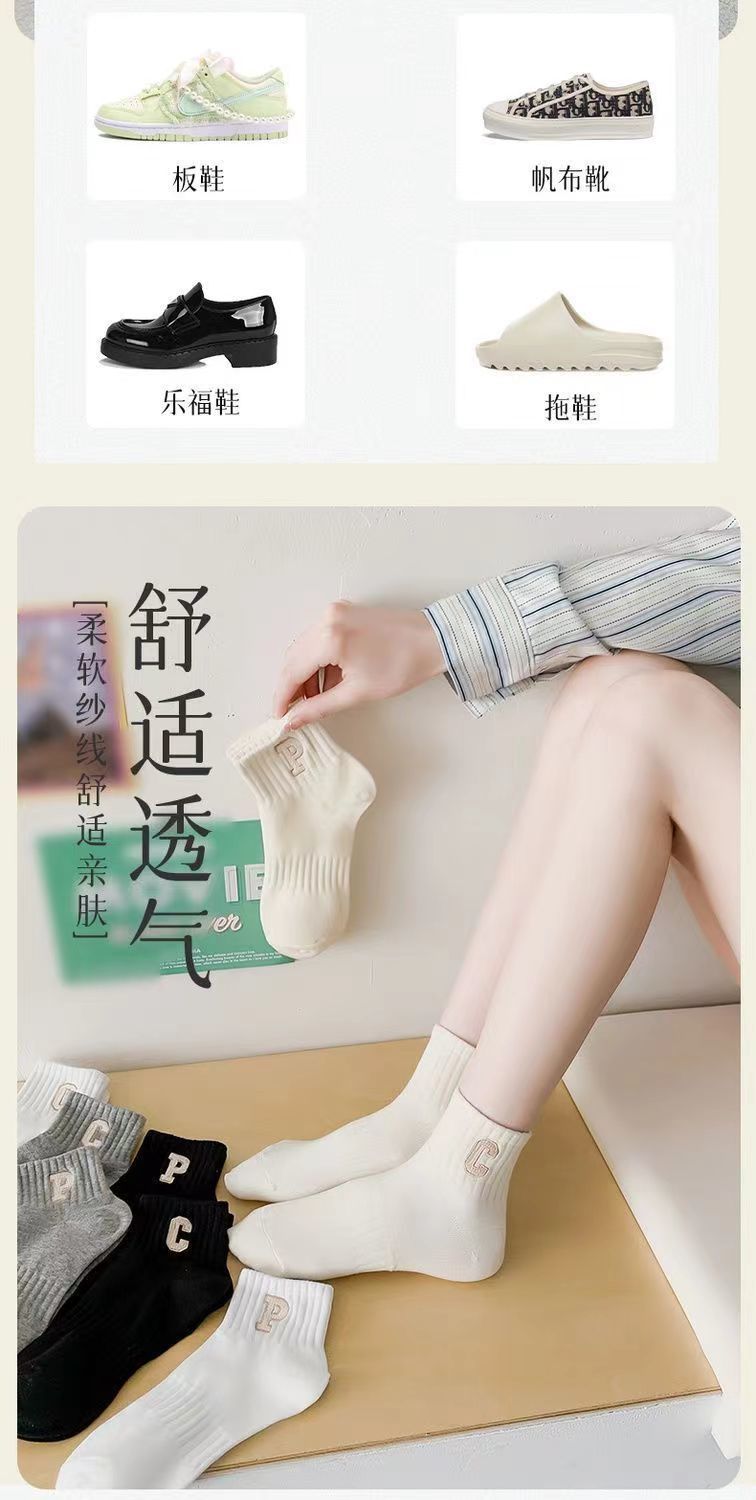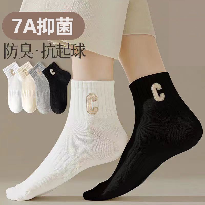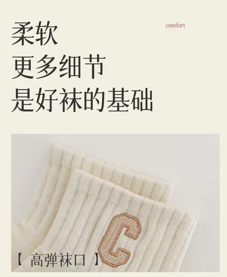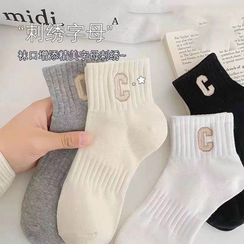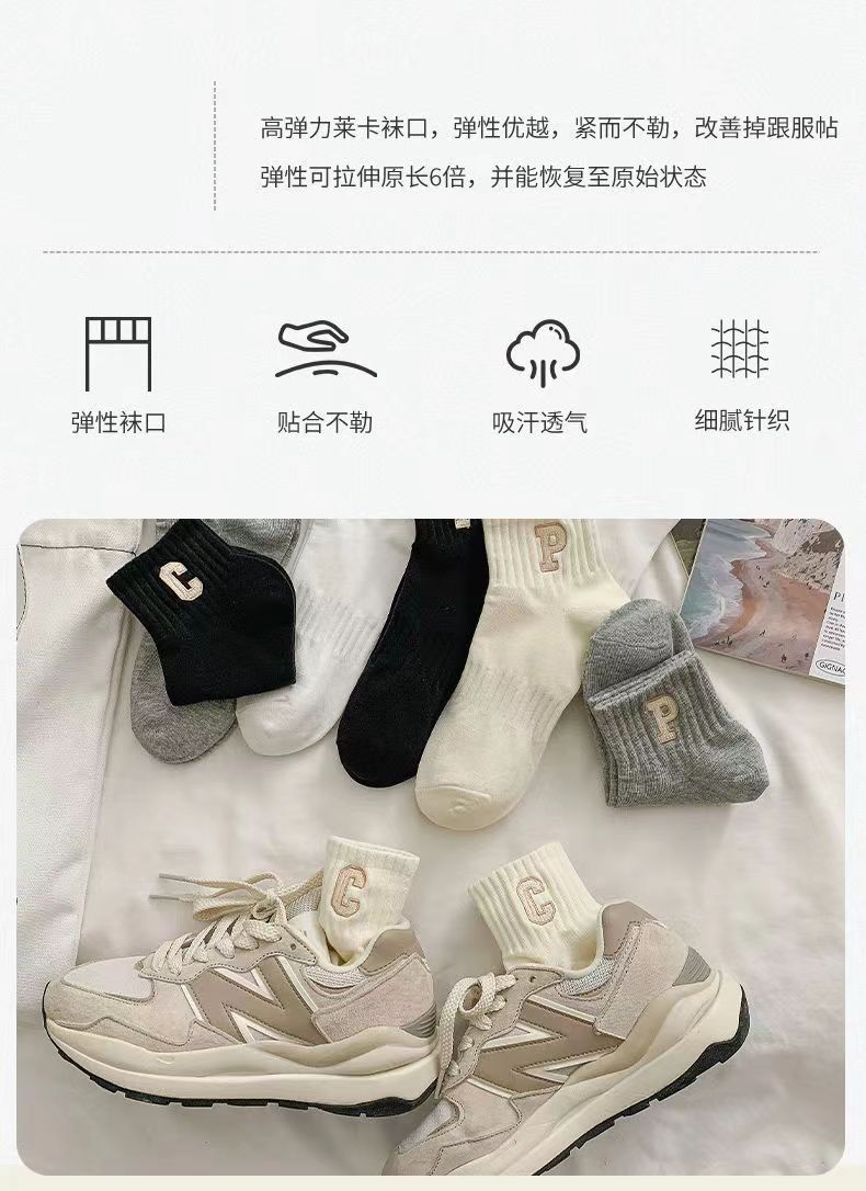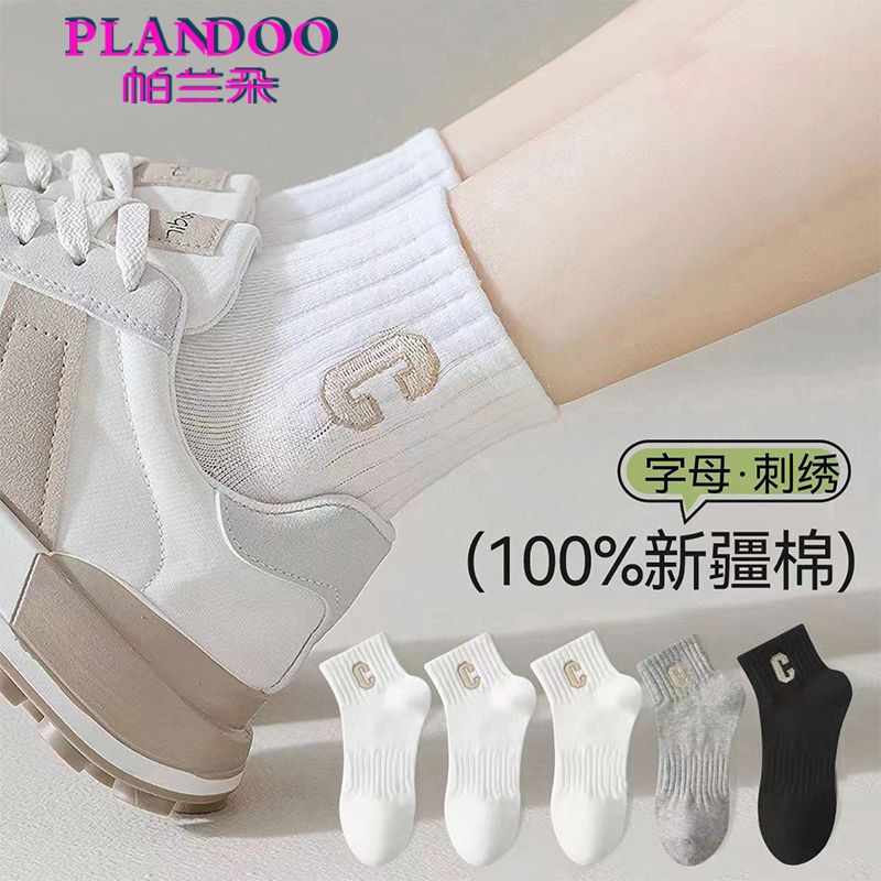 帕兰朵袜子女中筒秋冬抗菌纯棉防臭吸汗无骨短袜i刺绣通用字母袜