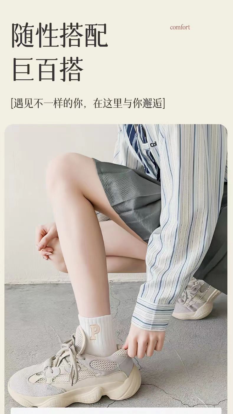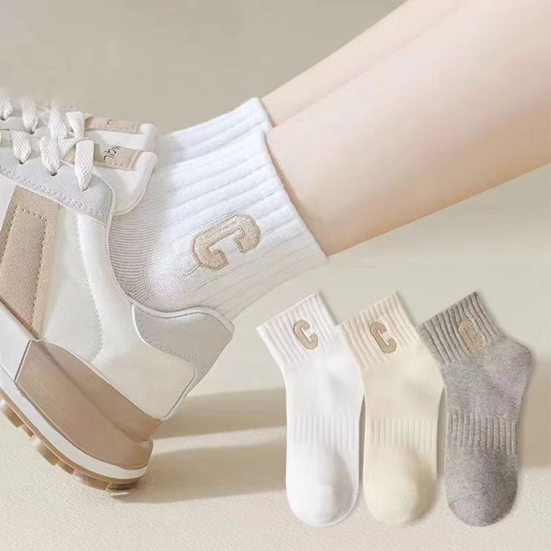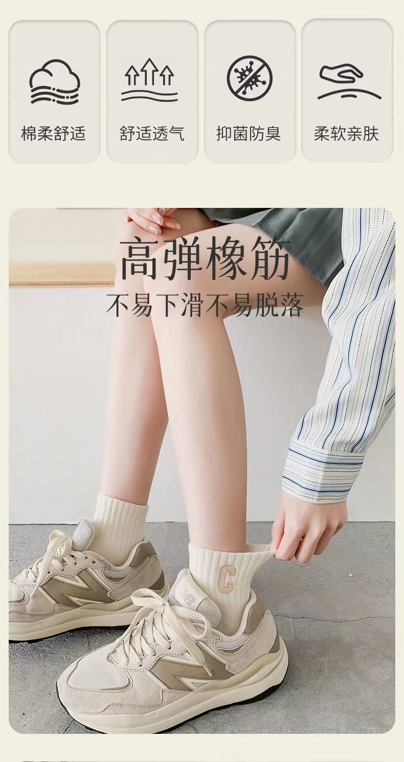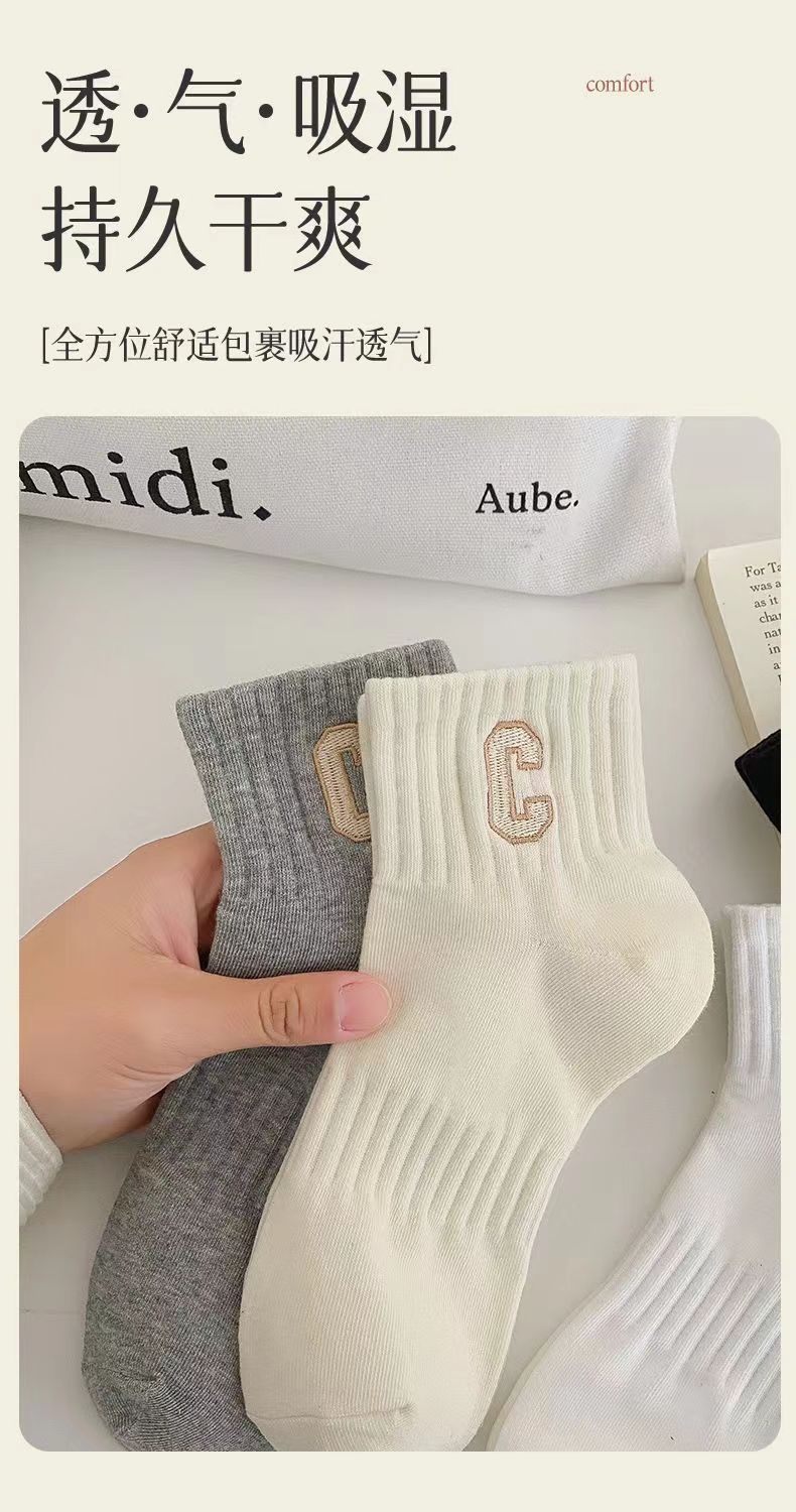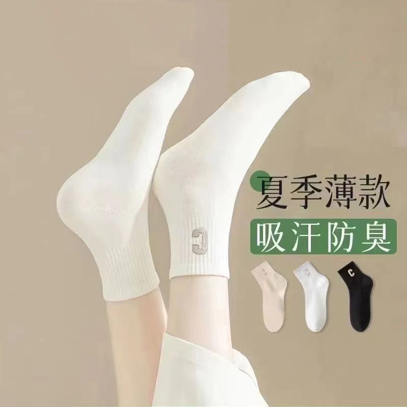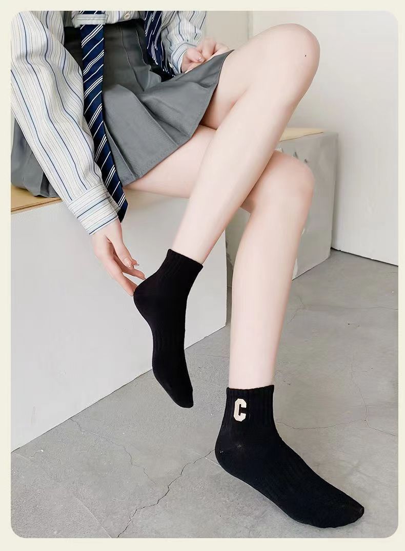 帕兰朵袜子女中筒秋冬抗菌纯棉防臭吸汗无骨短袜i刺绣通用字母袜