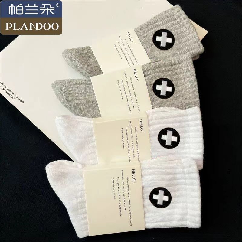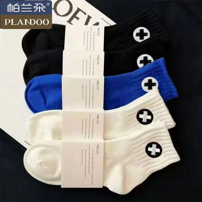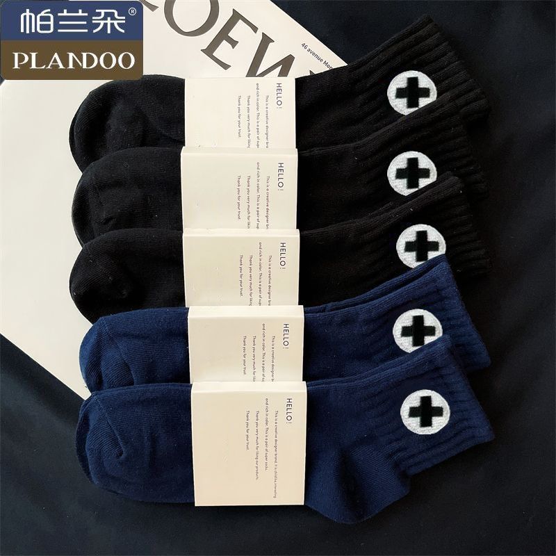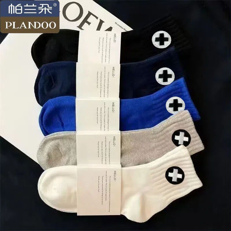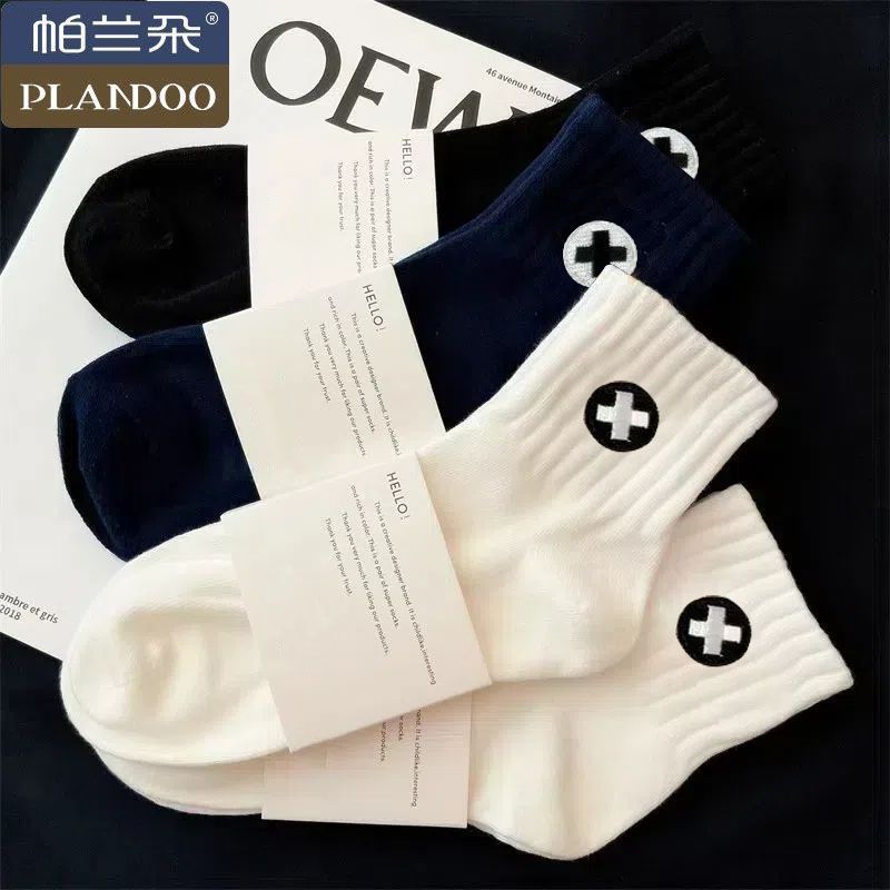 【100%新疆棉】袜子男纯棉中筒袜秋冬季纯色运动袜吸汗防臭ins潮