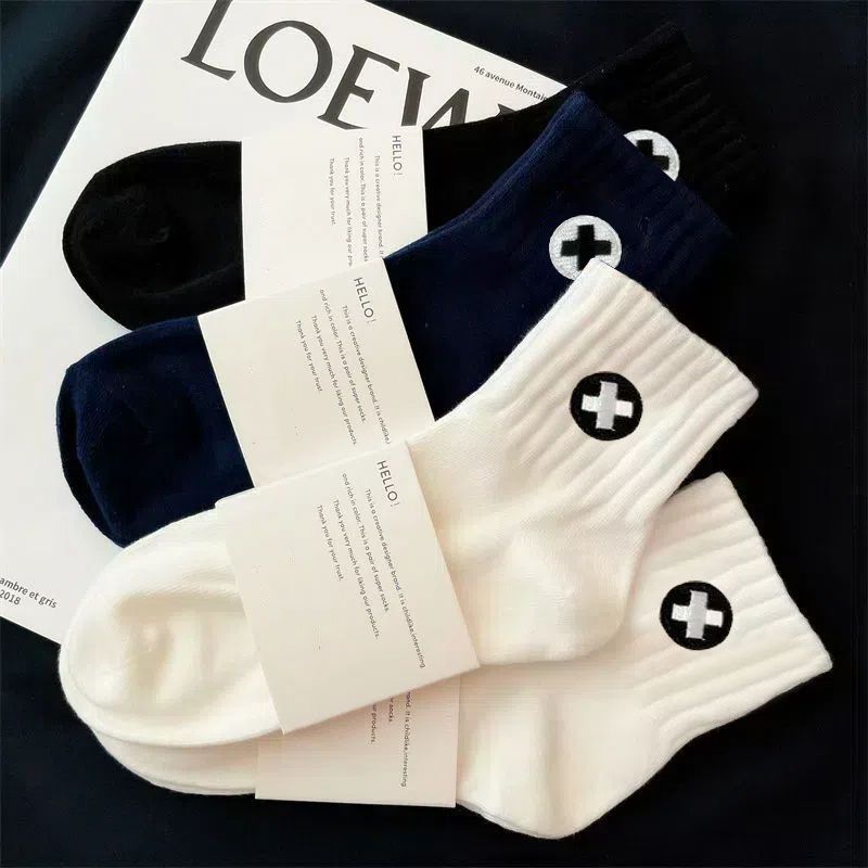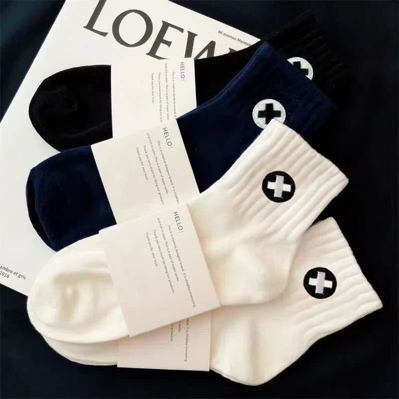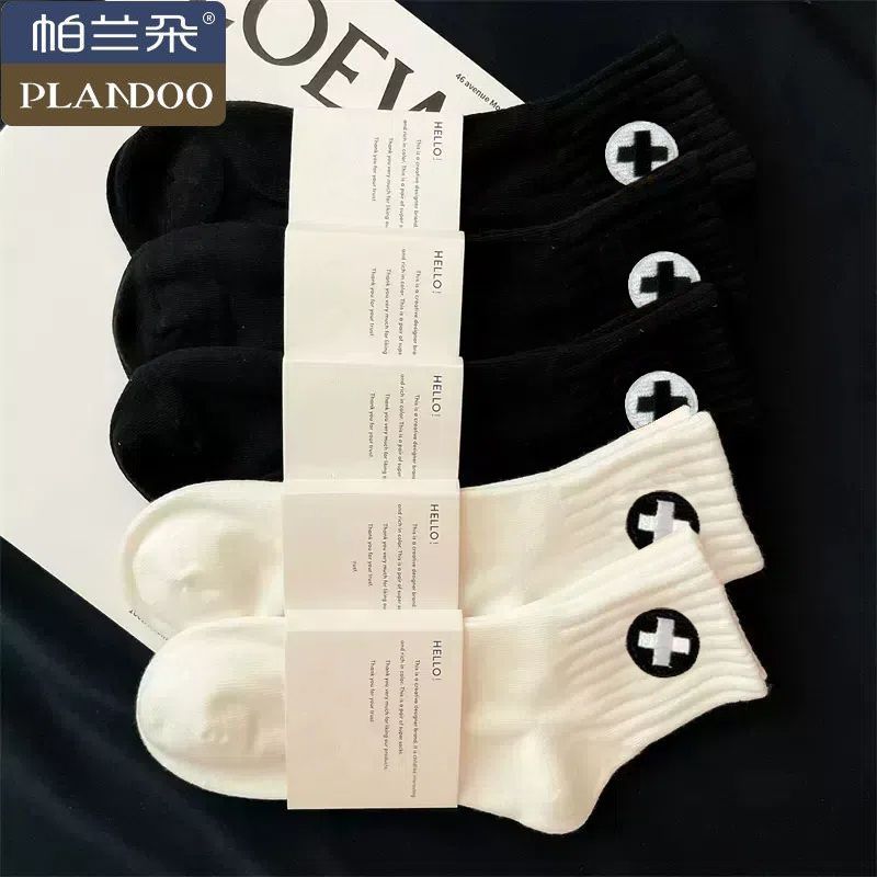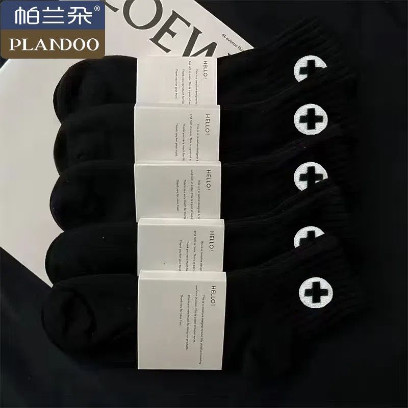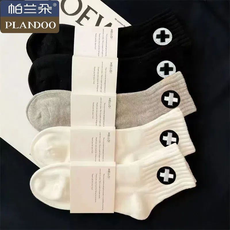【100%新疆棉】袜子男纯棉中筒袜秋冬季纯色运动袜吸汗防臭ins潮