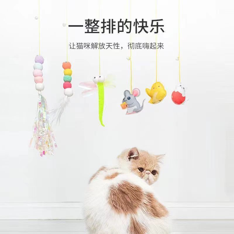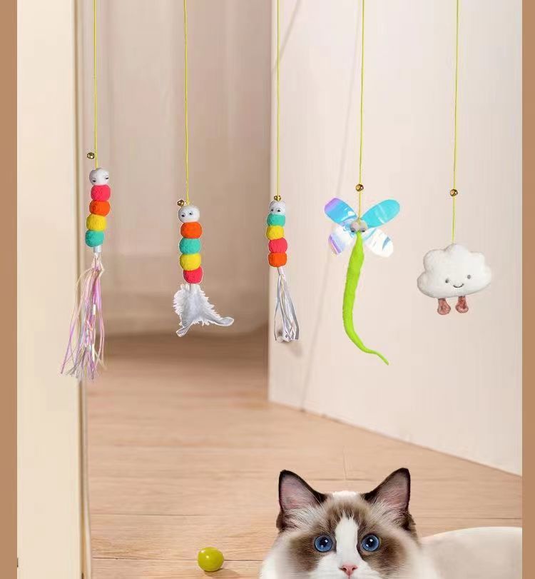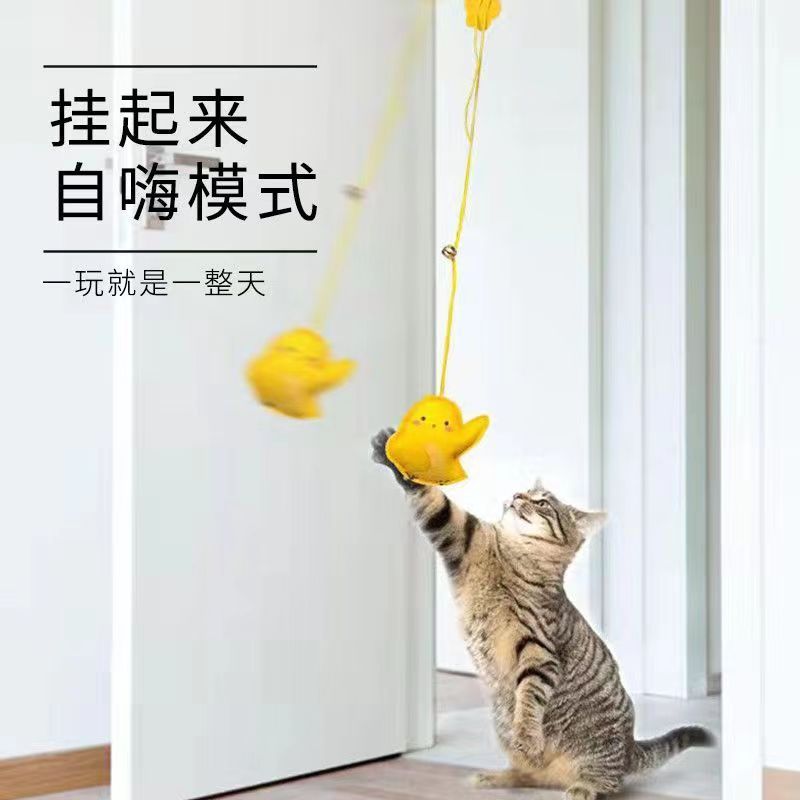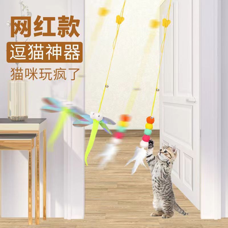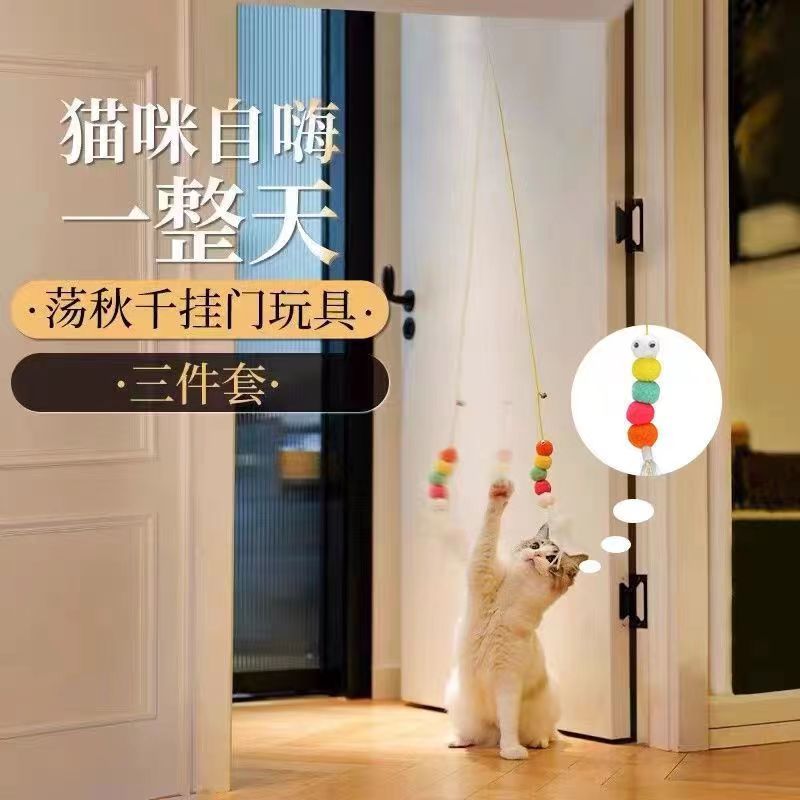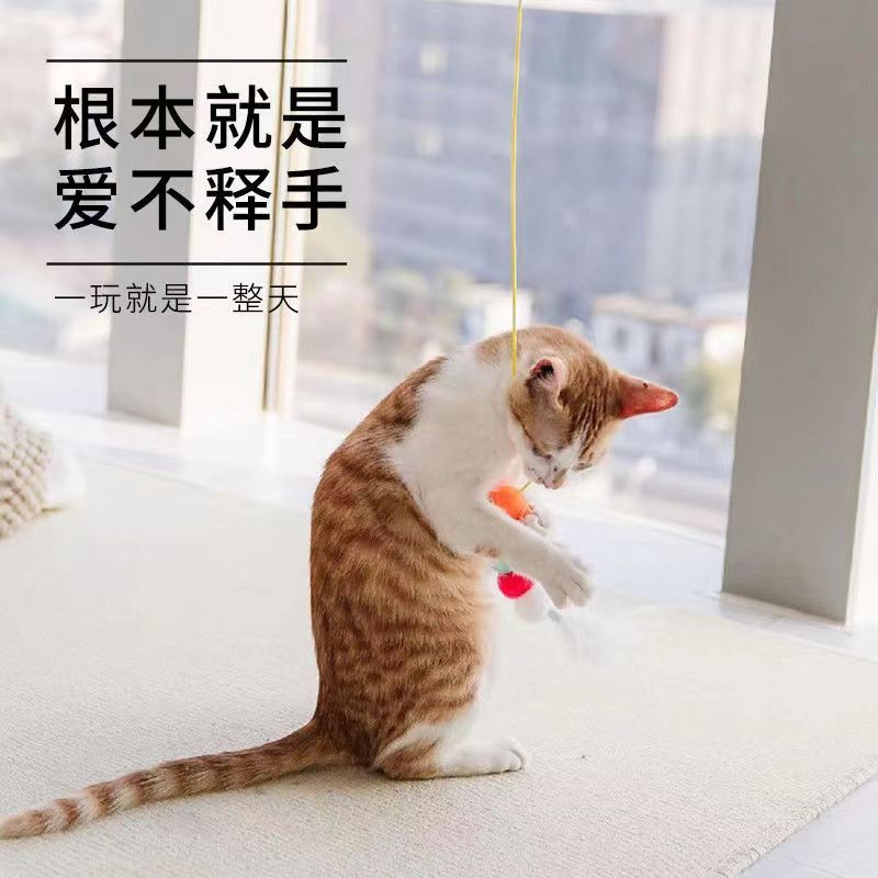 悬挂式逗猫玩具猫咪荡秋千挂门弹力逗猫棒羽毛鼠自嗨解闷逗猫神器