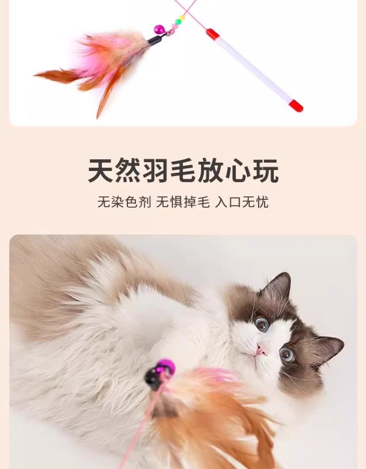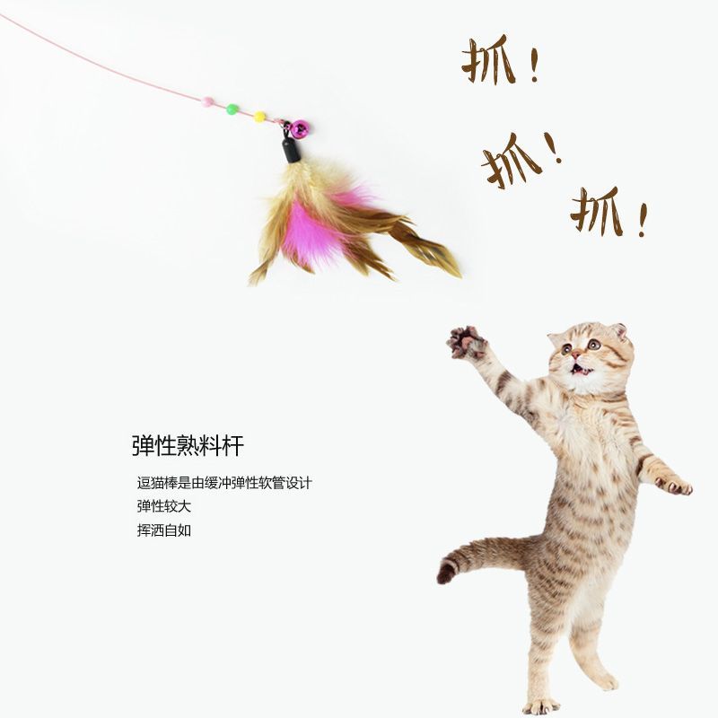 逗猫棒耐咬带铃铛羽毛自嗨宠物猫咪玩具钢丝超长杆喵咪用品成幼猫