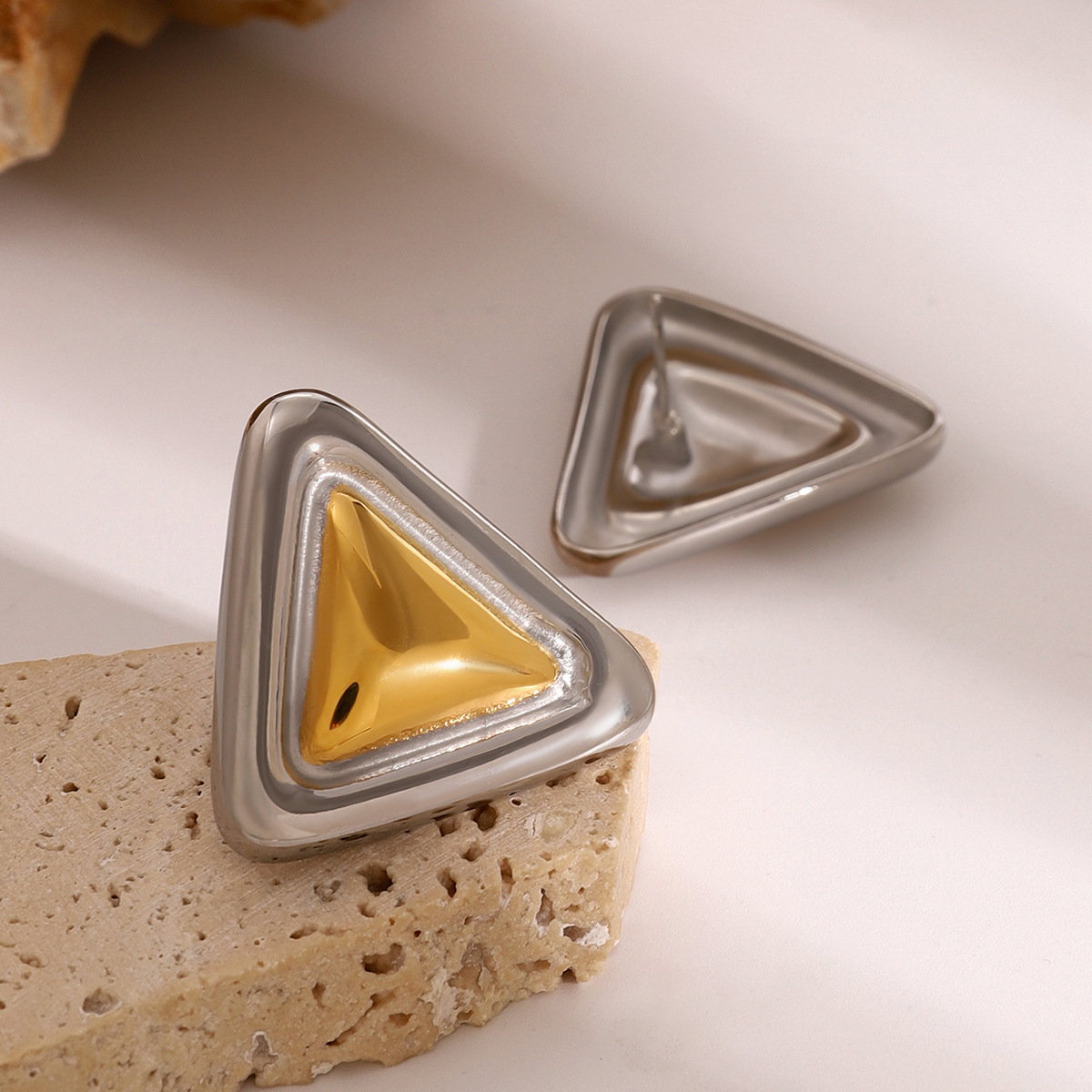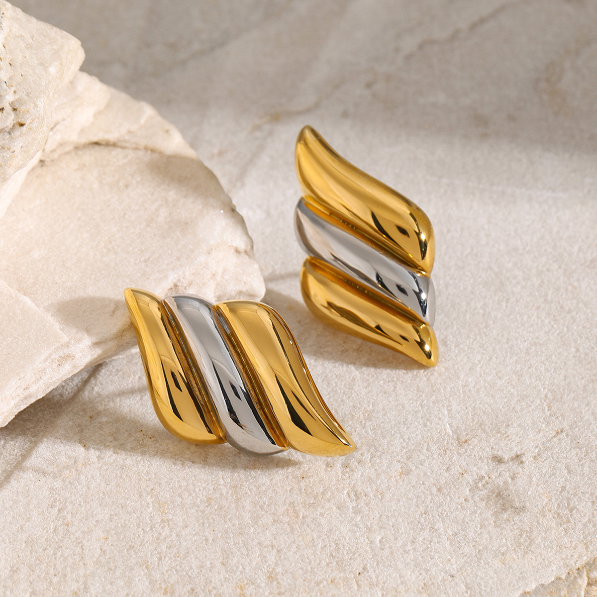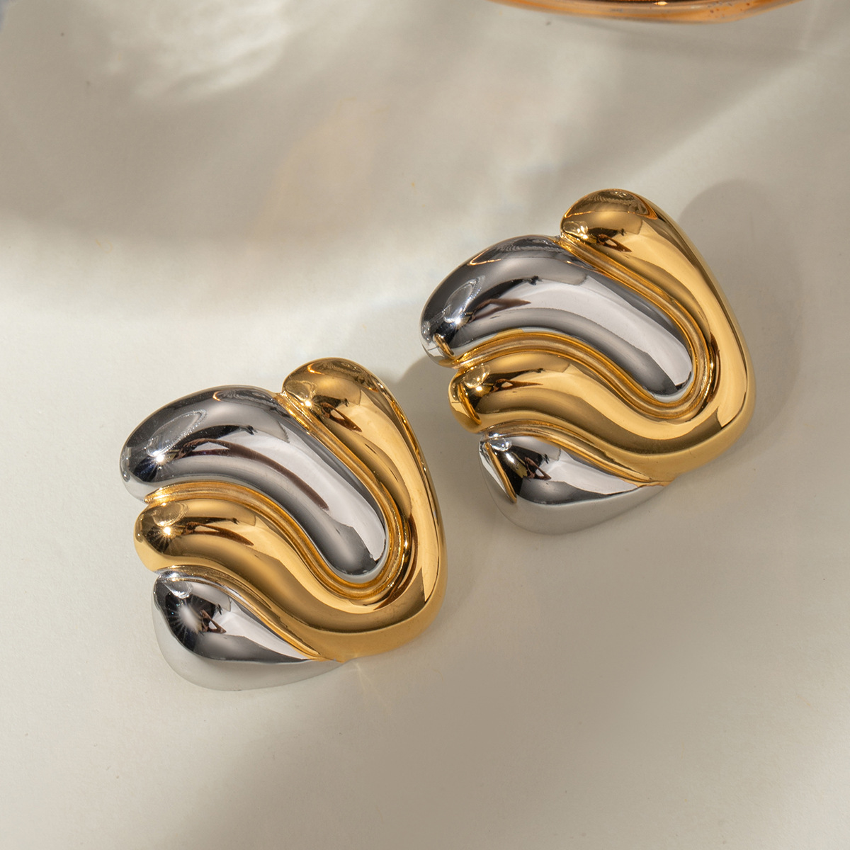 万兴跨境饰品拼色不锈钢耳环欧美饰品双色金银亮色耳钉几何形耳饰