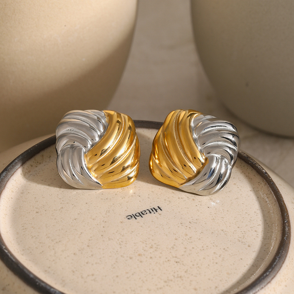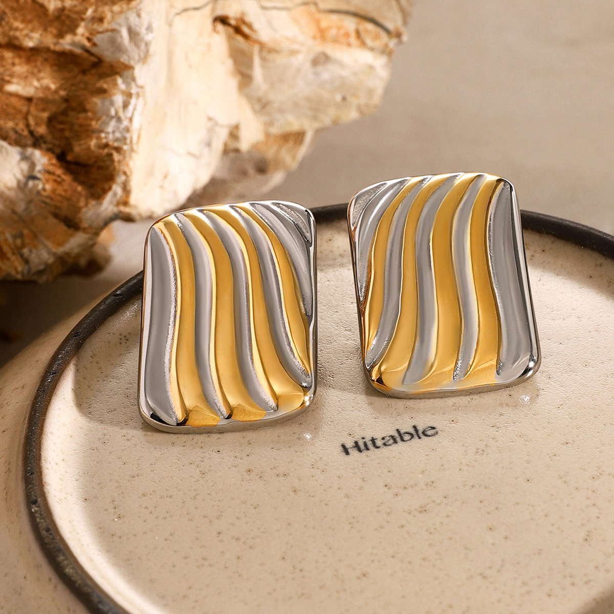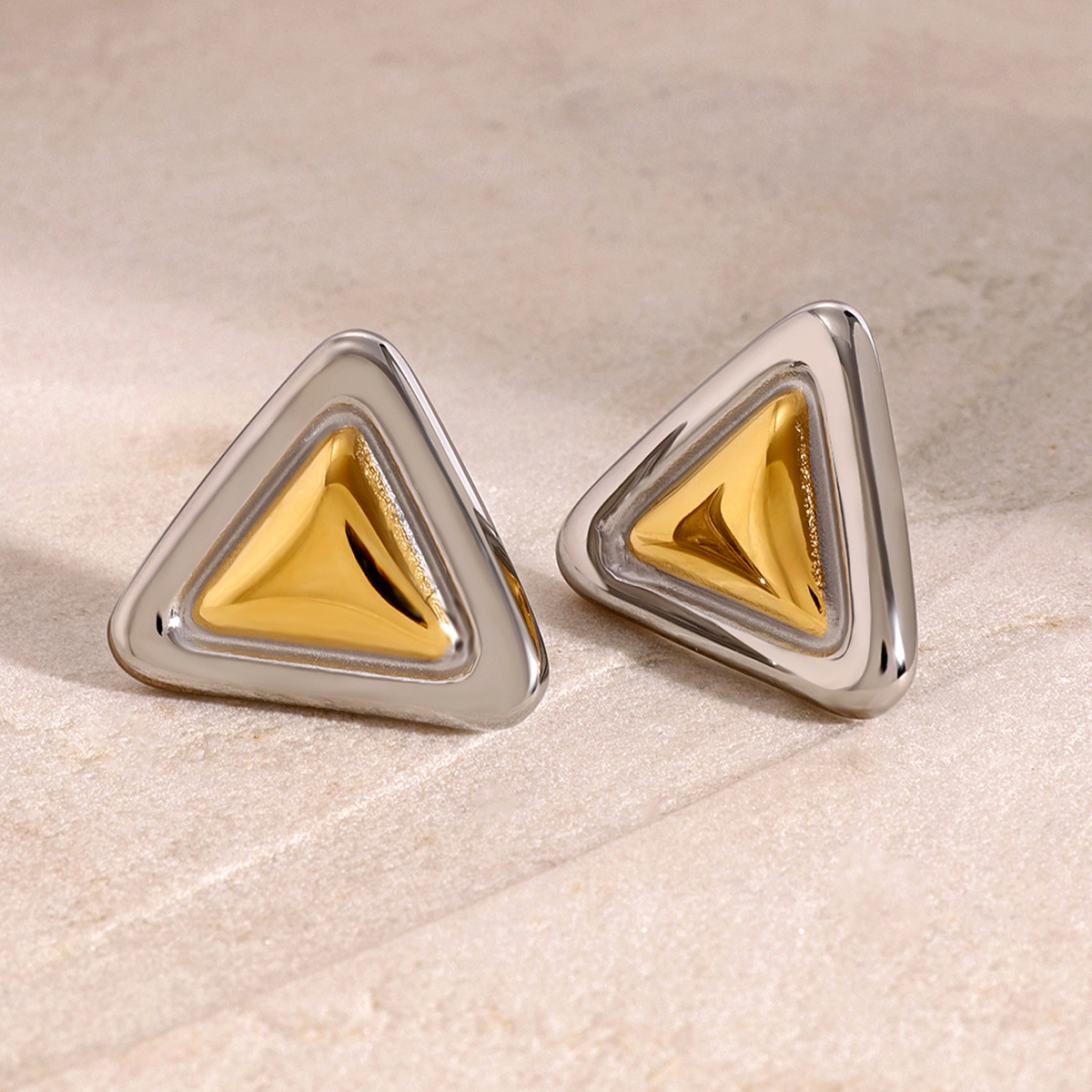 万兴跨境饰品拼色不锈钢耳环欧美饰品双色金银亮色耳钉几何形耳饰