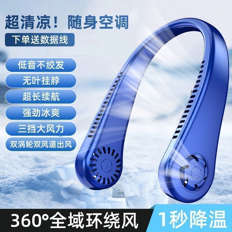 usb制冷挂脖小风扇脖挂式电风扇懒人随身携带挂脖子风扇无叶风扇