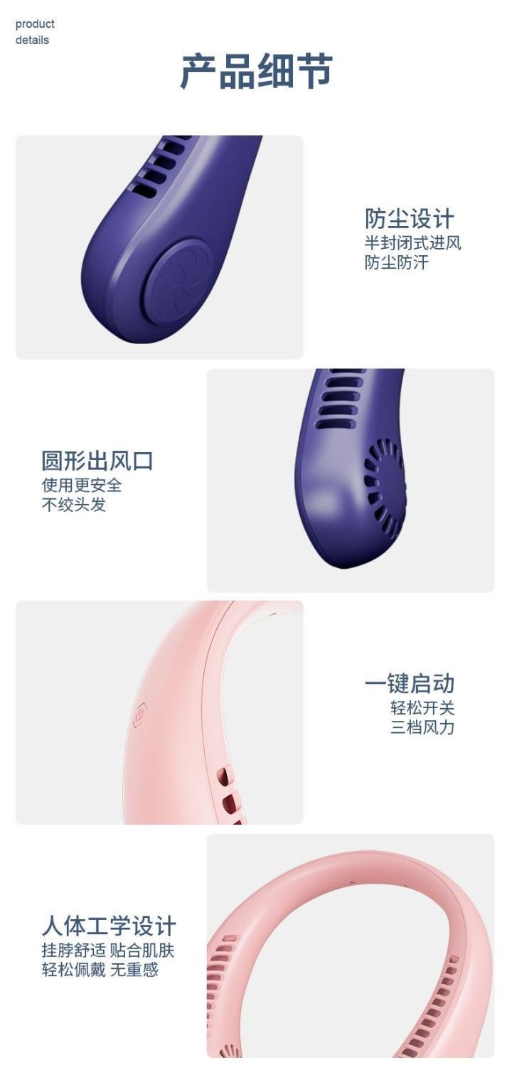 usb懒人挂脖风扇挂脖式风扇随身挂脖子风扇无叶风扇可充电小风扇