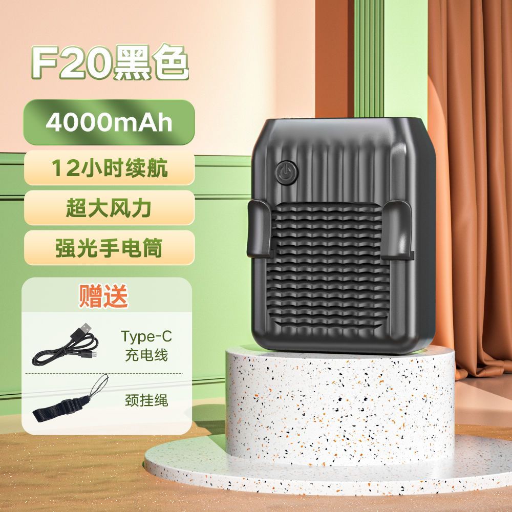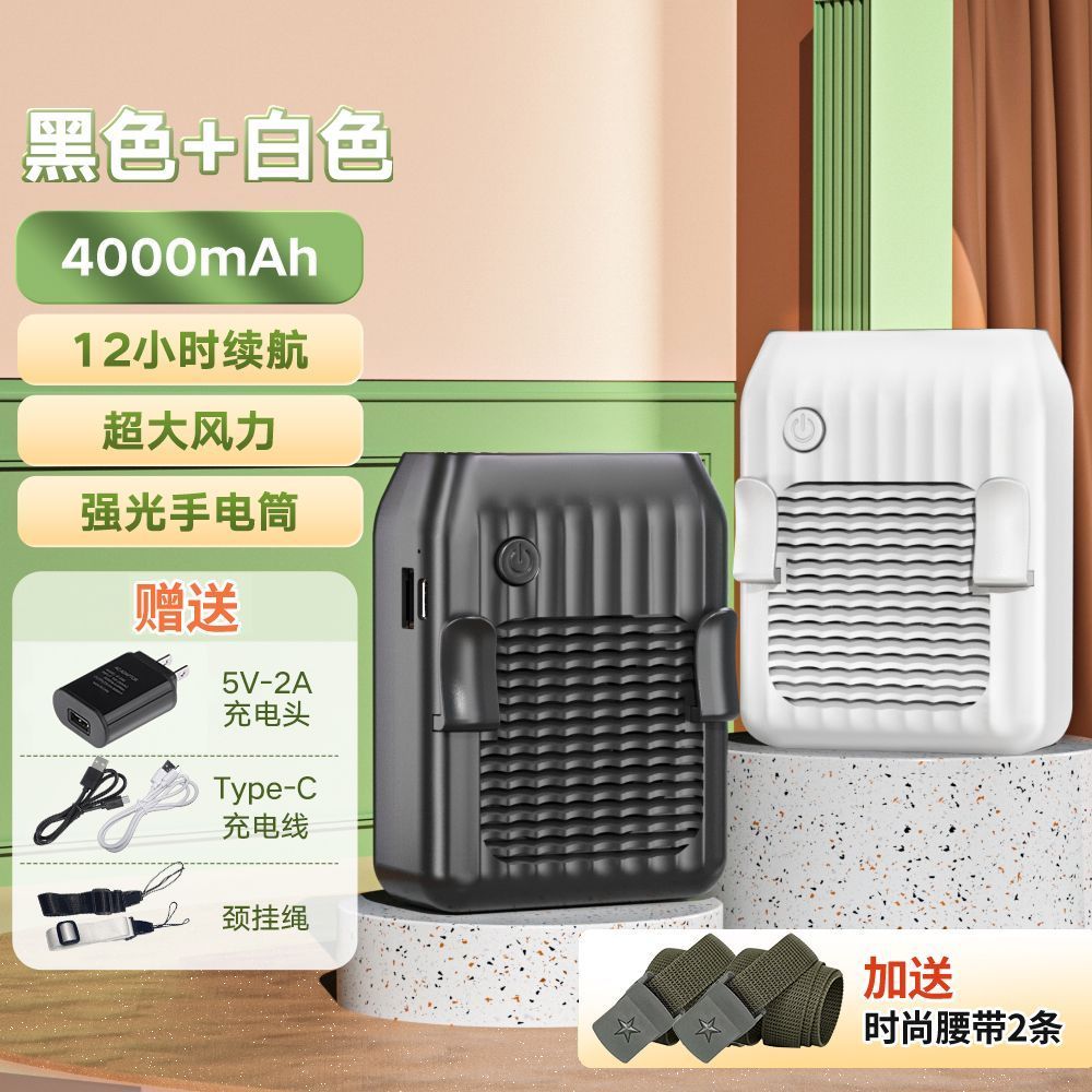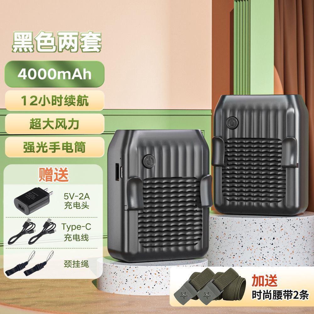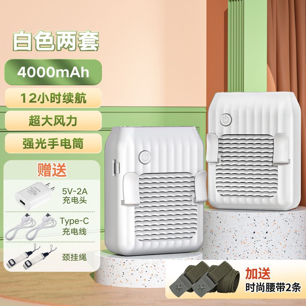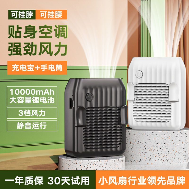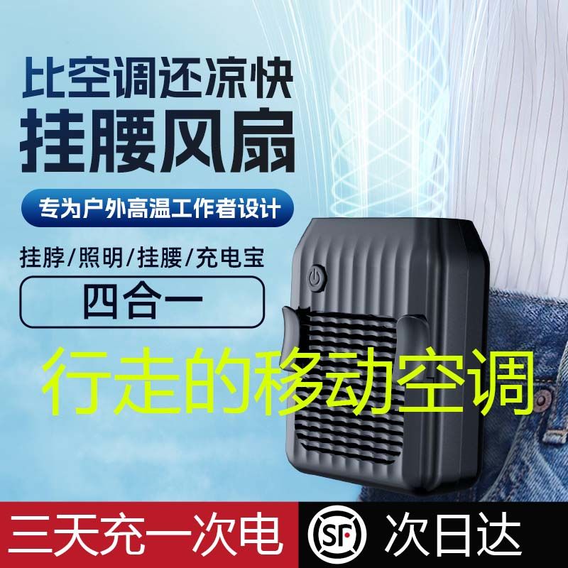 挂腰风扇工地户外便携式可充电可挂脖多功能迷你小风扇带充电宝
