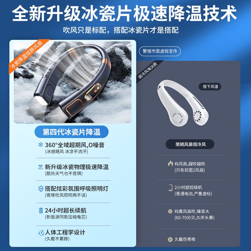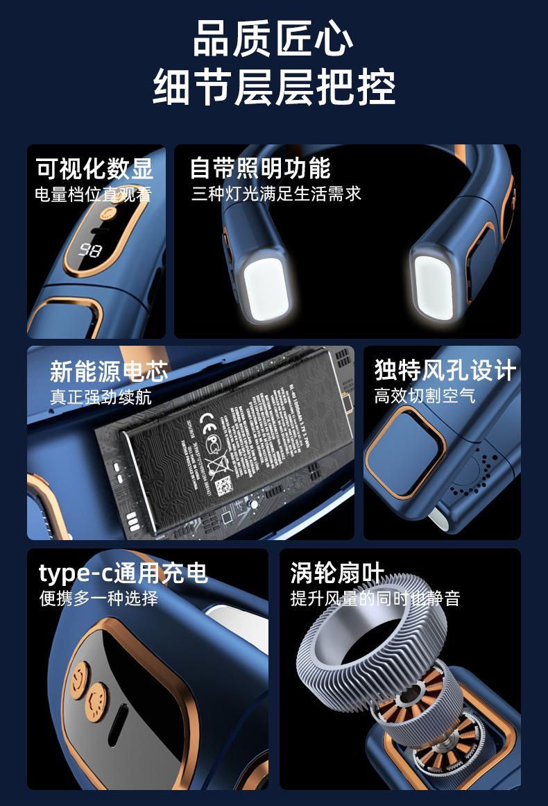 挂脖风扇懒人便携式学生迷你小型随身USB充电静音户外无叶电风扇