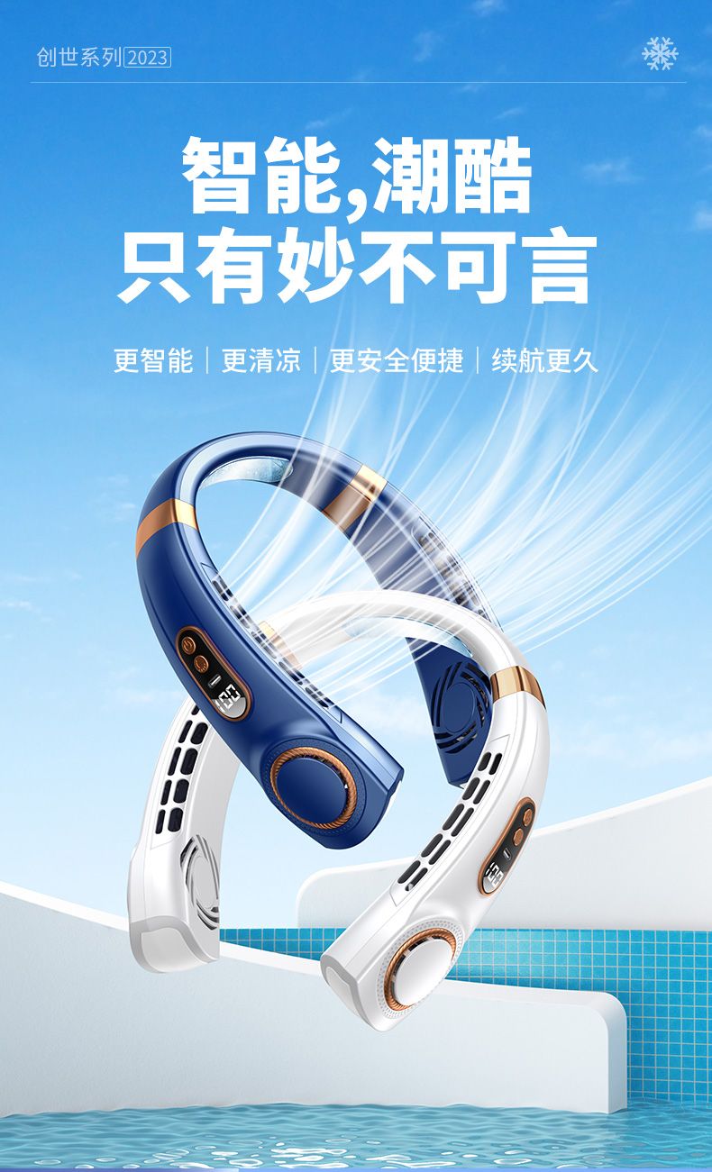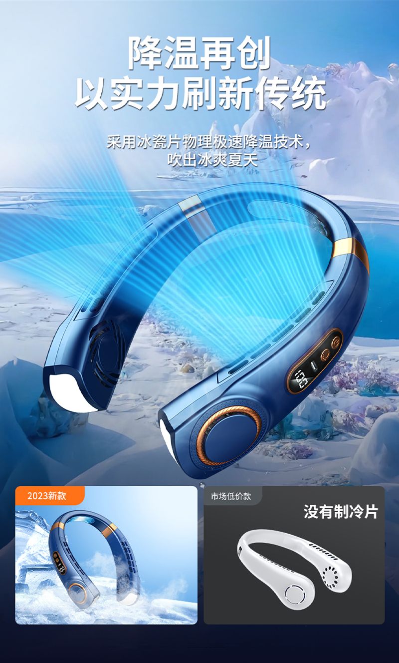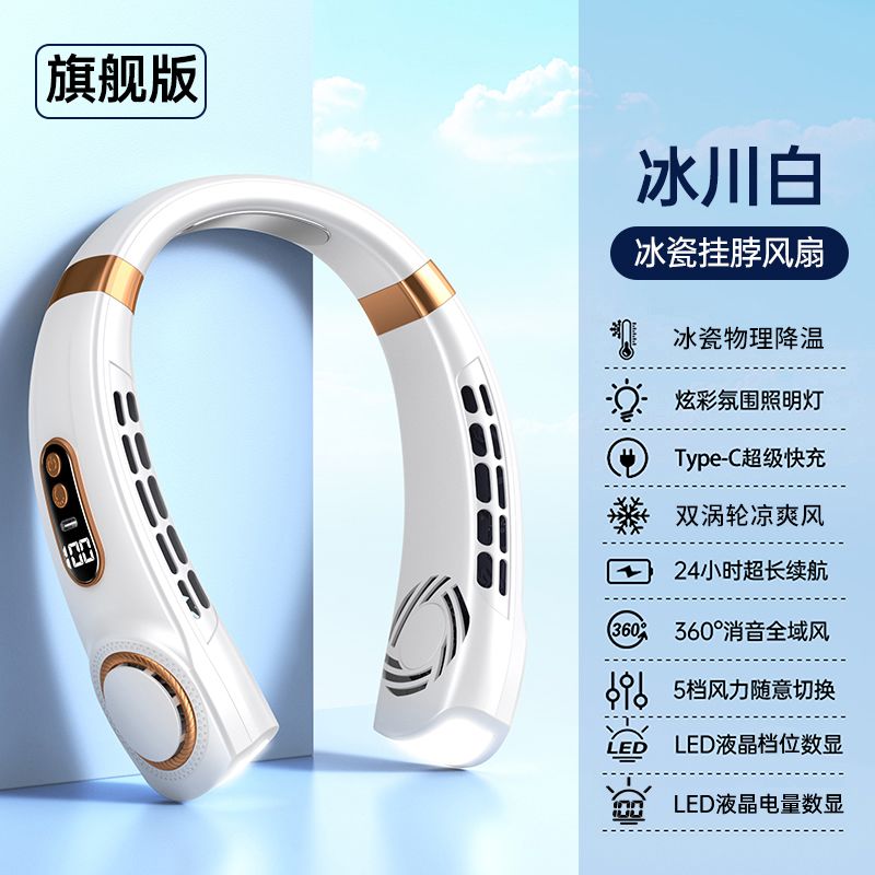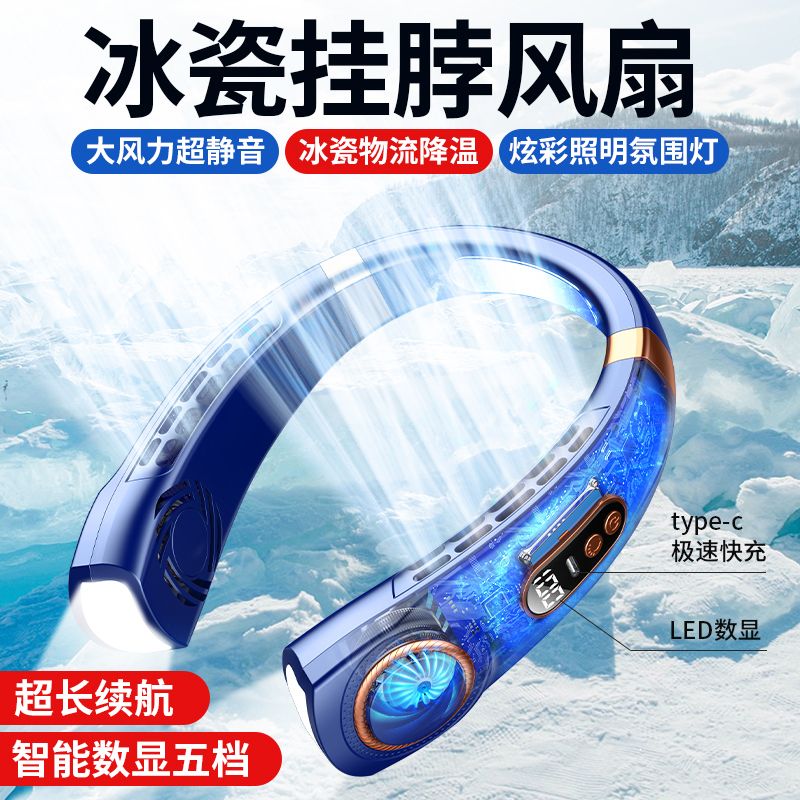 无叶挂脖风扇懒人便携式小型学生户外冰瓷制冷静音usb充电小风扇