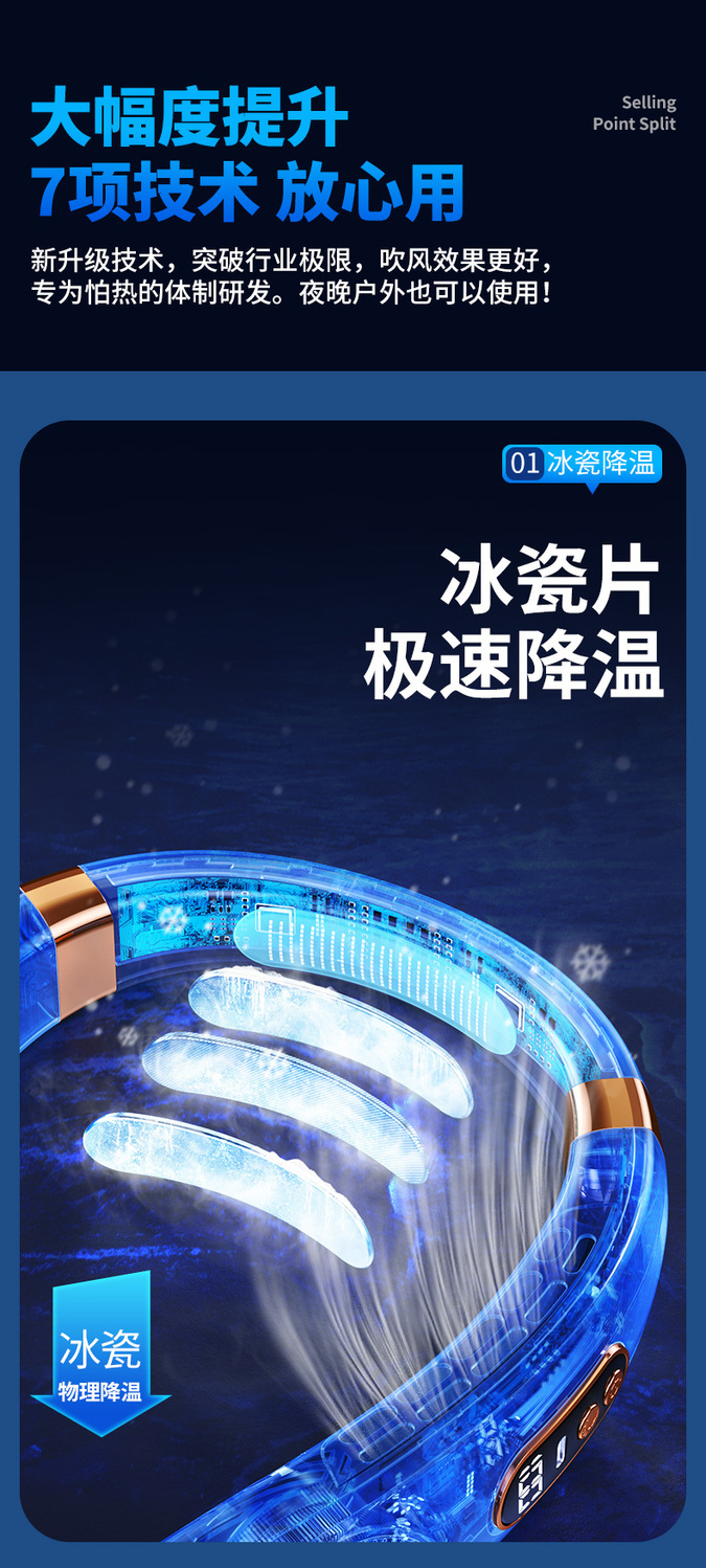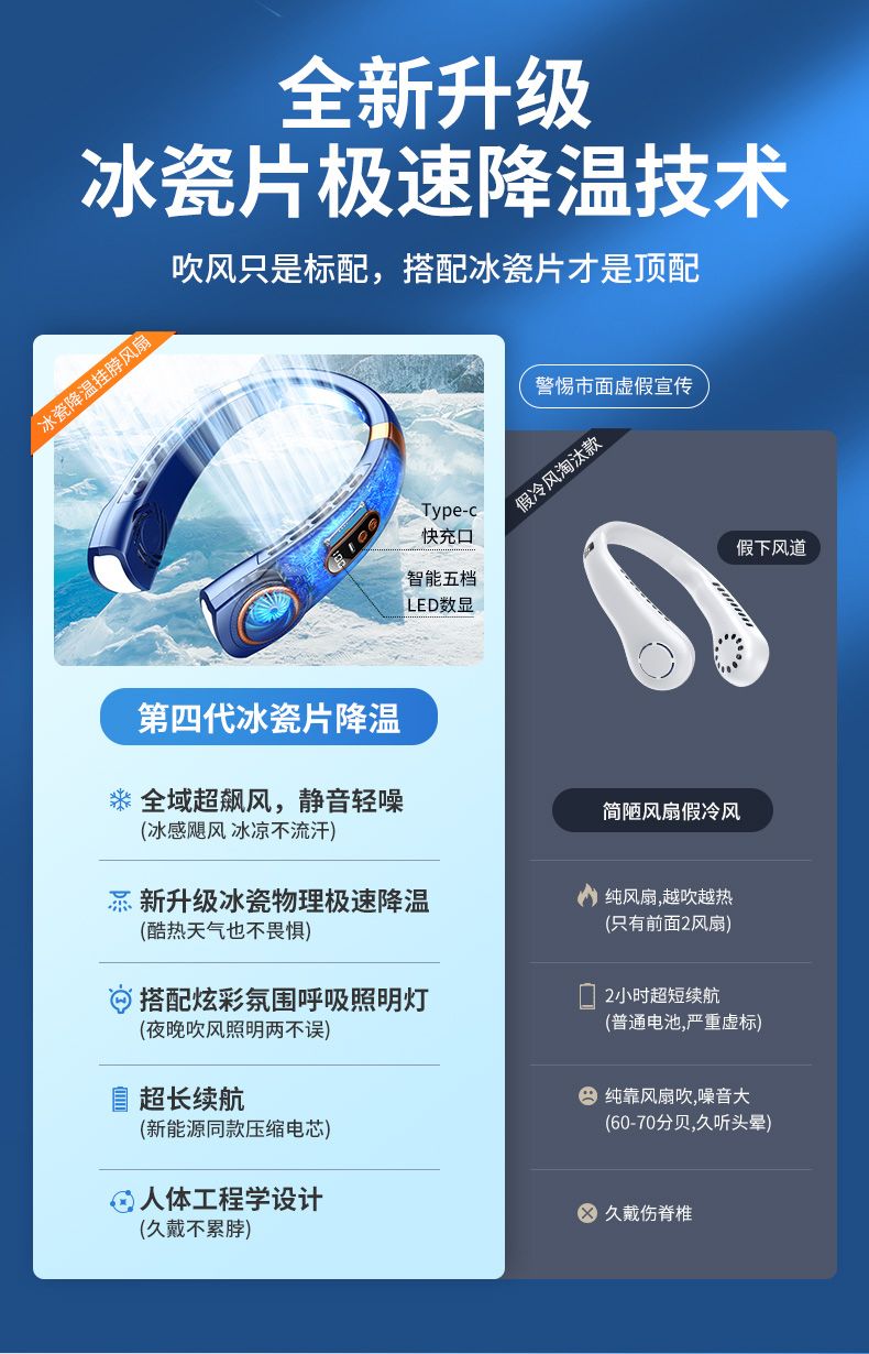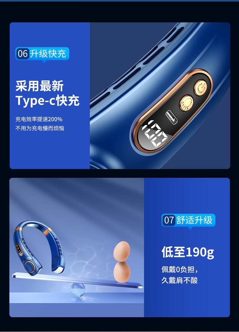 无叶挂脖风扇懒人便携式小型学生户外冰瓷制冷静音usb充电小风扇
