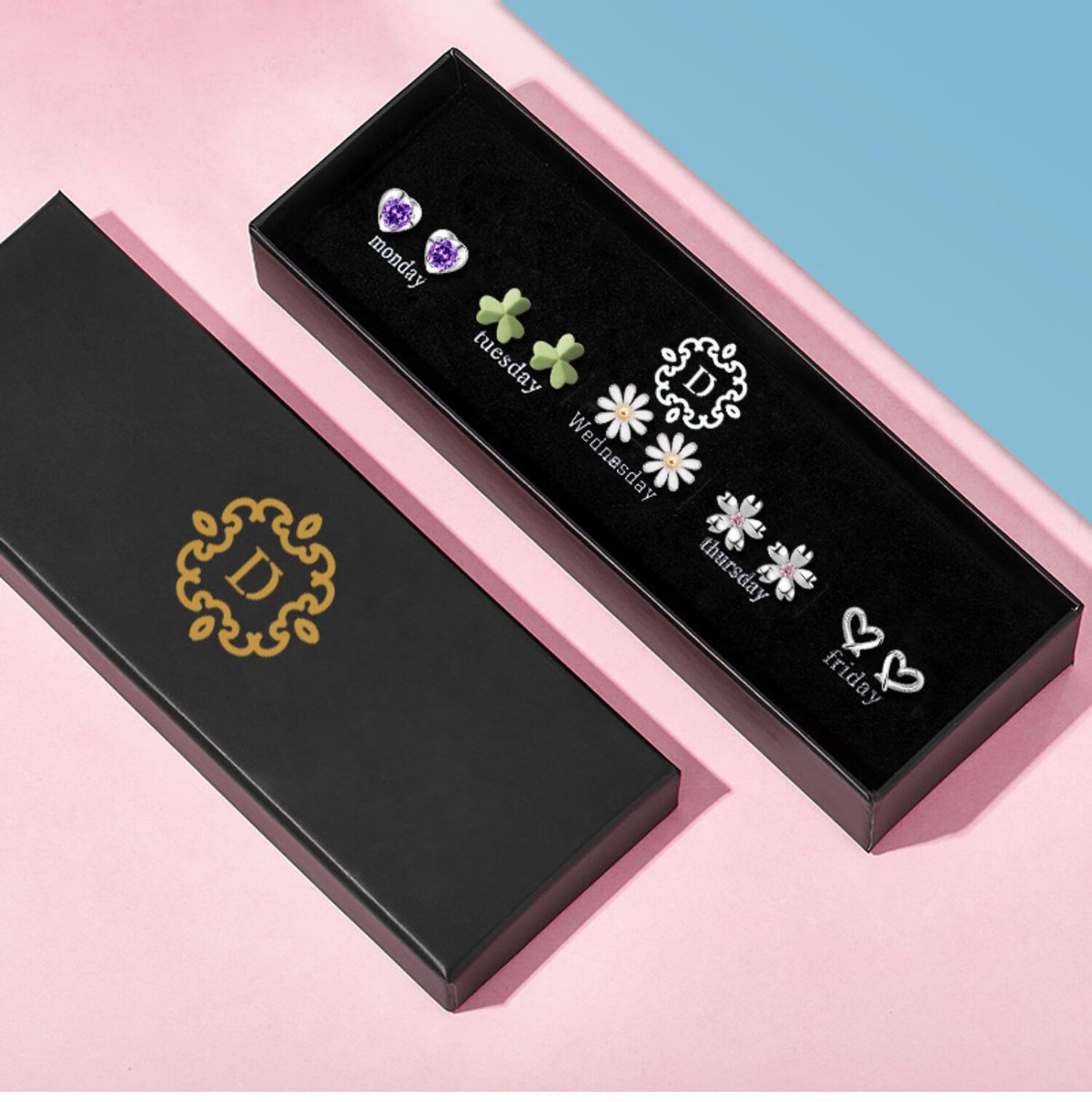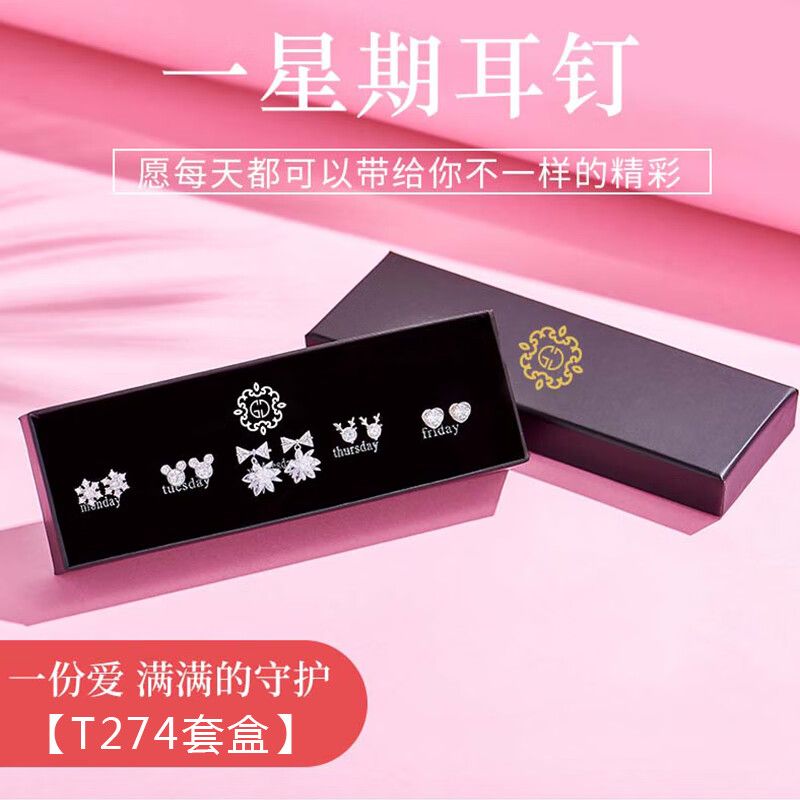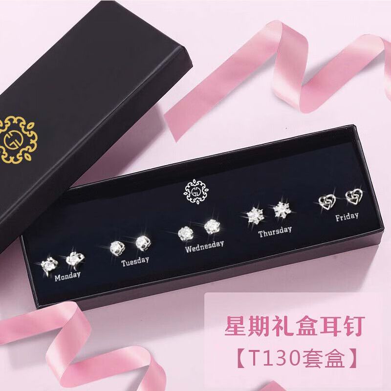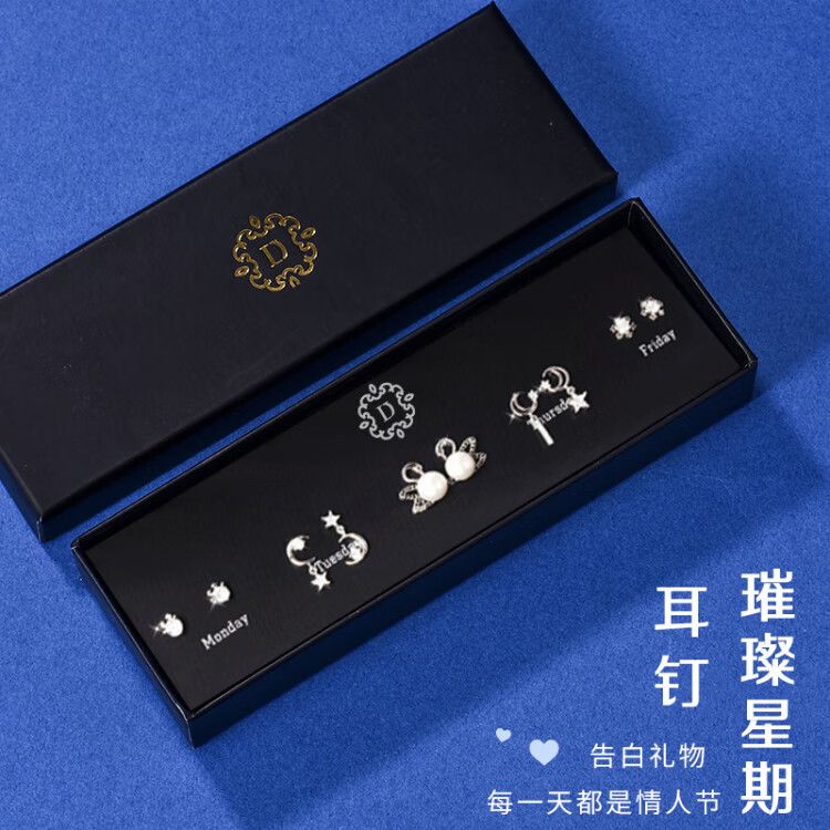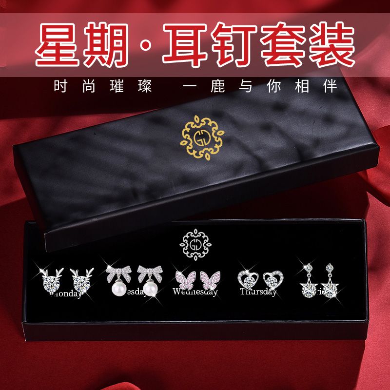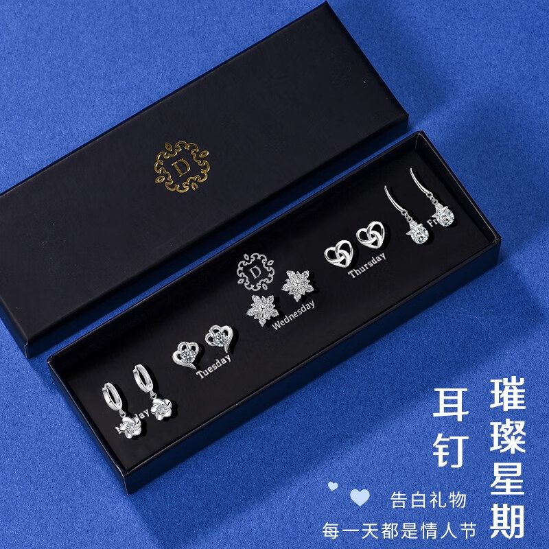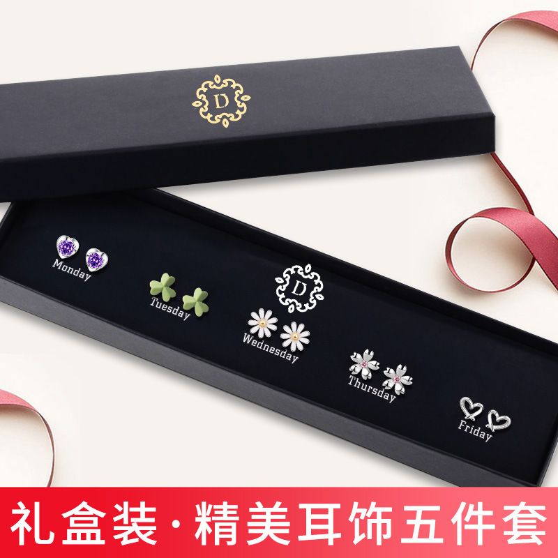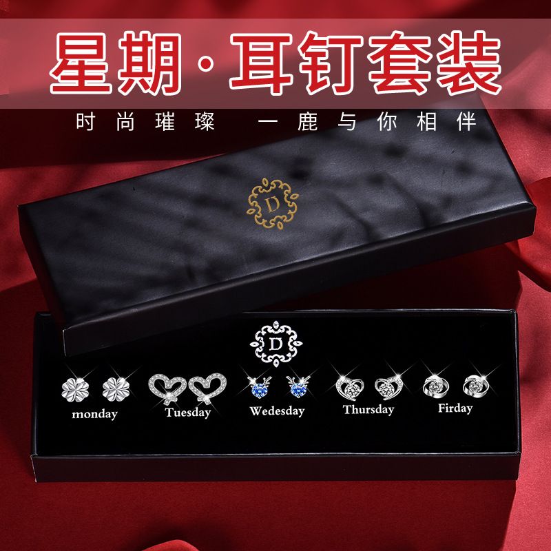 情人节生日礼物送老婆一周气质纯银针耳钉礼盒套装小众高级感