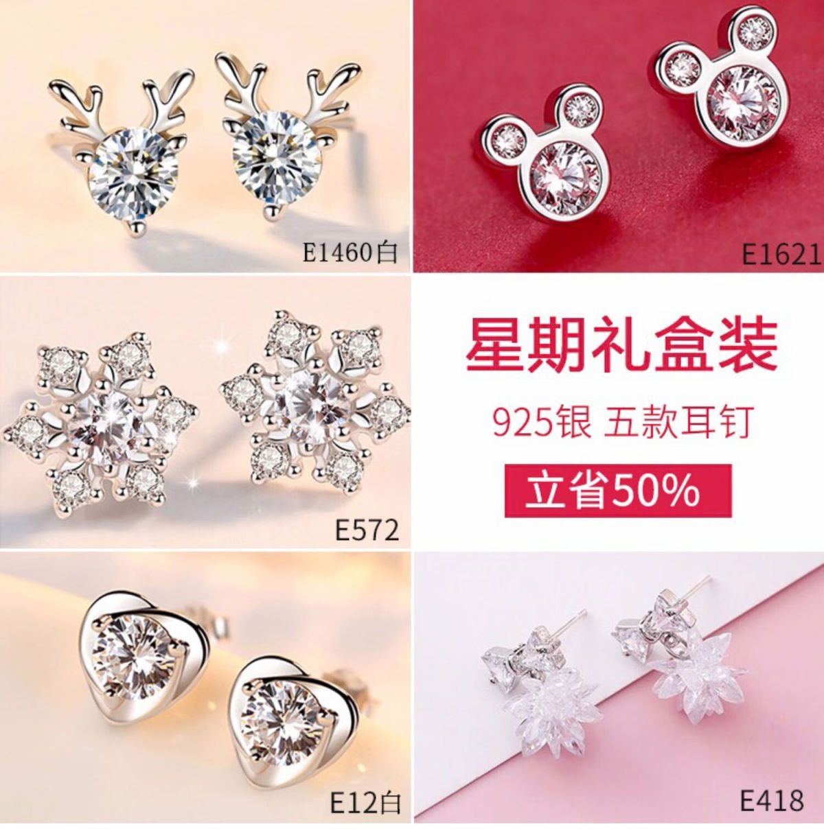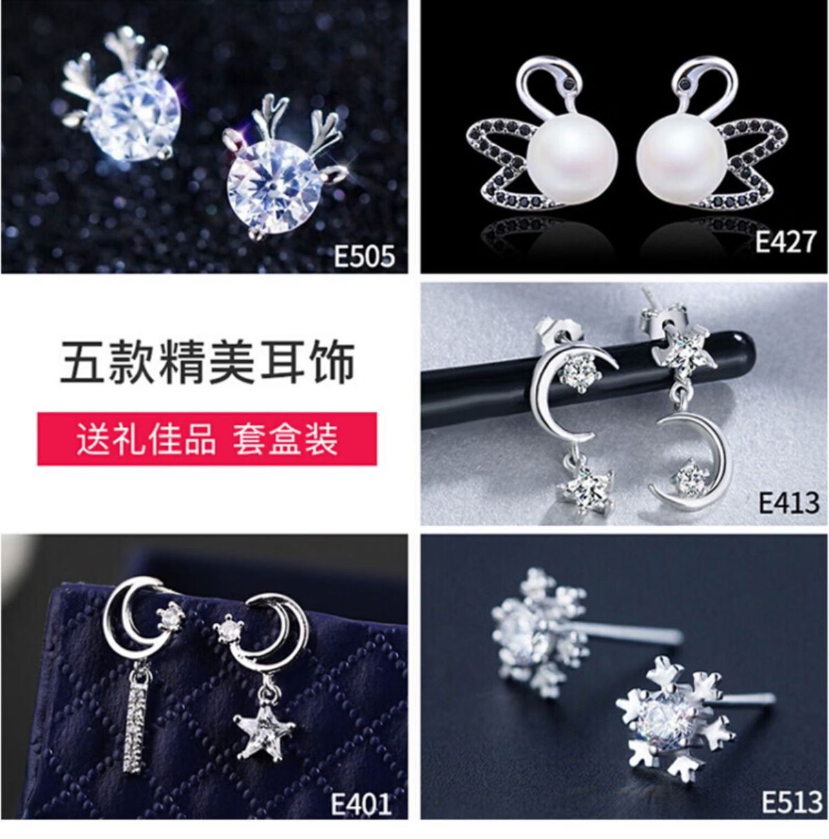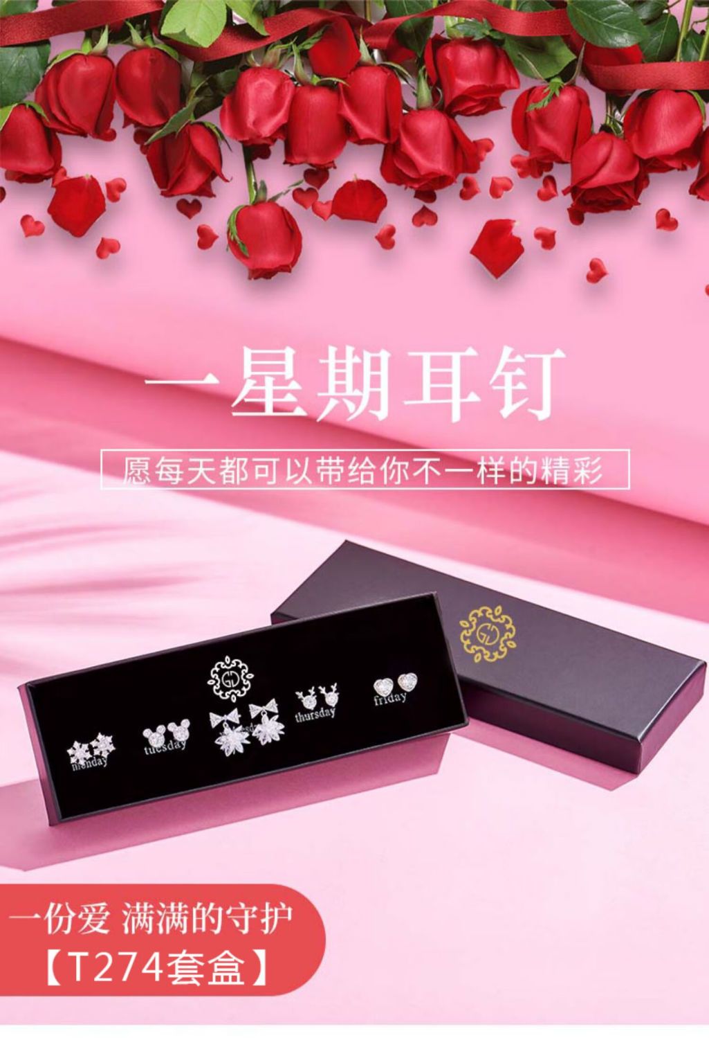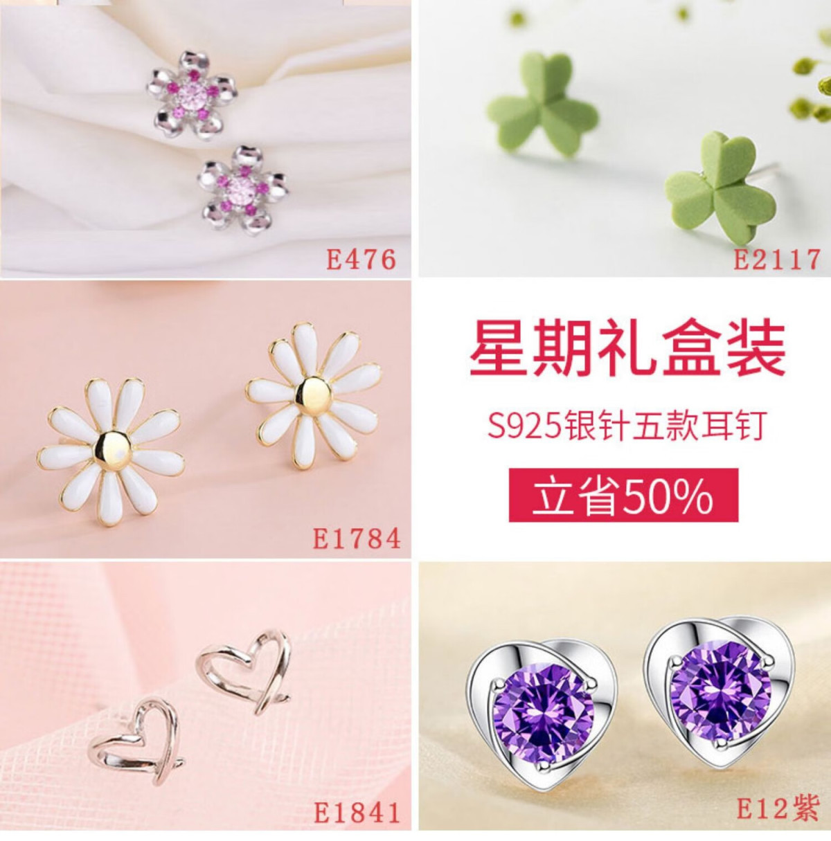 情人节生日礼物送老婆一周气质纯银针耳钉礼盒套装小众高级感