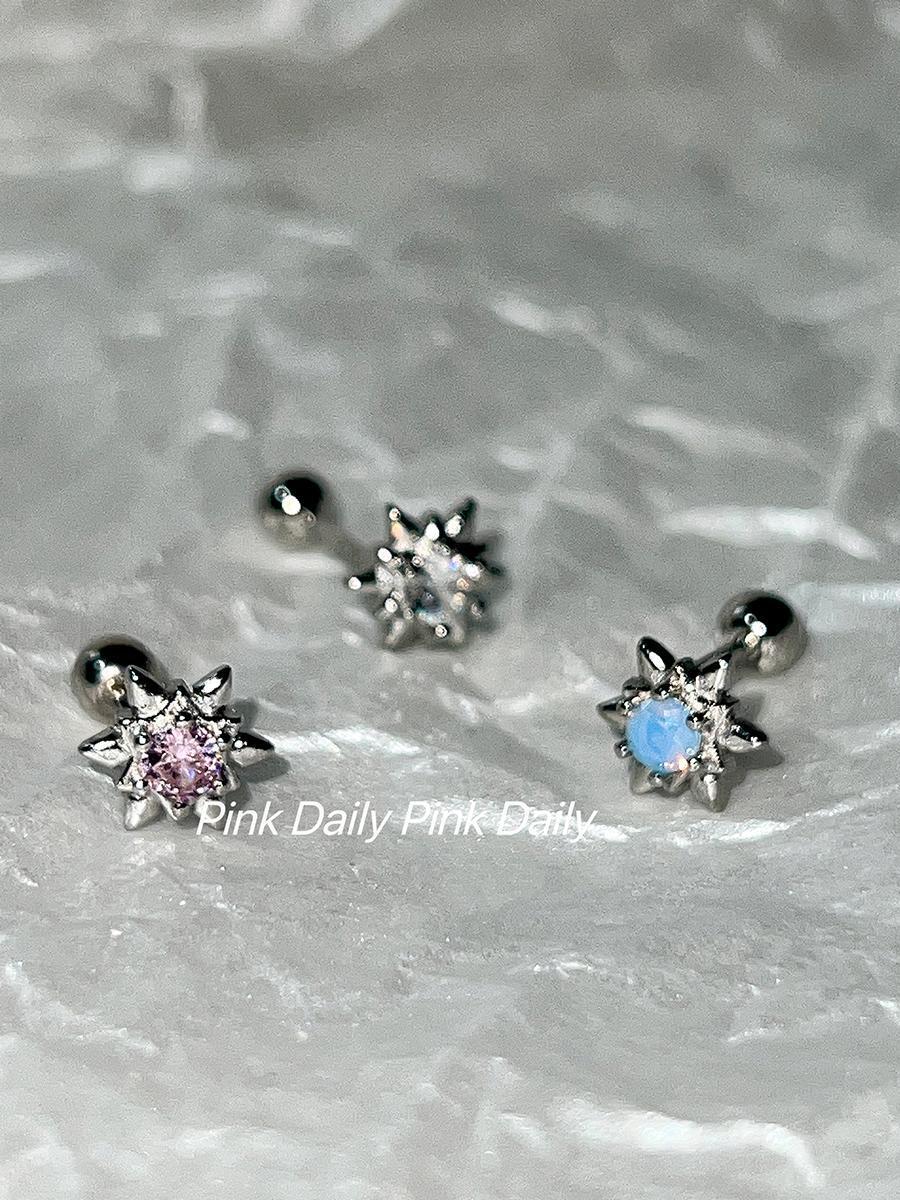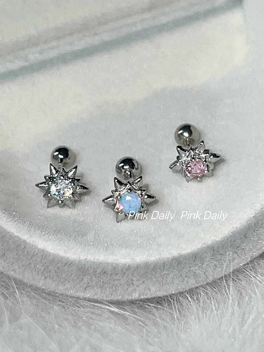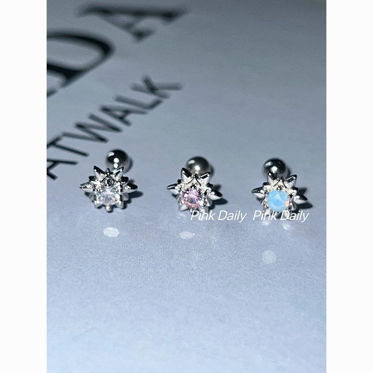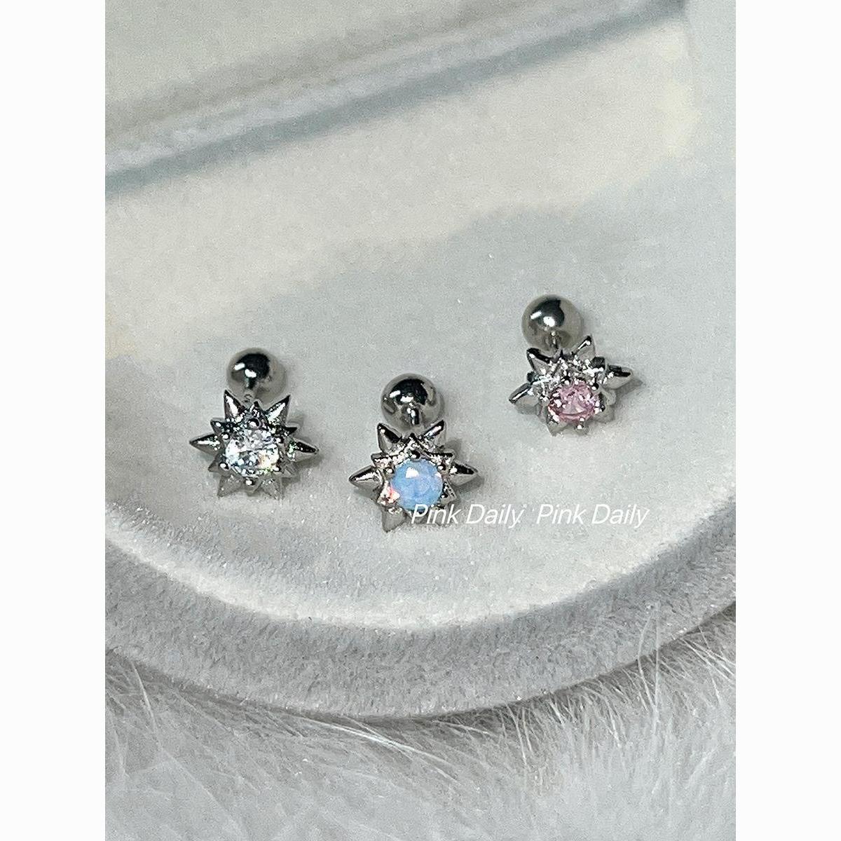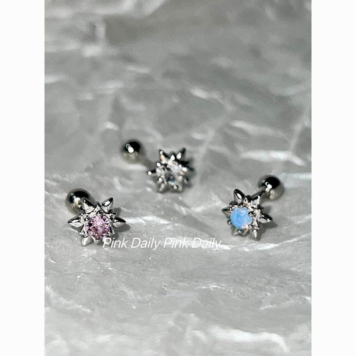 PinkDaliy镶钻六芒星耳骨钉925镀银超闪锆石拧螺丝耳蜗钉迷你耳饰