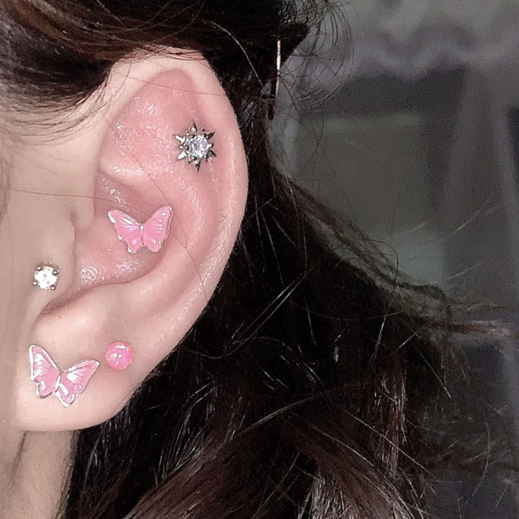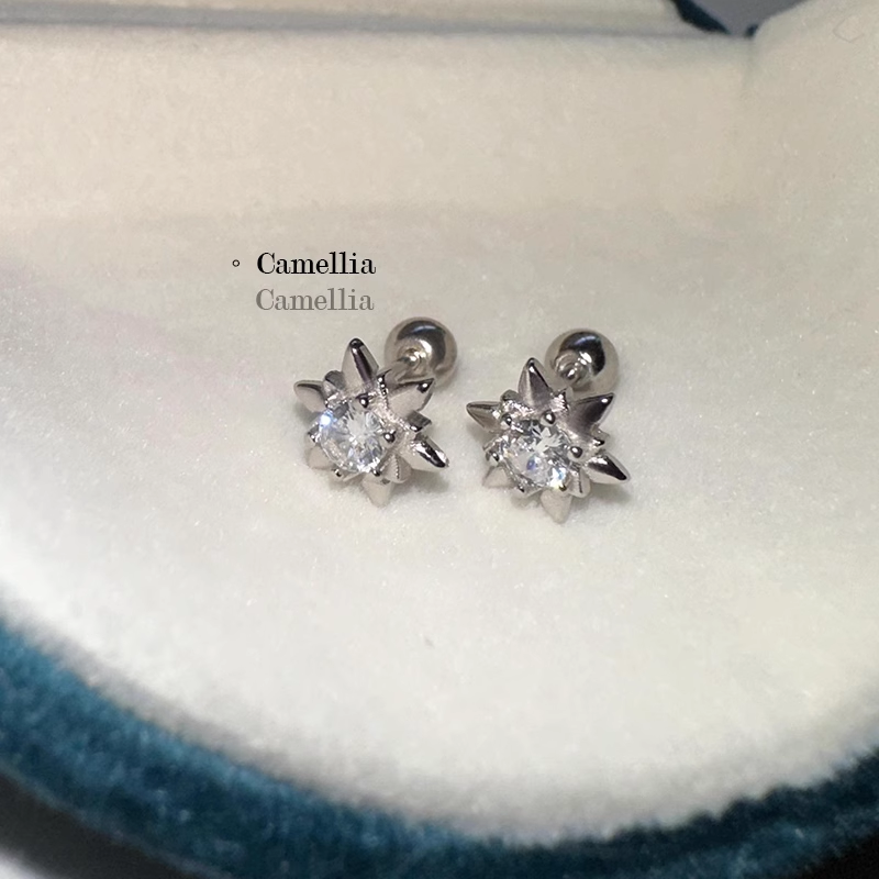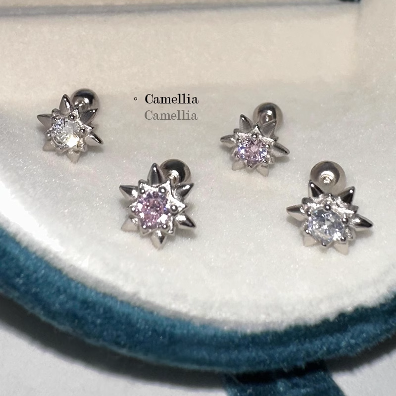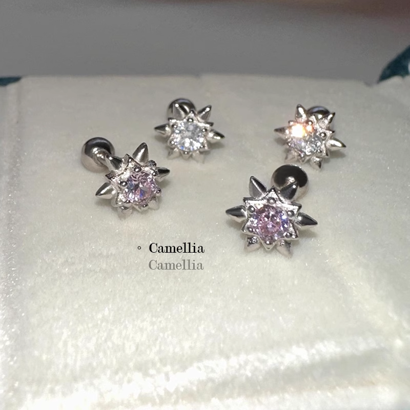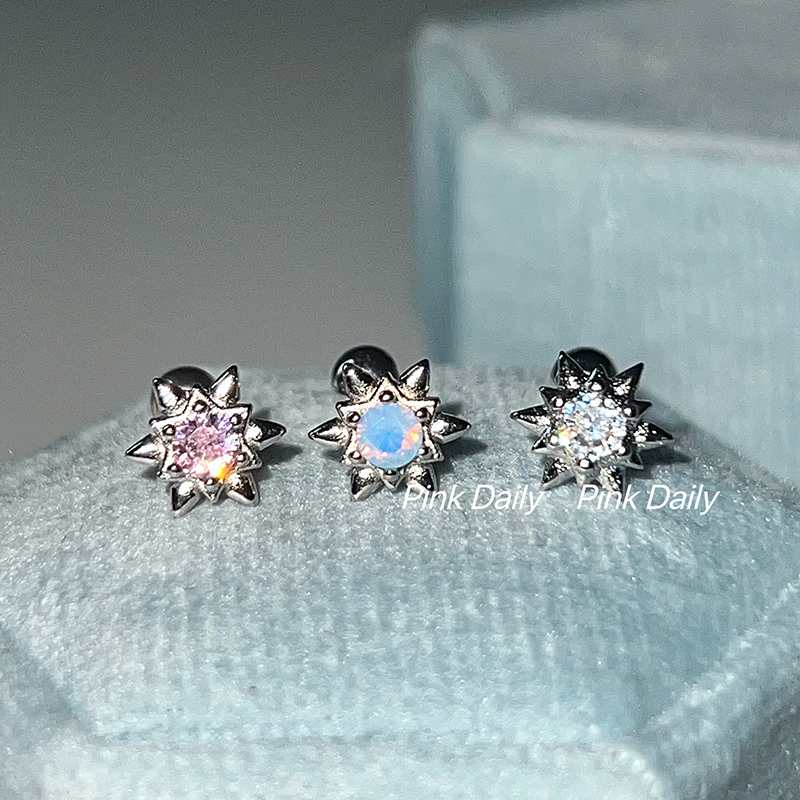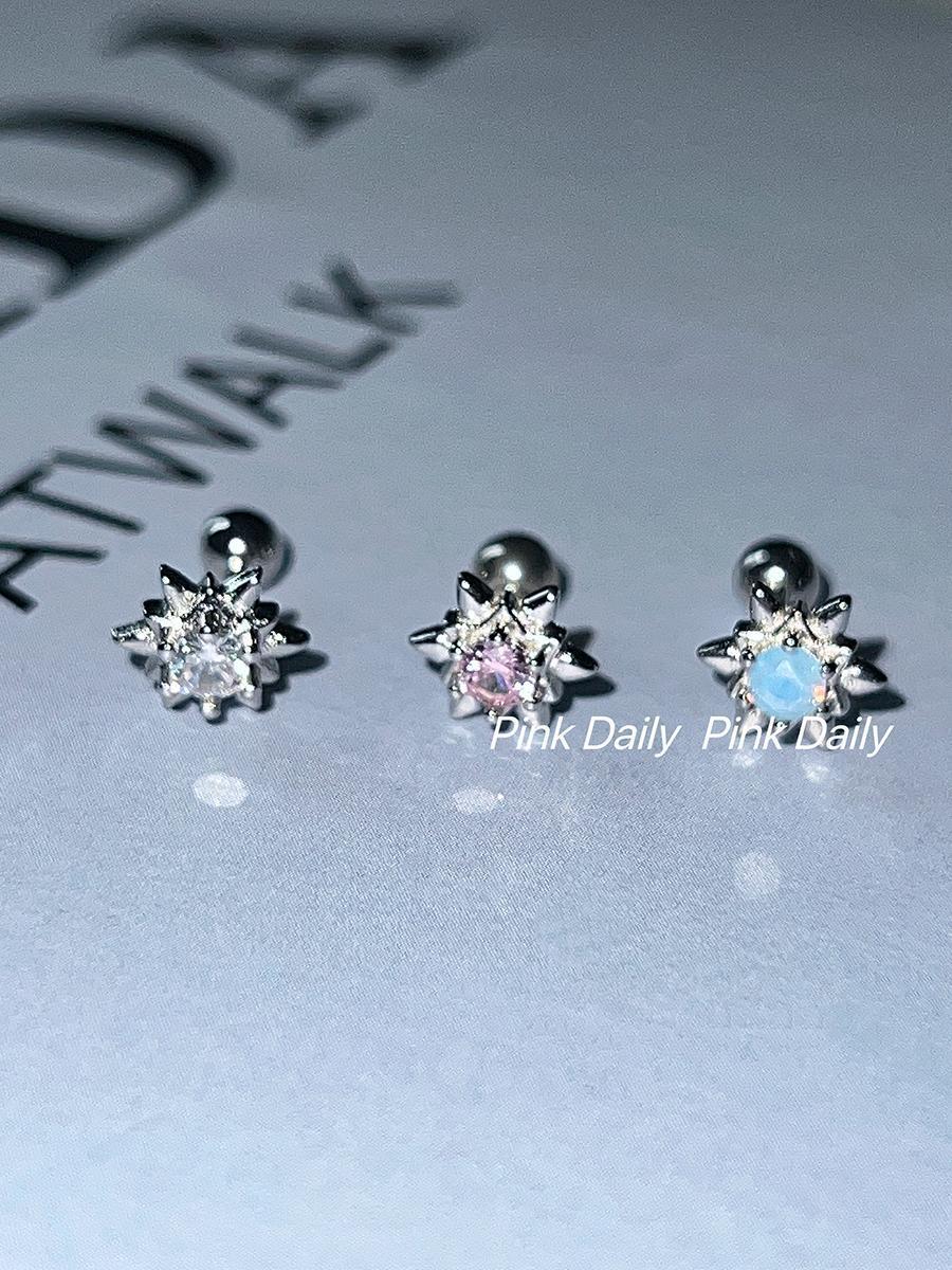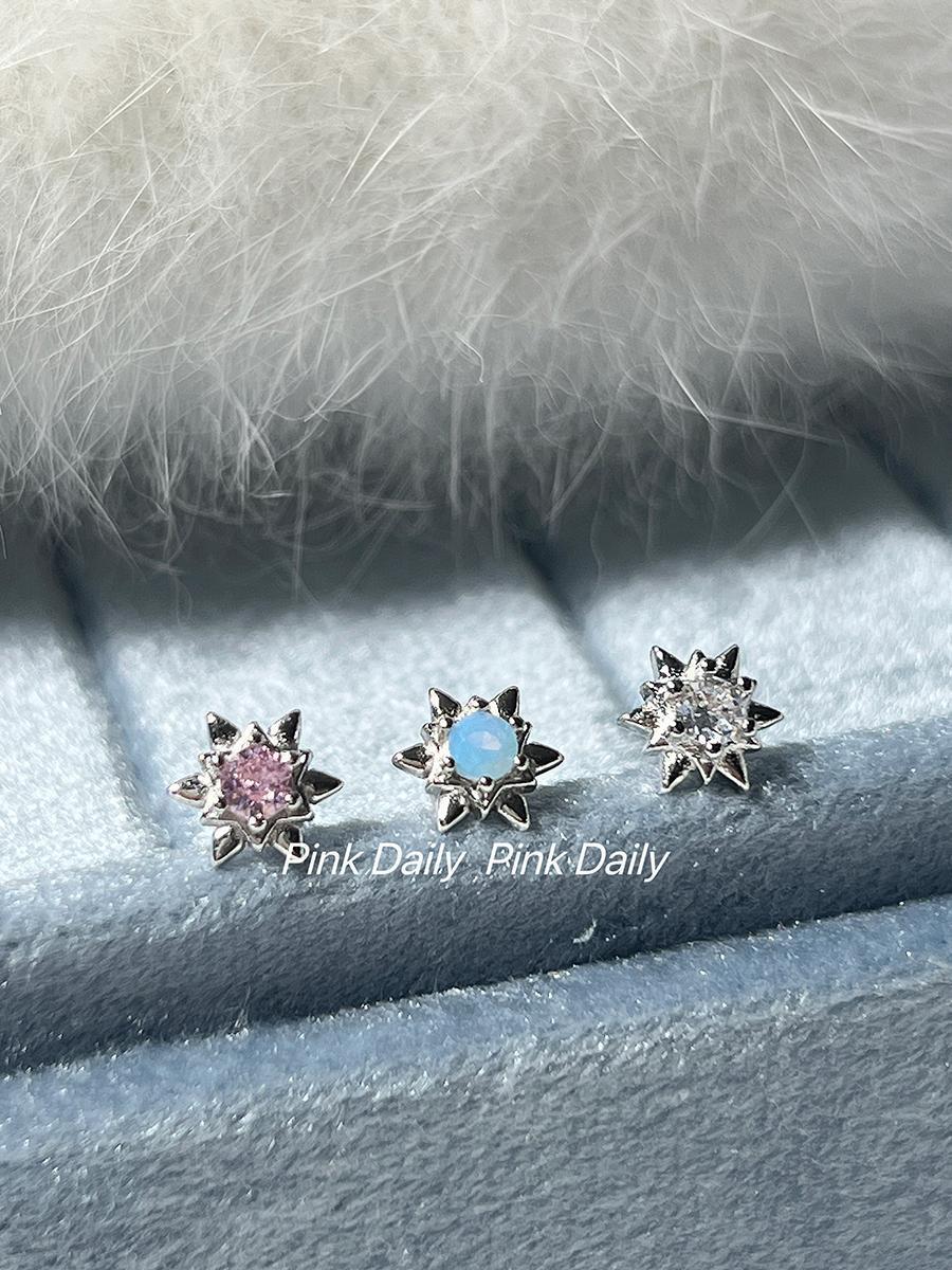 PinkDaliy镶钻六芒星耳骨钉925镀银超闪锆石拧螺丝耳蜗钉迷你耳饰