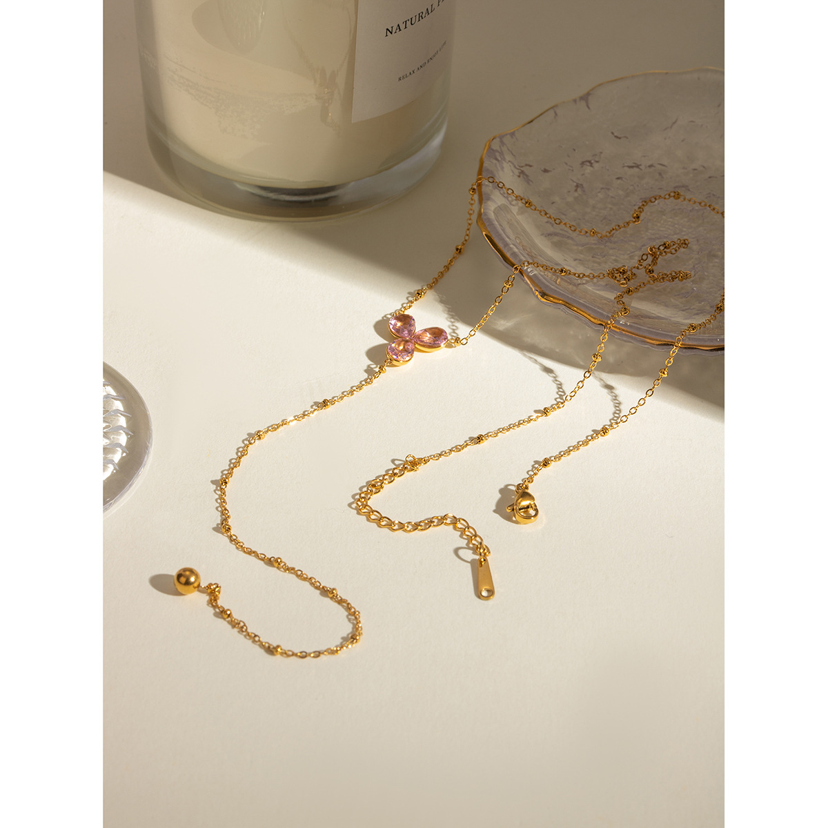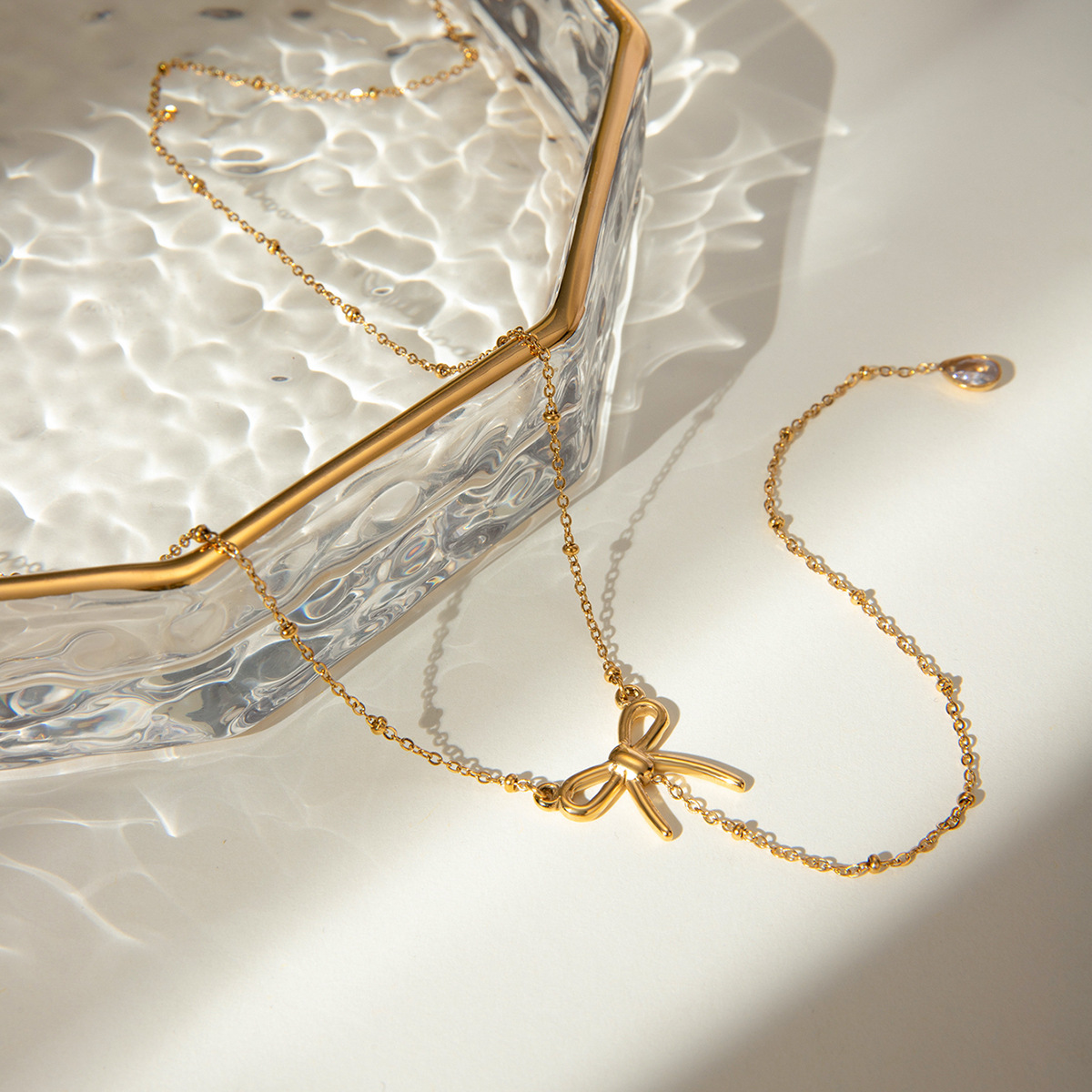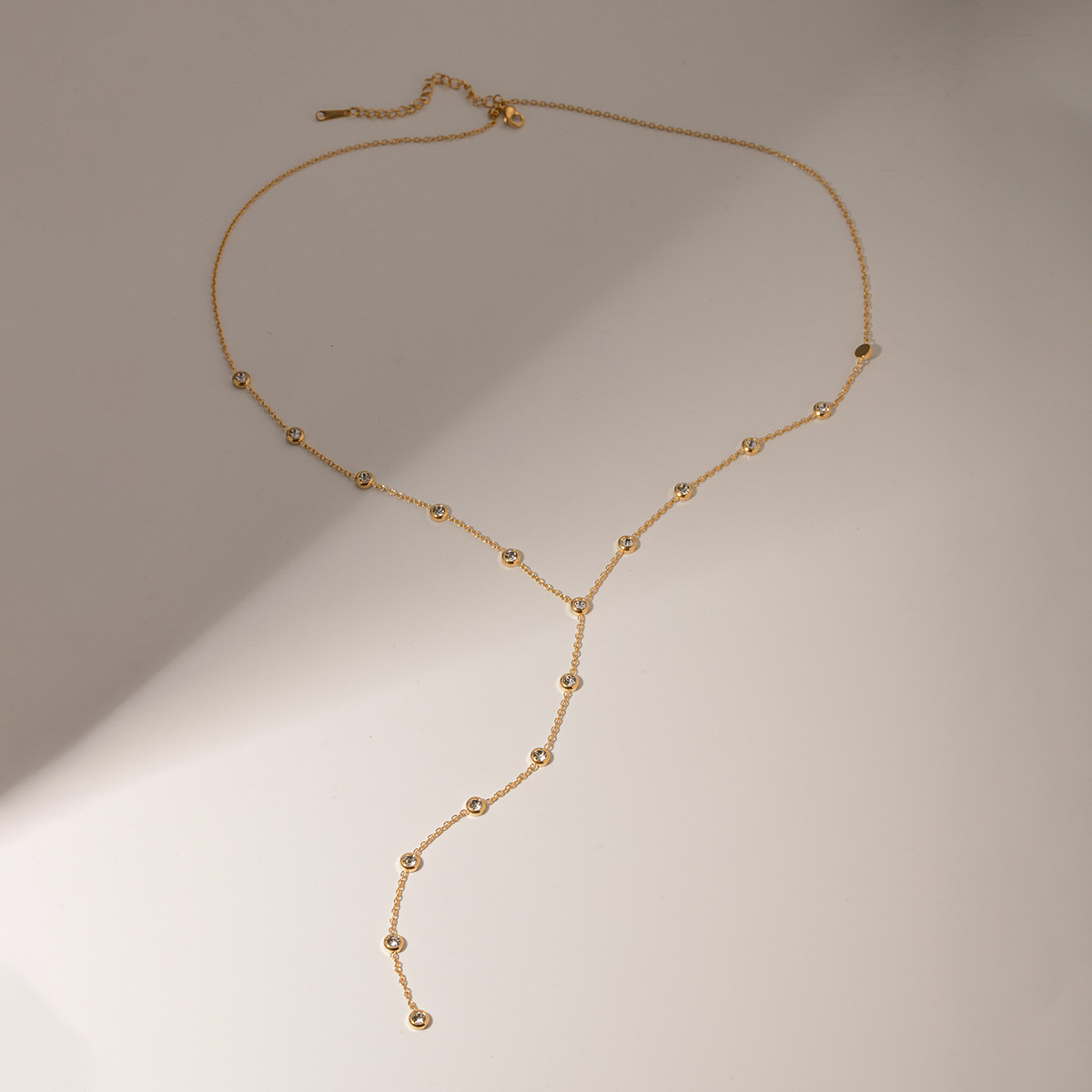 亚马逊跨境ins风 18k金不锈钢镶嵌钻石流苏吊坠Y字高级感项链饰品