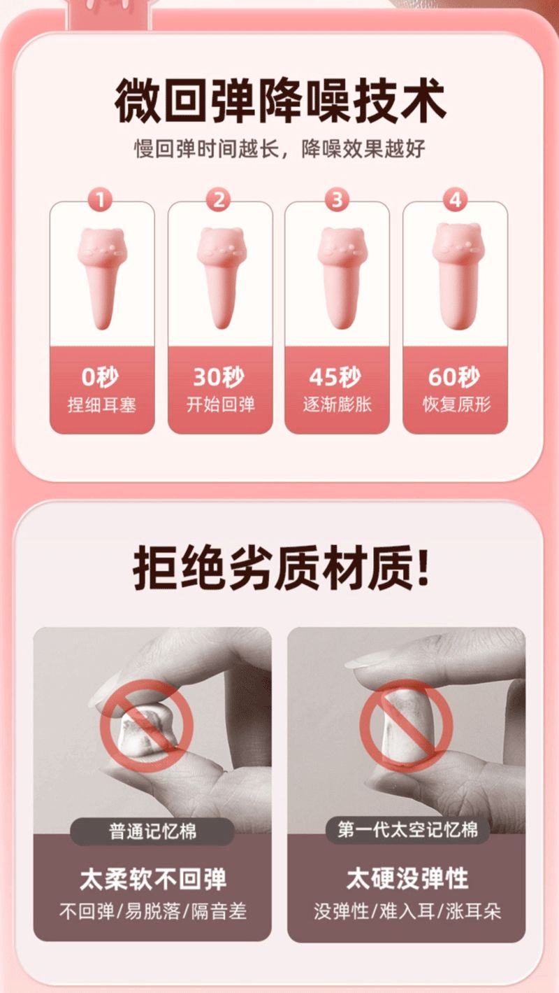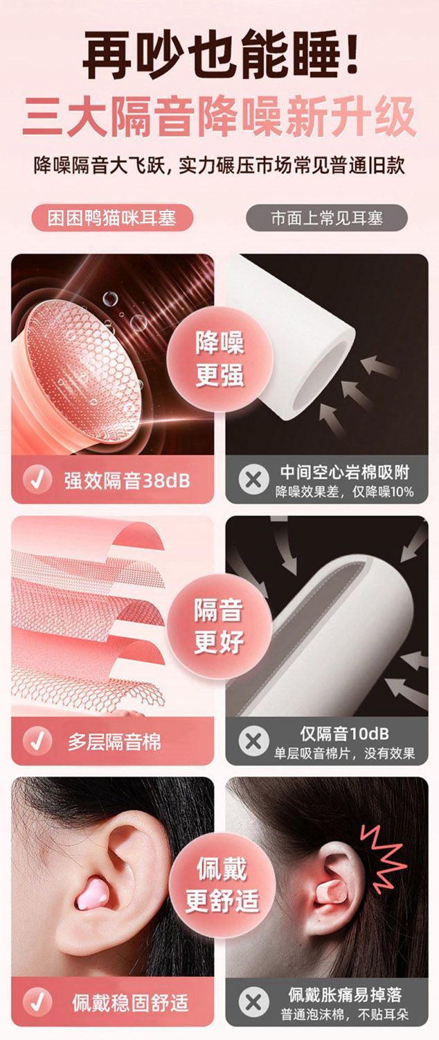 困困鸭猫咪猫爪耳塞防噪音睡觉专用睡眠降噪宿舍午休学生助眠花朵
