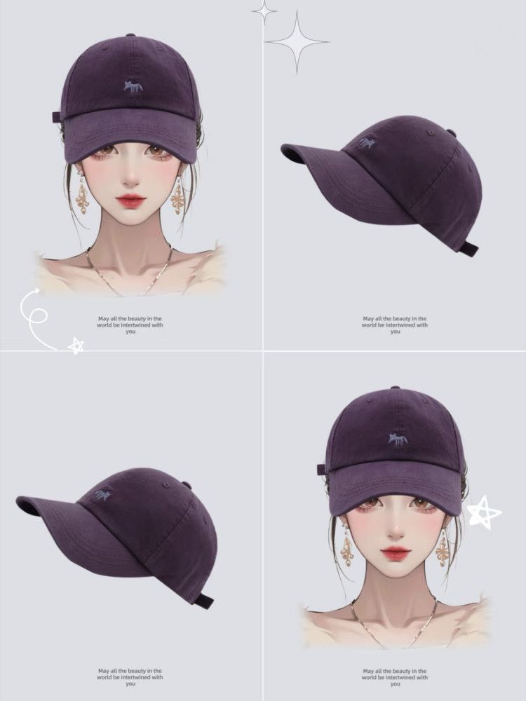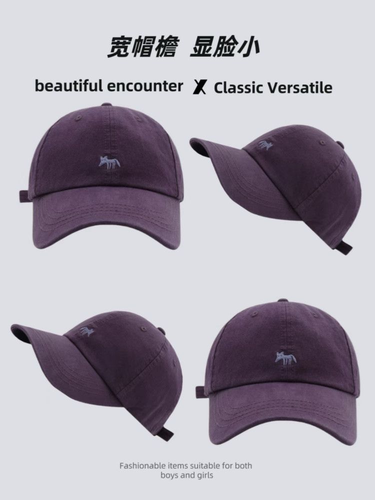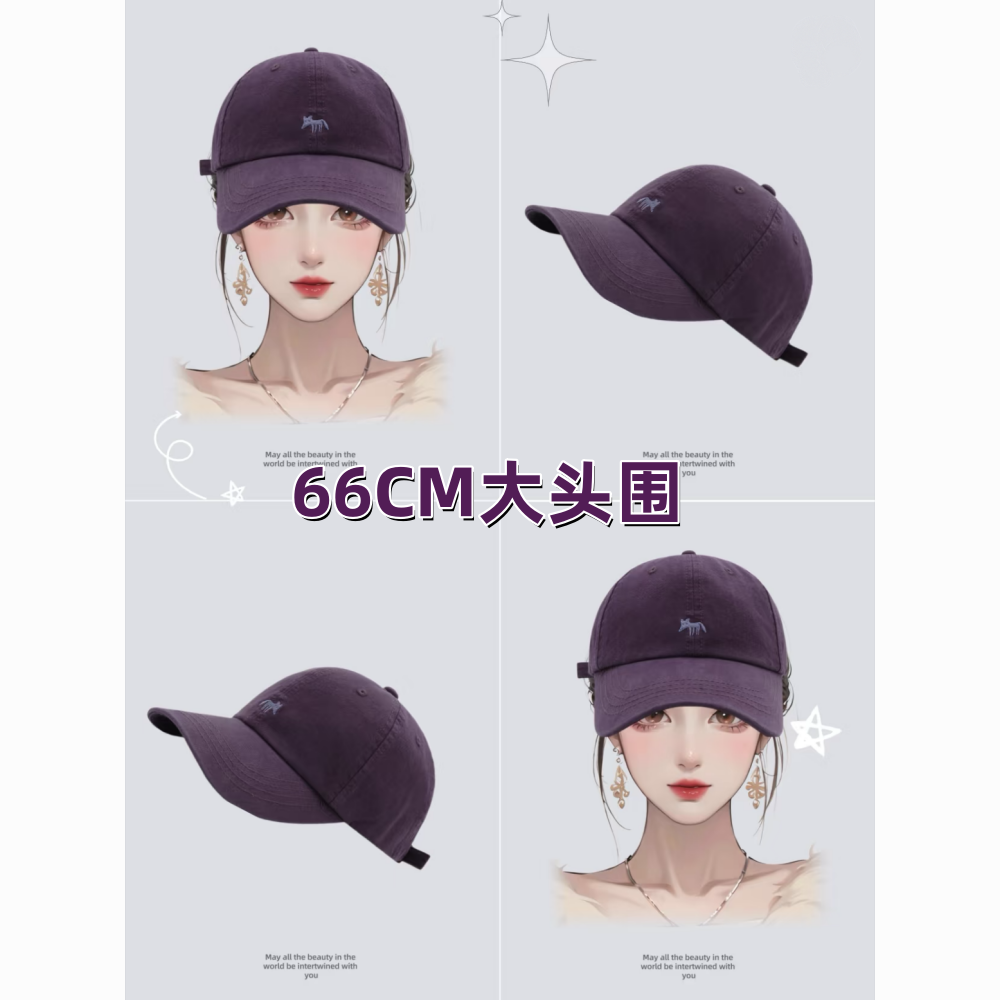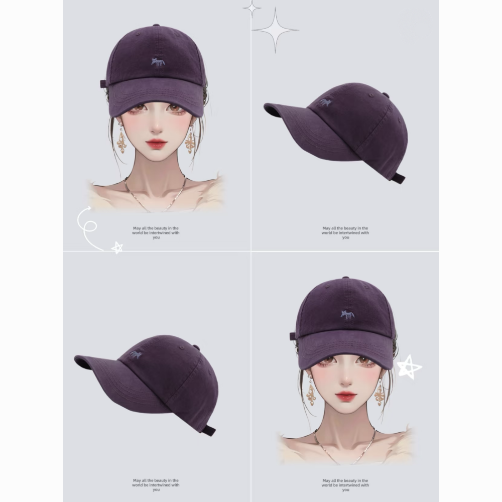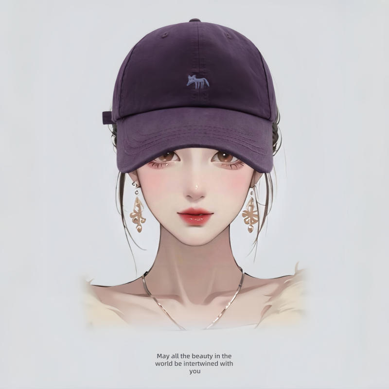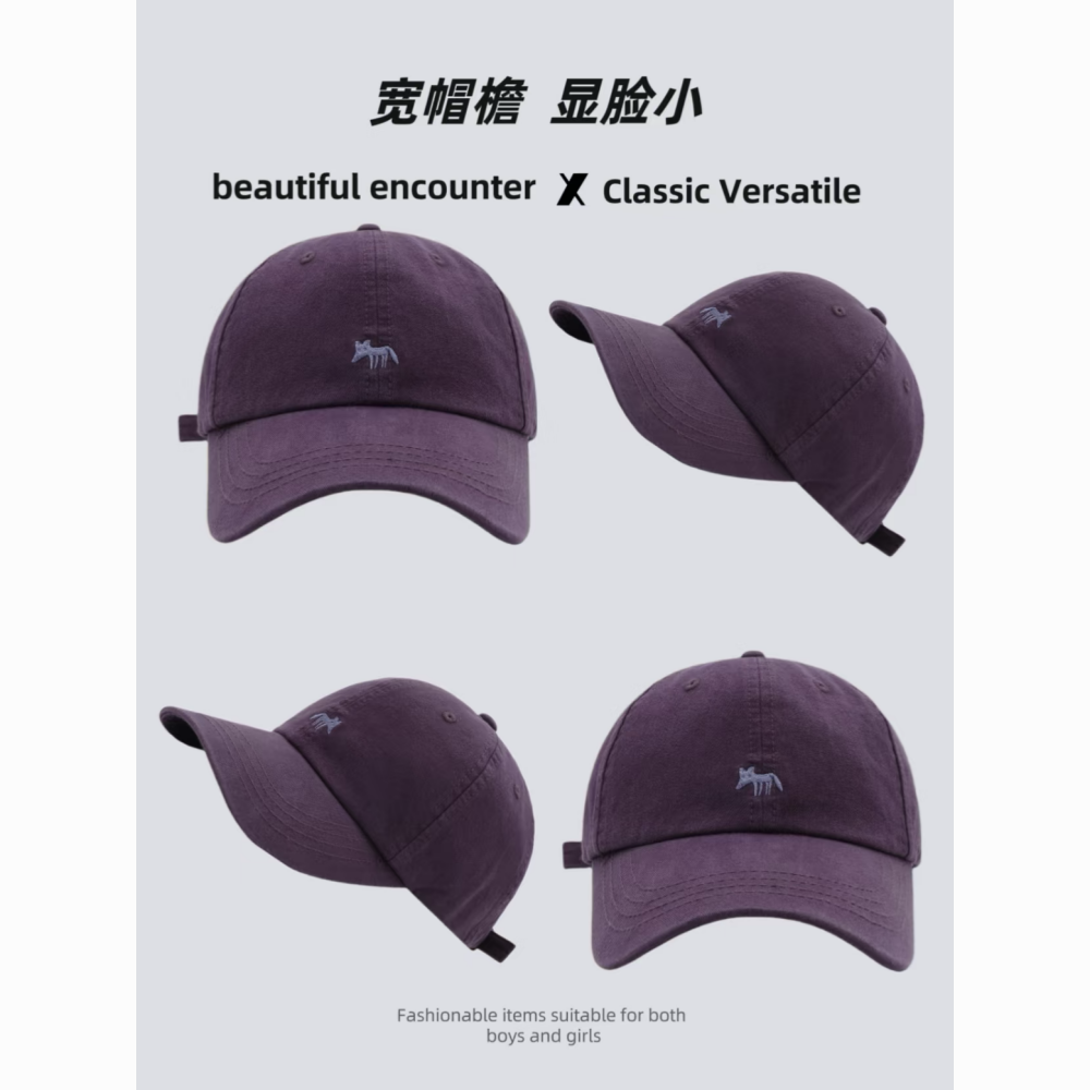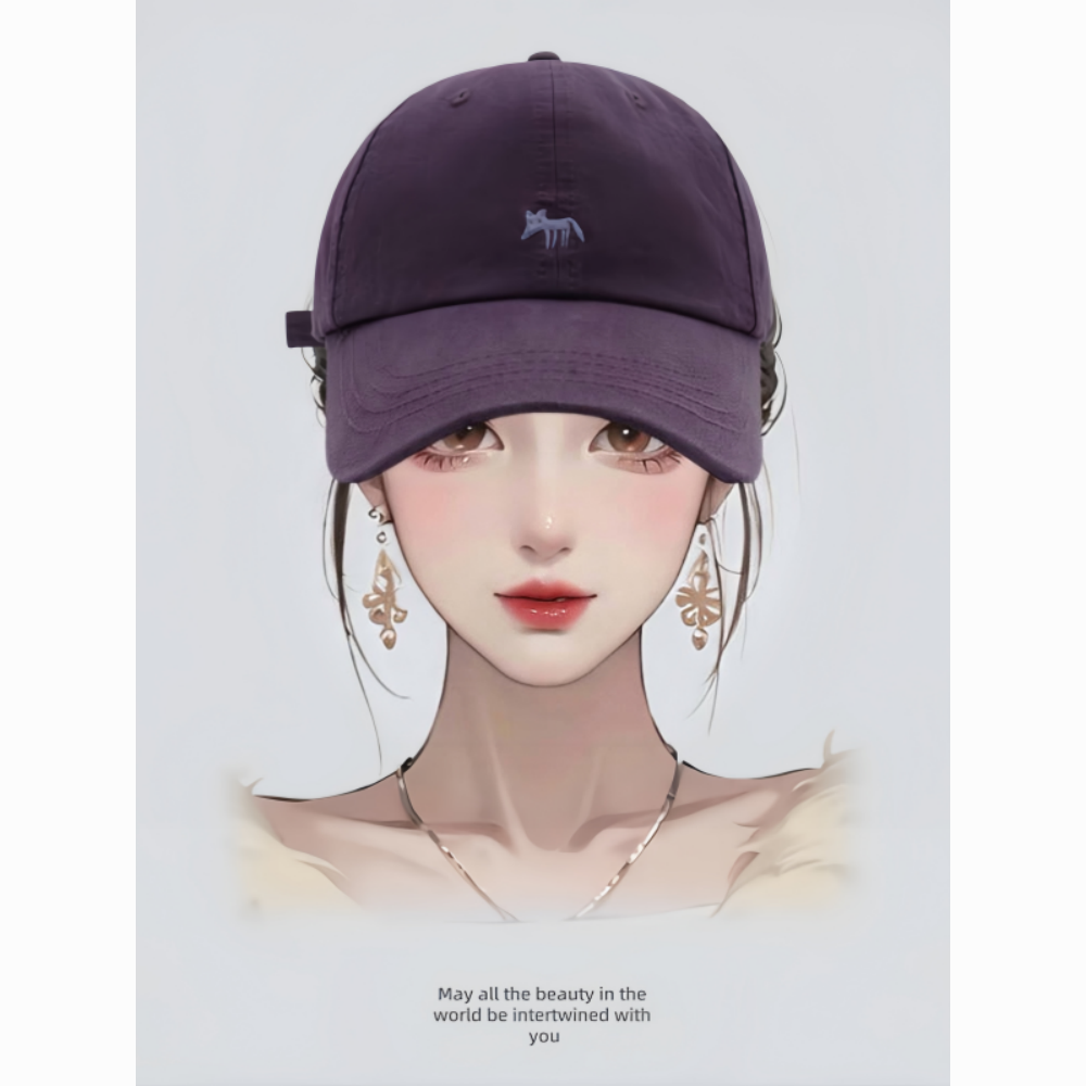韩系ins~葡萄紫刺绣小狐狸遮阳棒球帽子女户外出大檐显脸小鸭舌帽