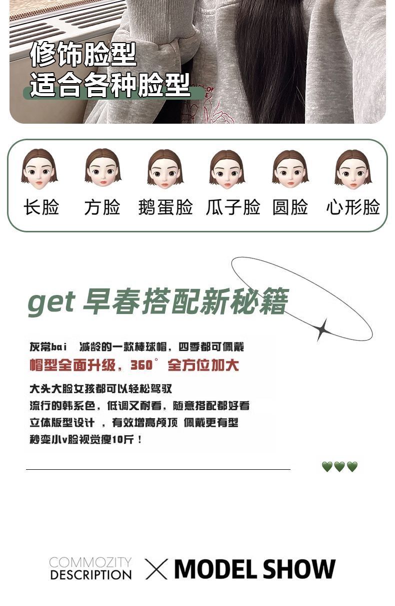 大头围棒球帽子女新款百搭夏季显脸小户外加大加深纯色防晒鸭舌帽