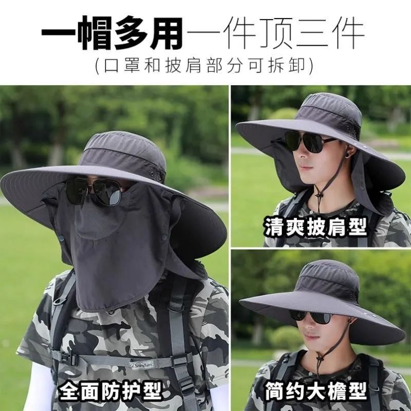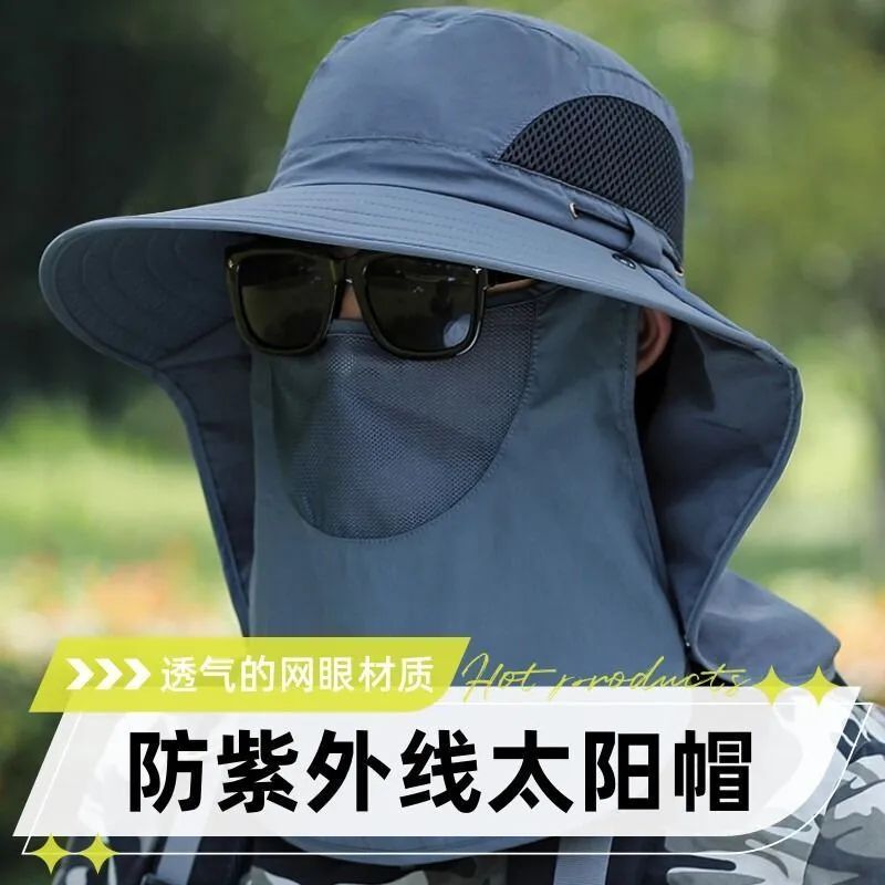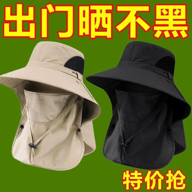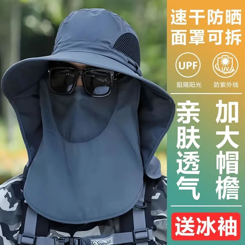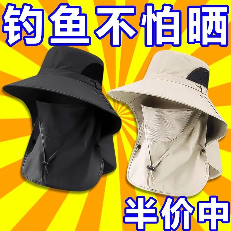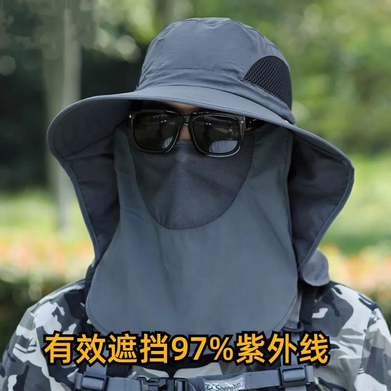 遮阳帽男女太阳帽防嗮防水防紫外线透气帽夏季出游遮脸护颈帽钓鱼
