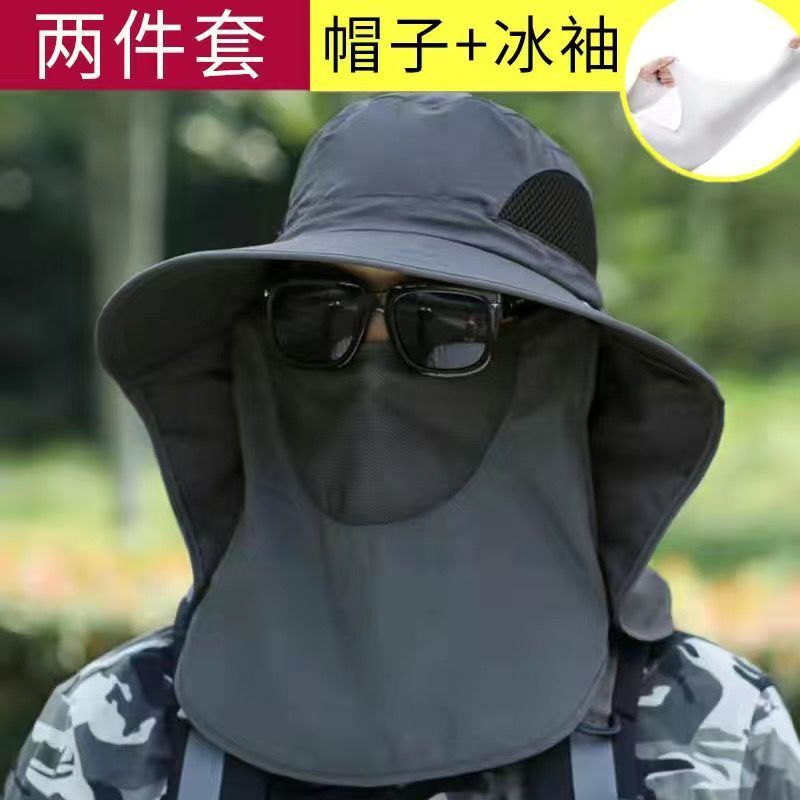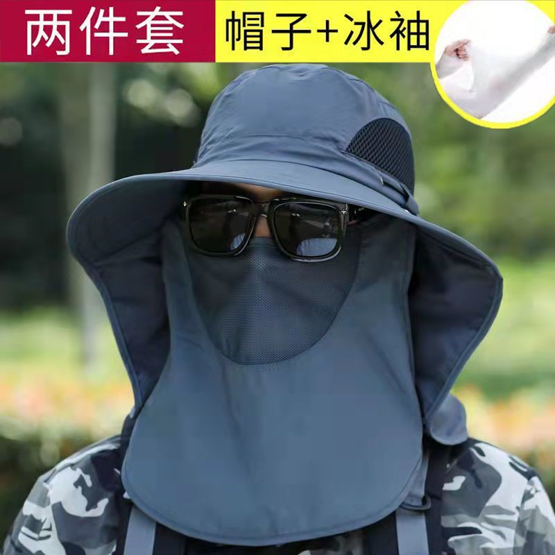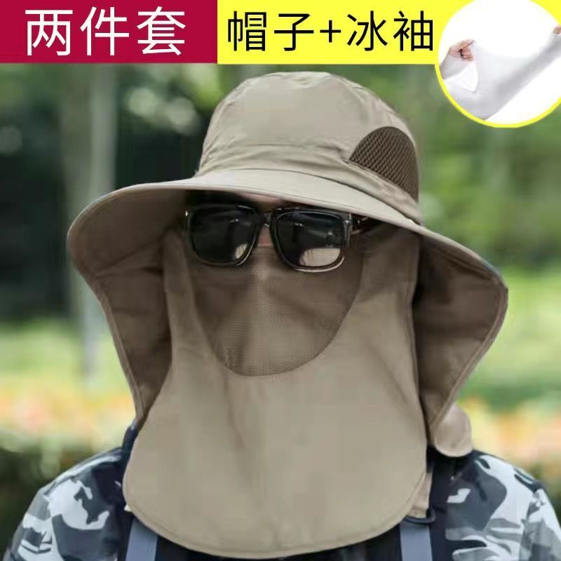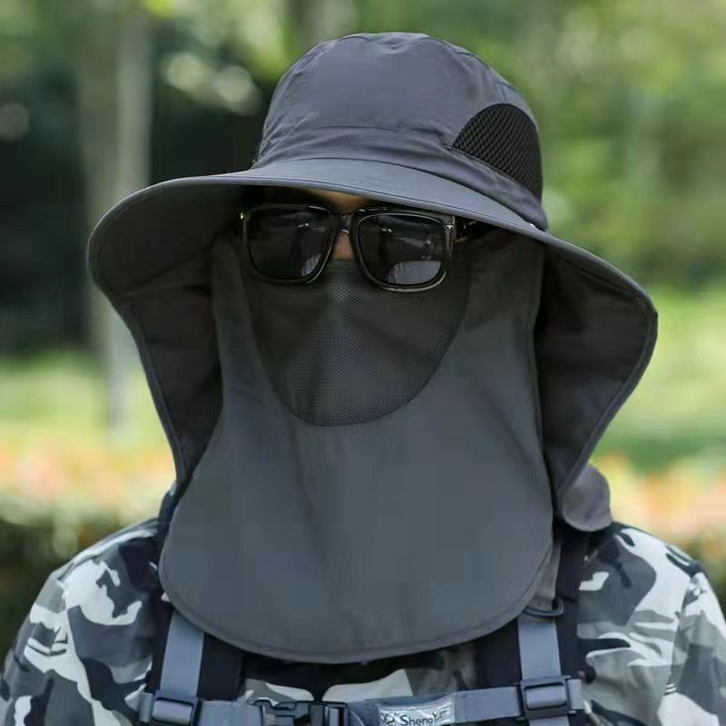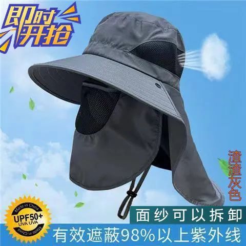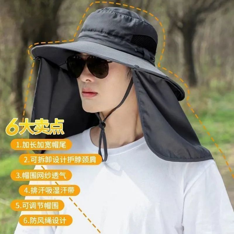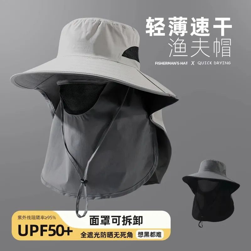 遮阳帽男女太阳帽防嗮防水防紫外线透气帽夏季出游遮脸护颈帽钓鱼
