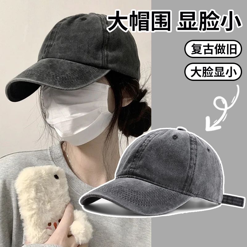 棒球帽女春夏季新款韩版大头围百搭显脸小灰色水洗牛仔鸭舌帽子潮