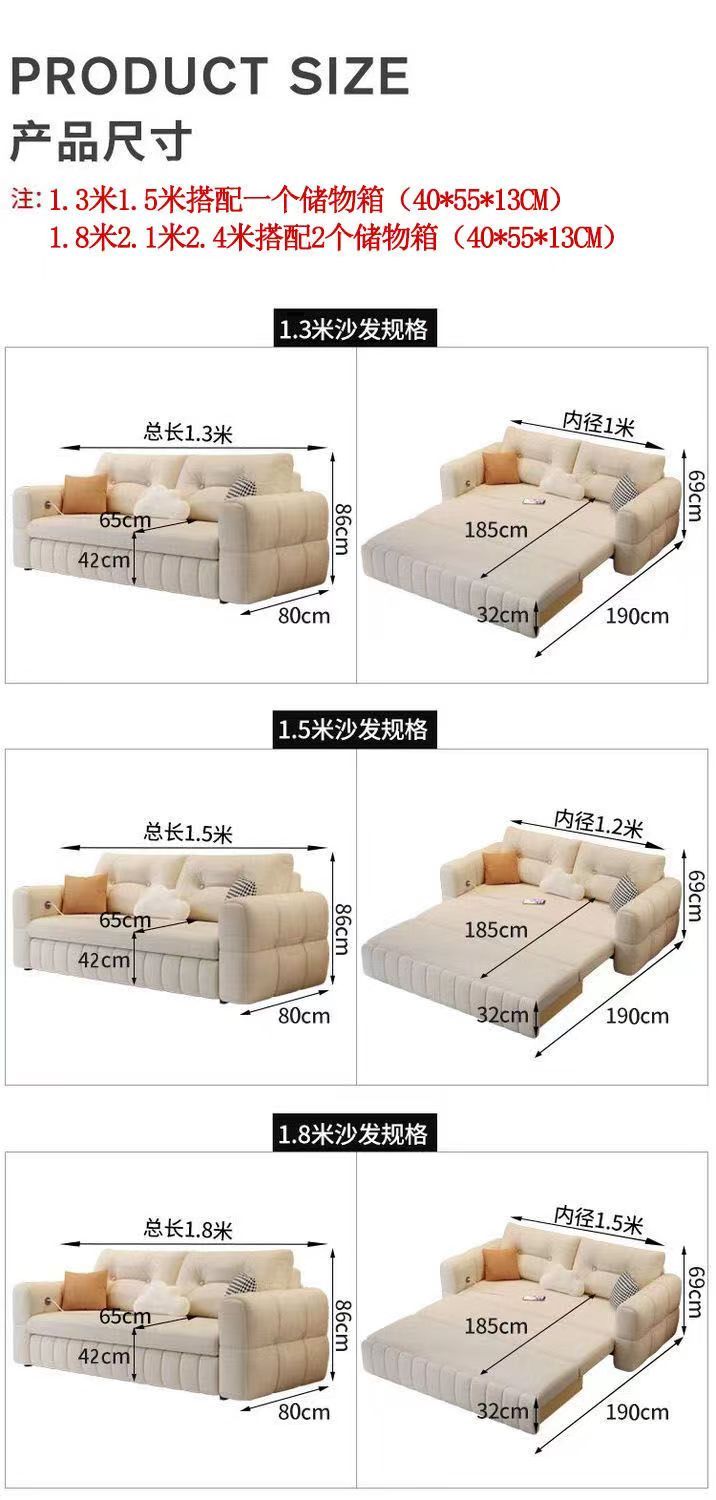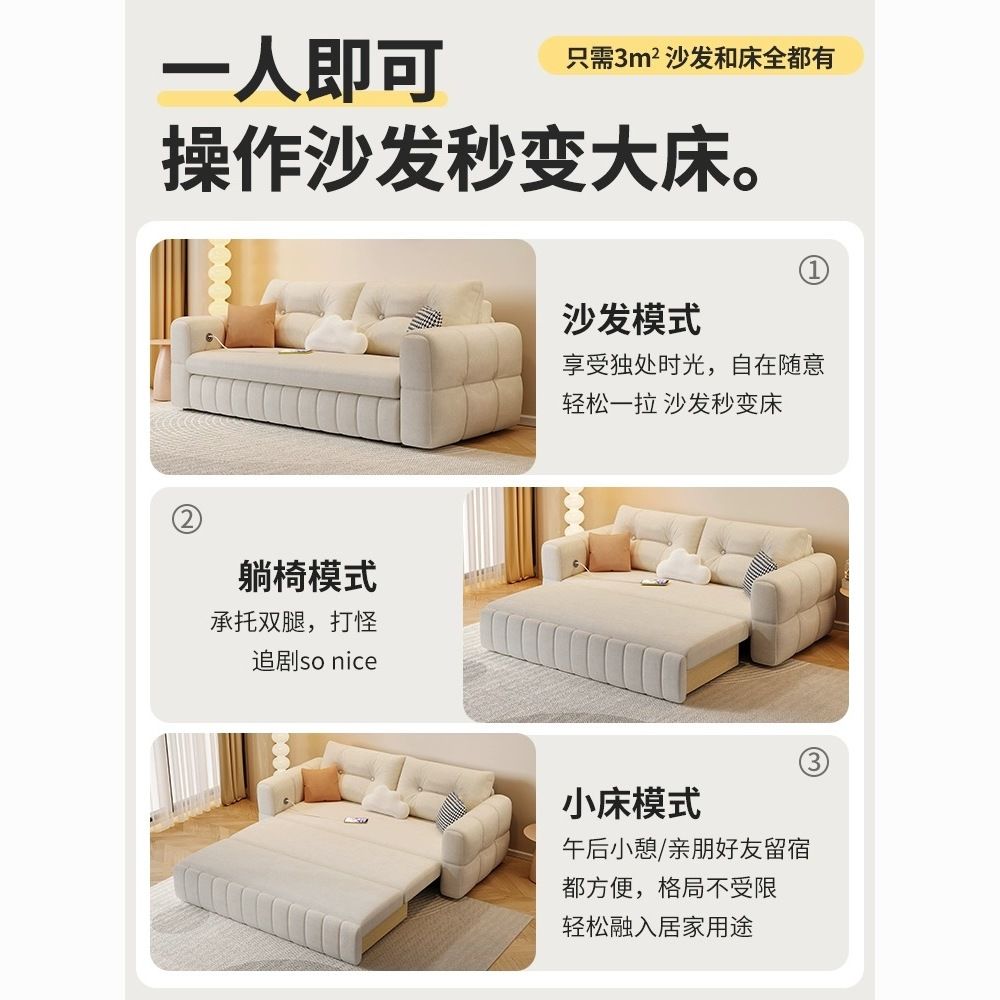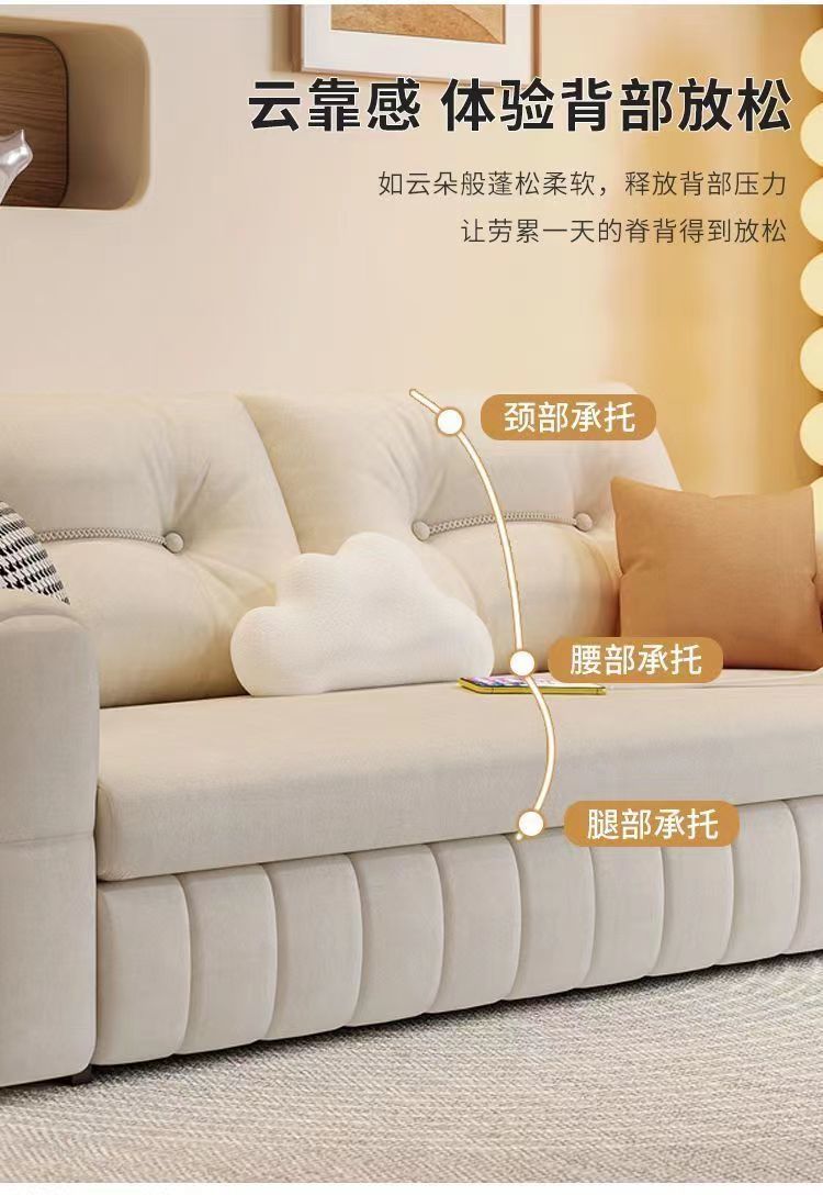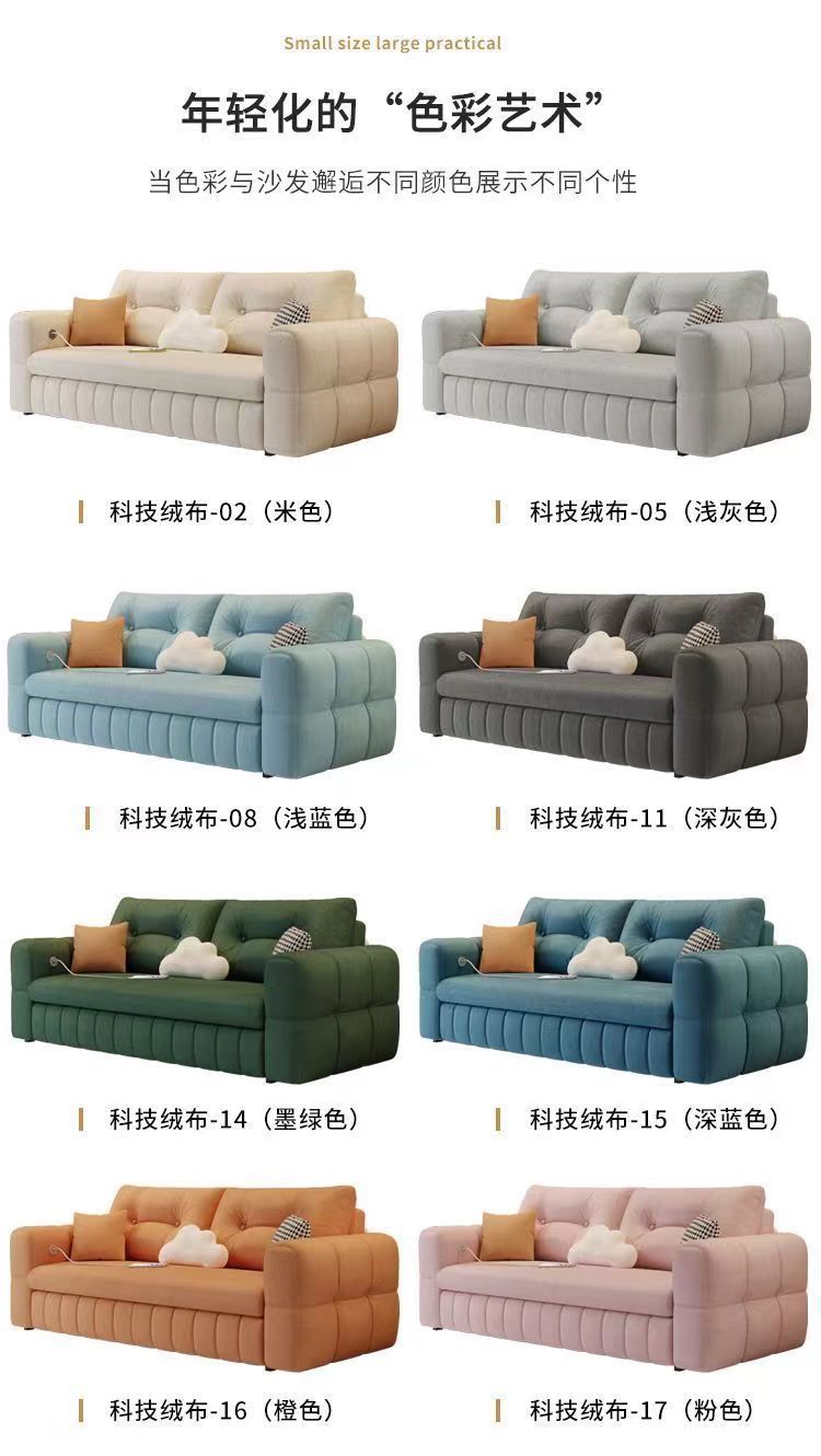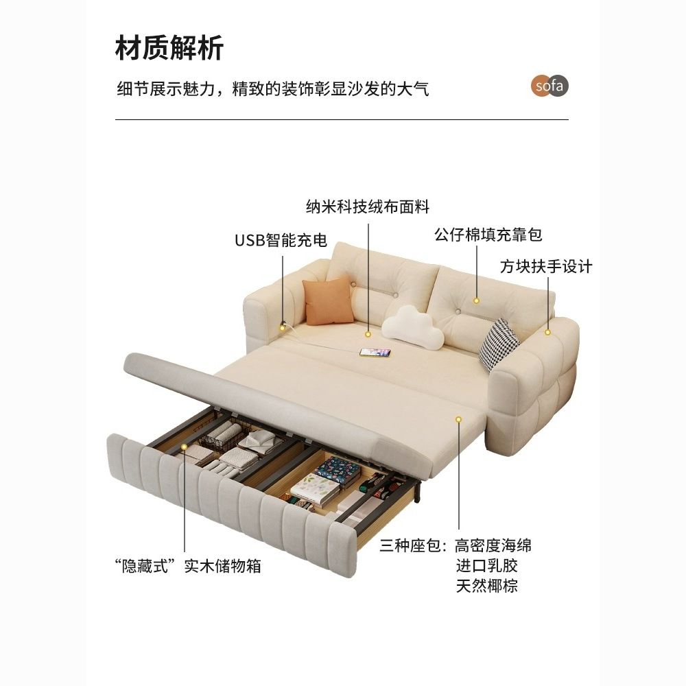 新款奶油猫爪多功能绒布沙发床可折叠两用小户型双人客厅一体储物
