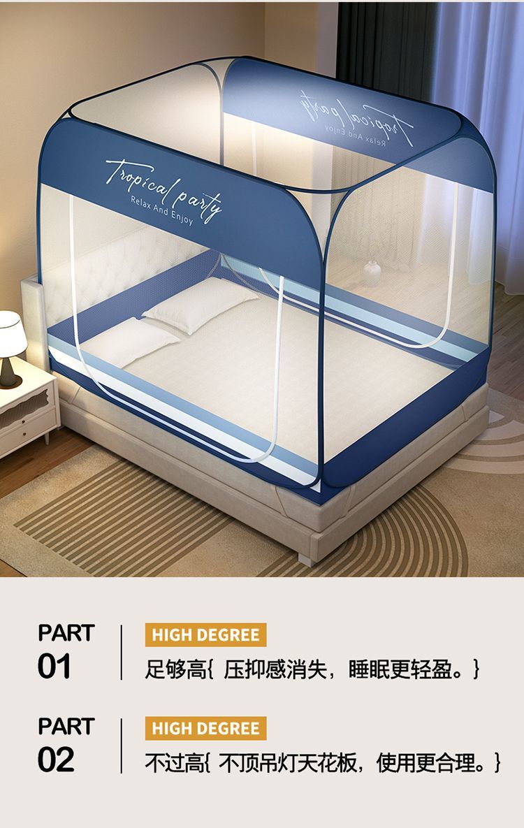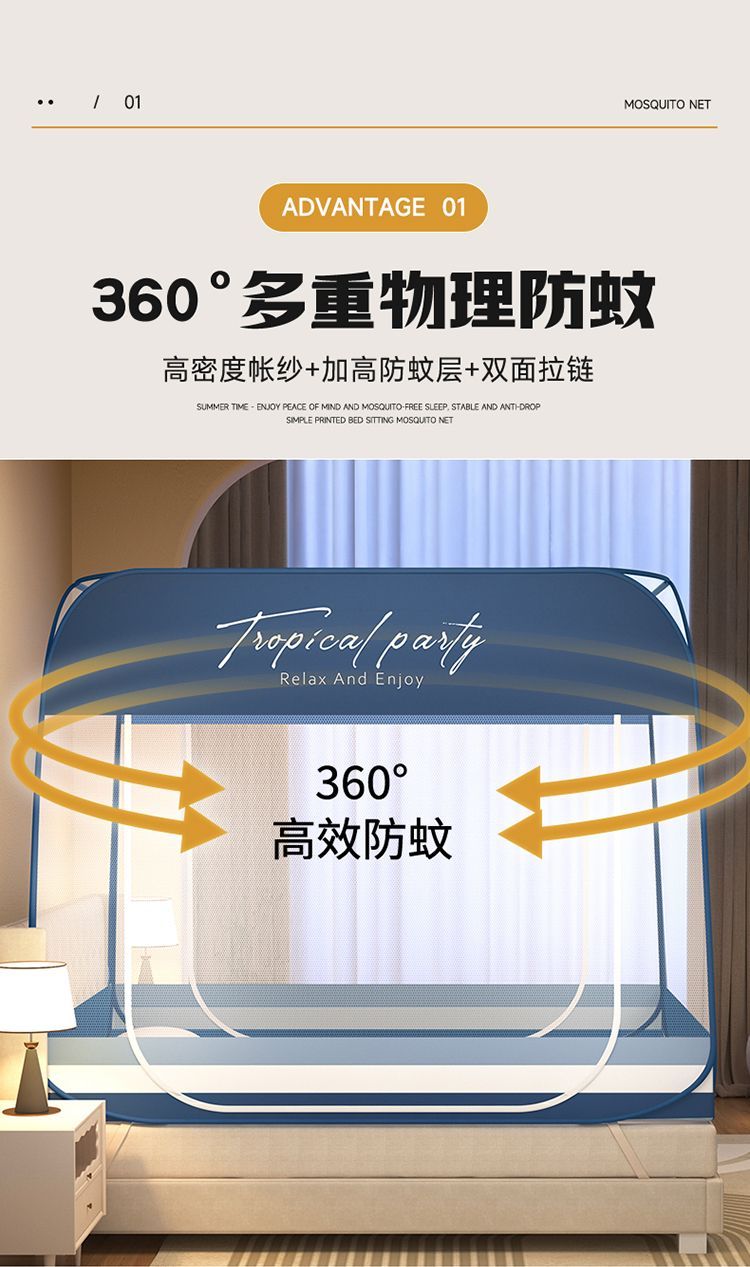 家用蚊帐新款免安装蒙古包卧室可折叠有底防摔1.8m双人1.2m单人床