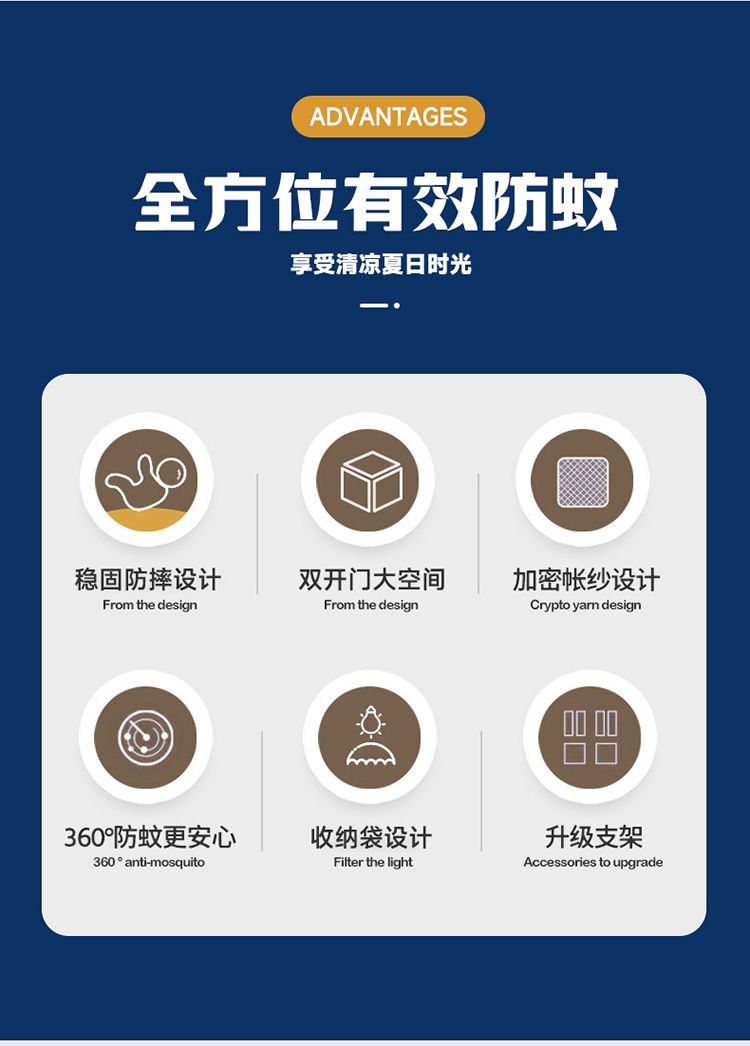 | width 2.0m * length 2.2m * height 150 maternal and child grade tent yarn(宽2.0m*长2.2m*高150母婴级帐纱) | USD $10.22 | 999999 piece available |