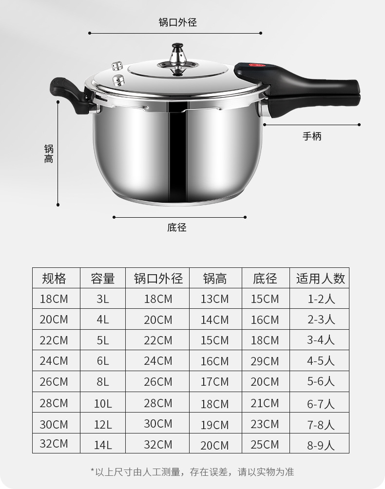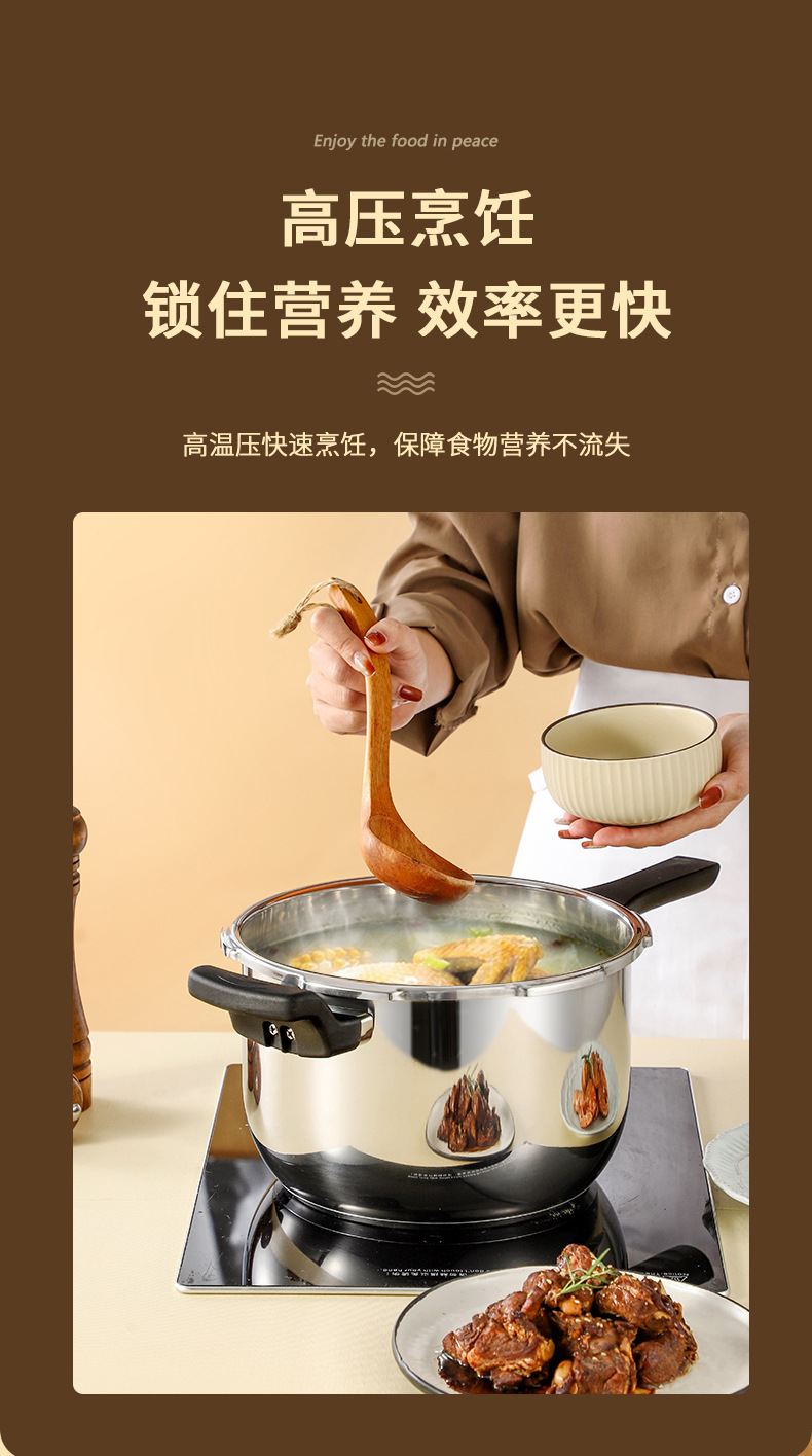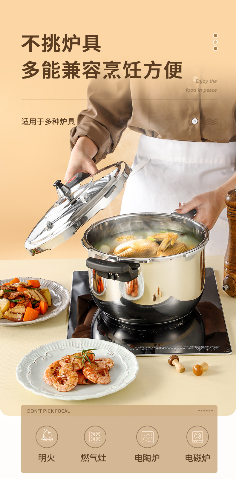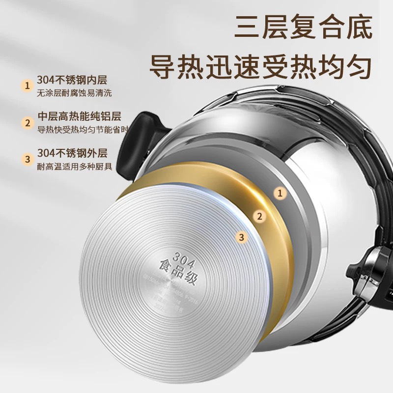 201不锈钢压力锅家用 复底燃气电磁炉通用单柄多功能大容量高压锅
