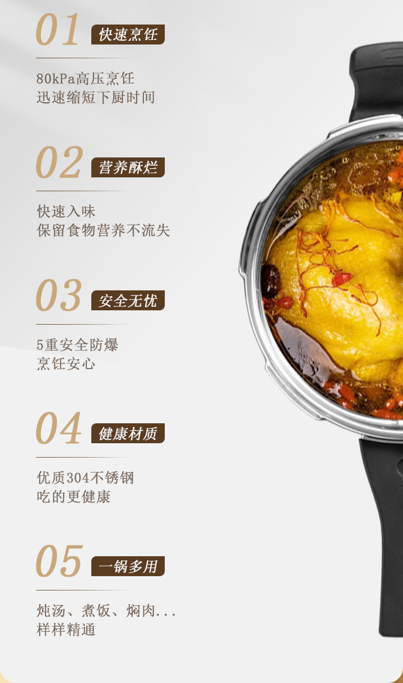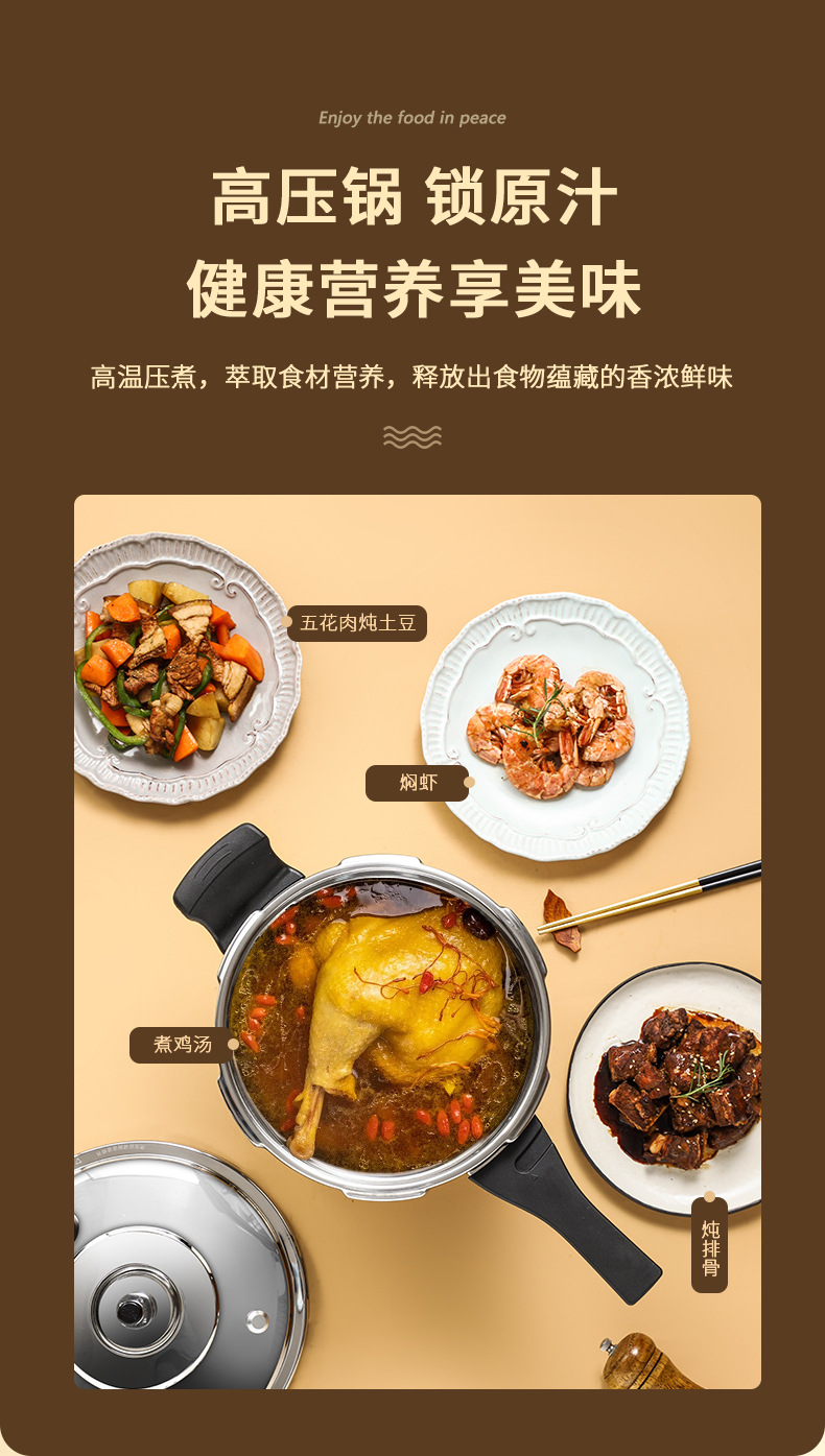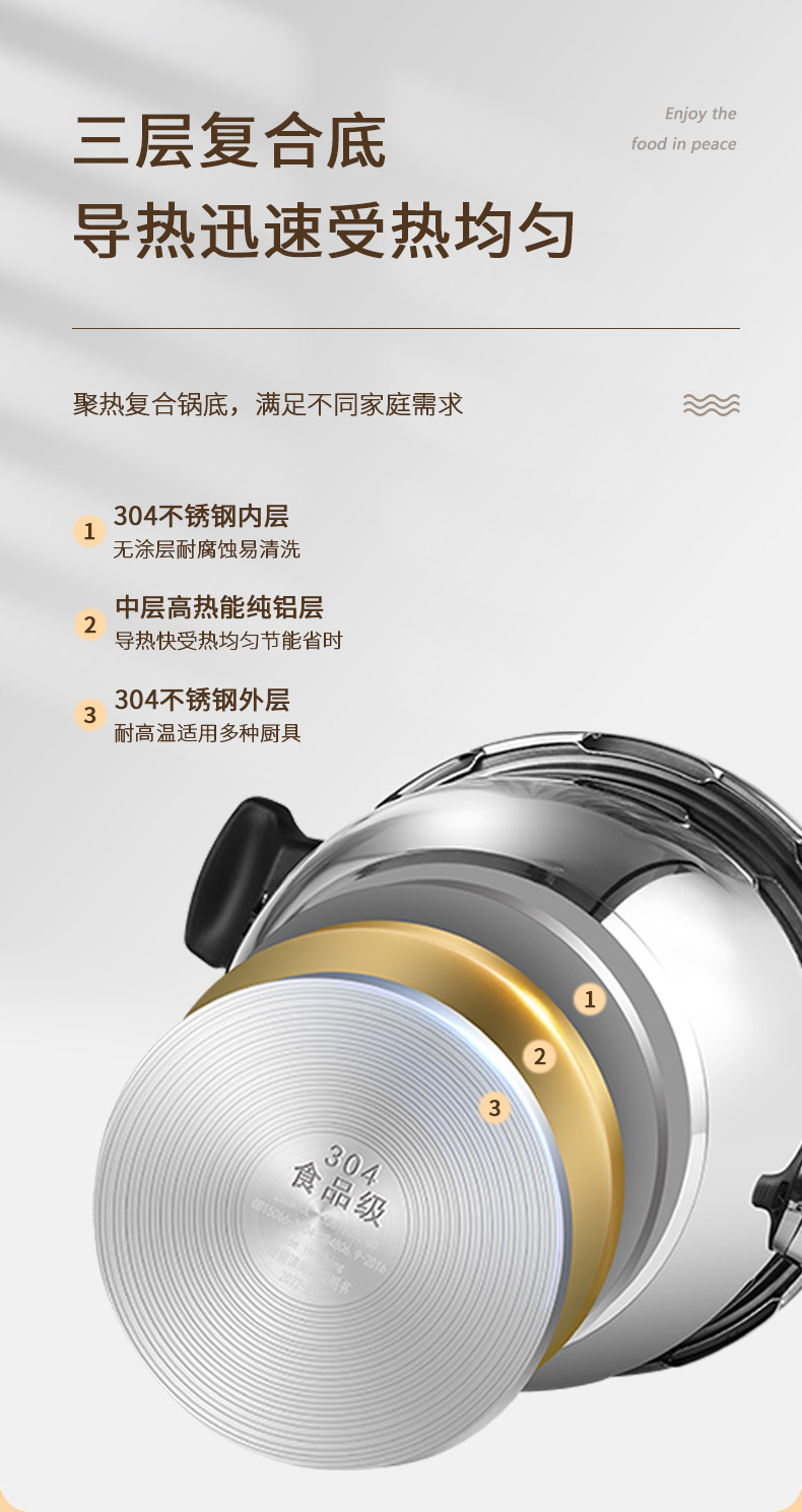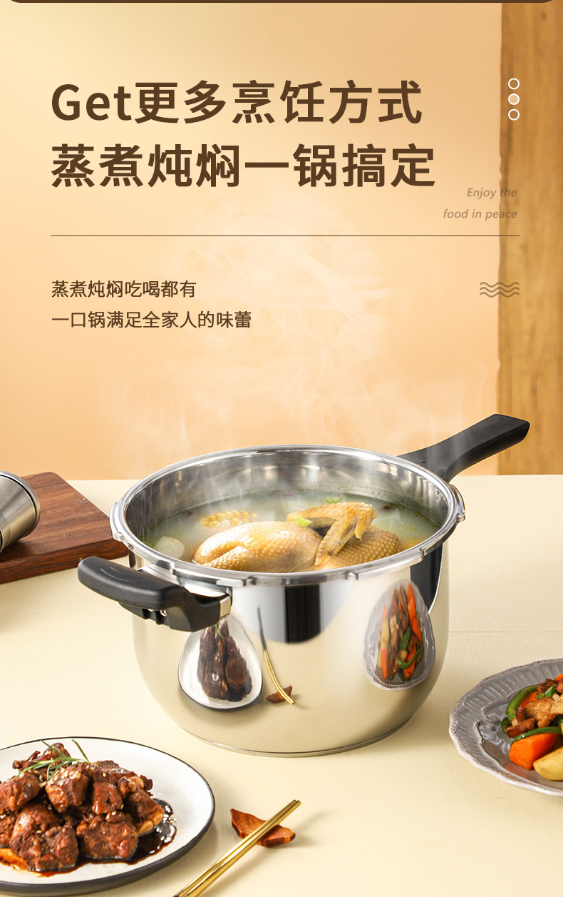 201不锈钢压力锅家用 复底燃气电磁炉通用单柄多功能大容量高压锅