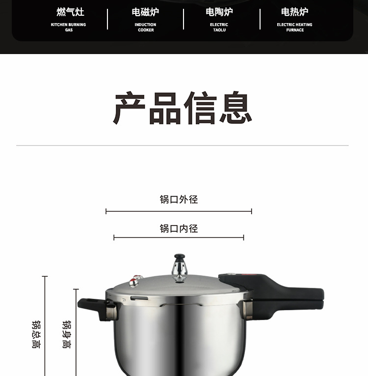 304加厚不锈钢高压锅燃煤气电磁炉通用安全防爆压力锅家用打底锅