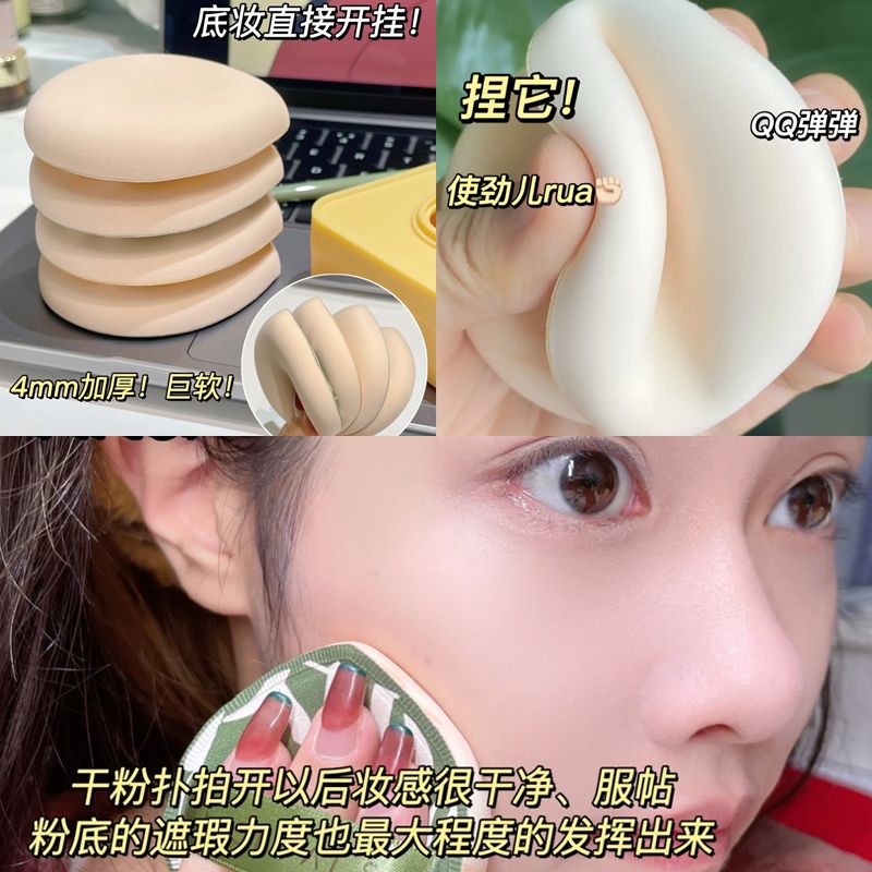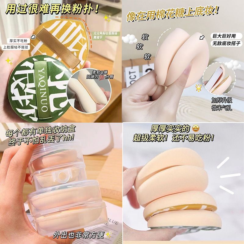 小鱼海棠推荐粉扑粉底液专用棉花糖气垫粉饼干湿两用粉扑收纳盒
