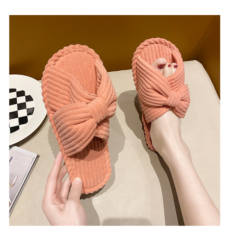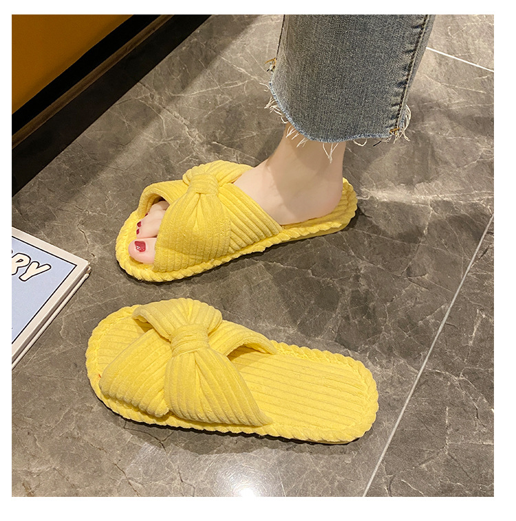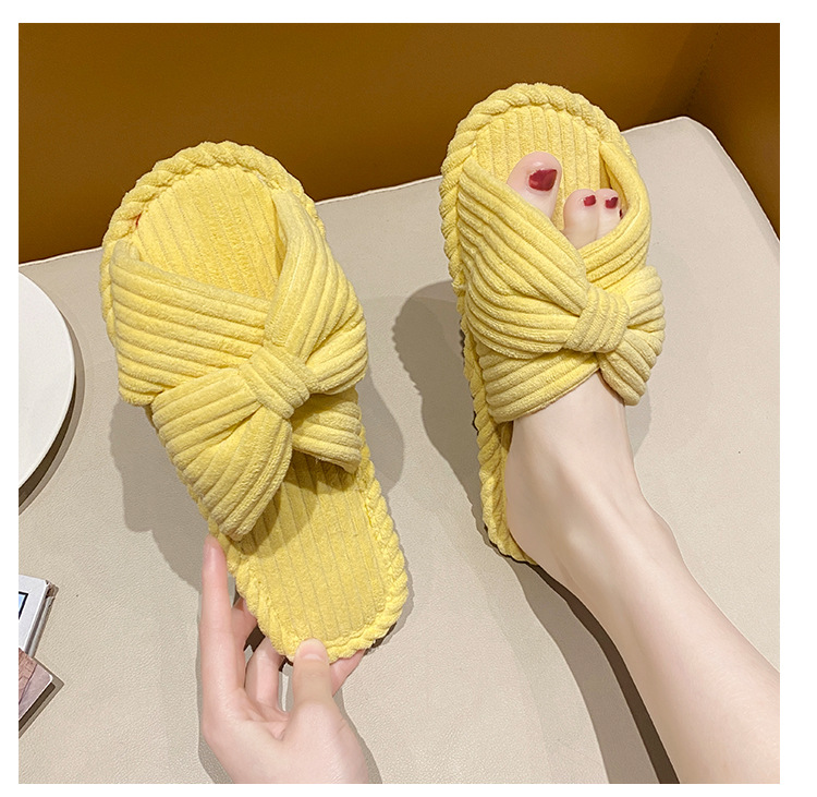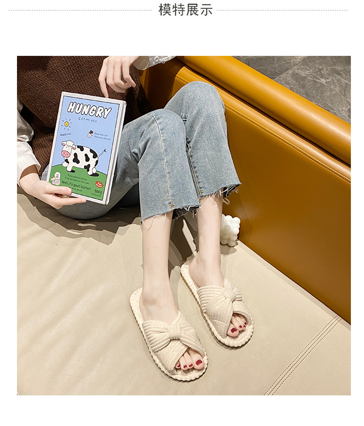 交叉平底一字拖四季新款少女心蝴蝶可爱居家室内软底舒适棉麻拖鞋