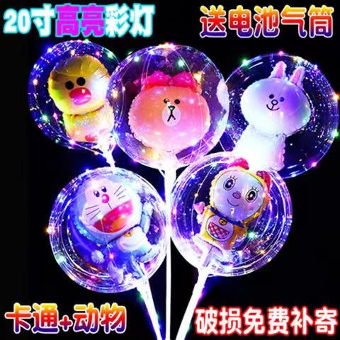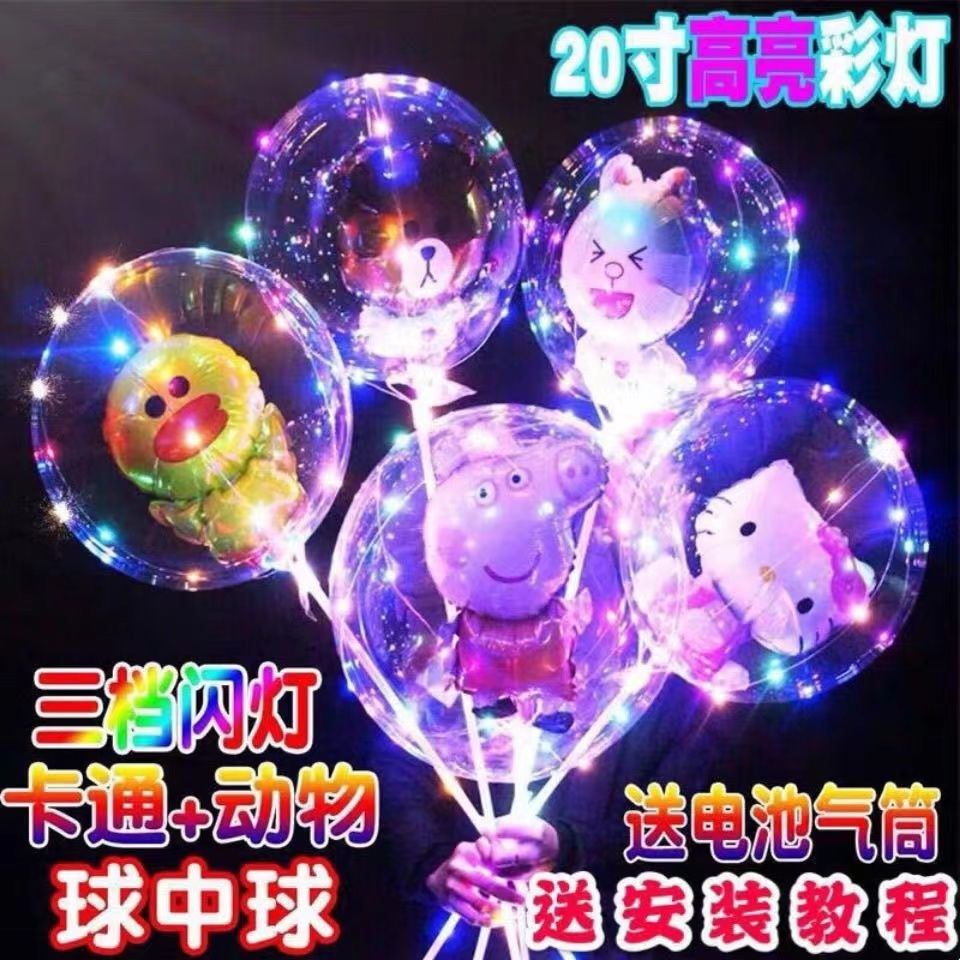 【爆款闪灯】网红卡通气球波波球儿童卡通发光波波球夜市广场摆摊