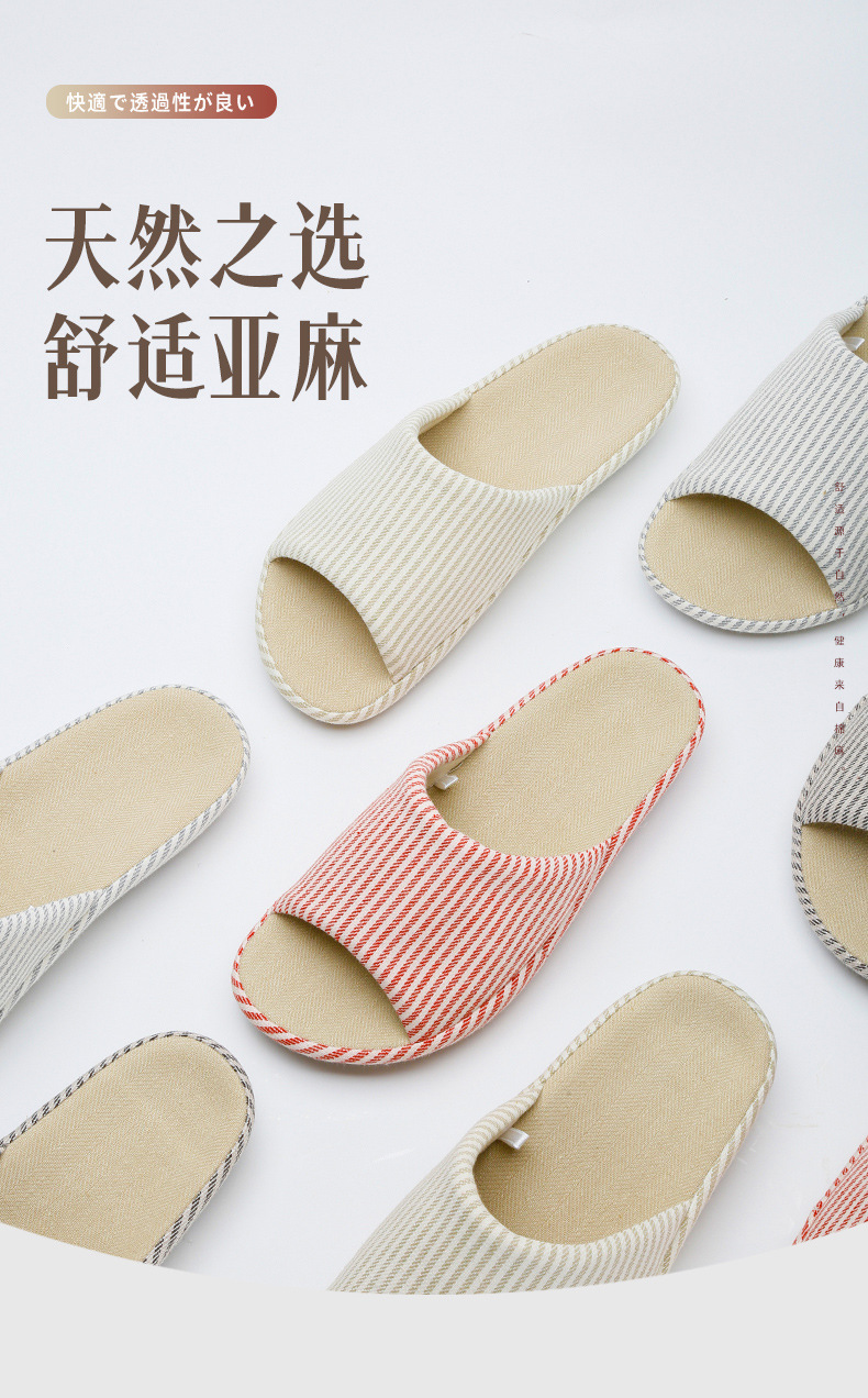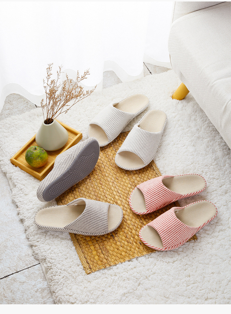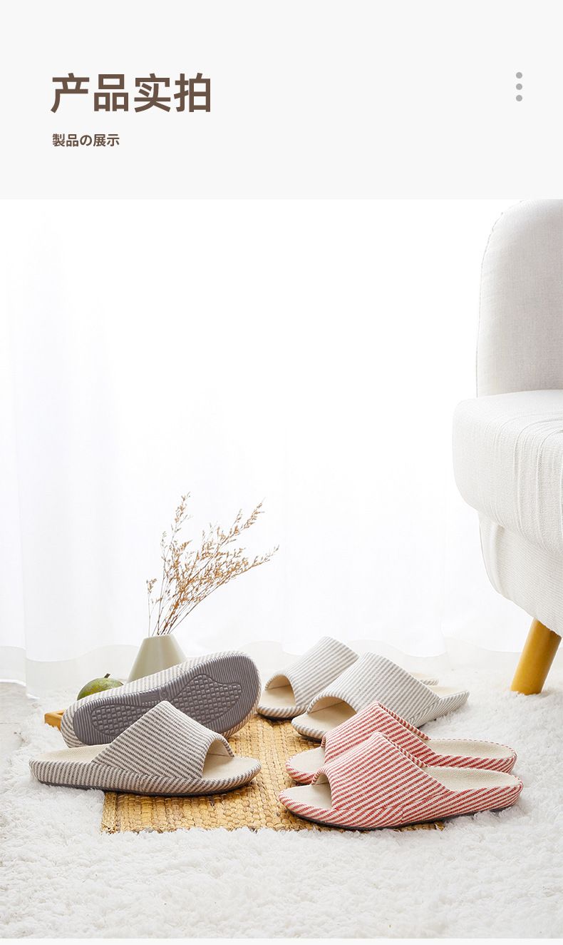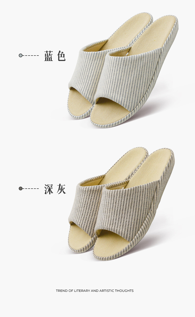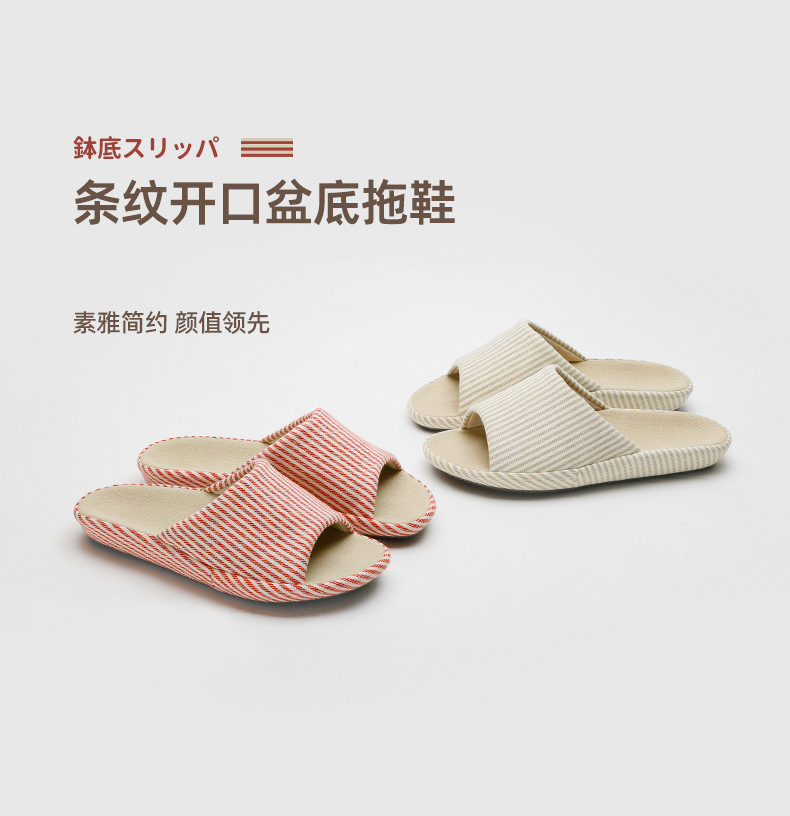 2025春夏新日系简约竖条纹棉麻厚底防水防滑盆底静音家居情侣拖鞋