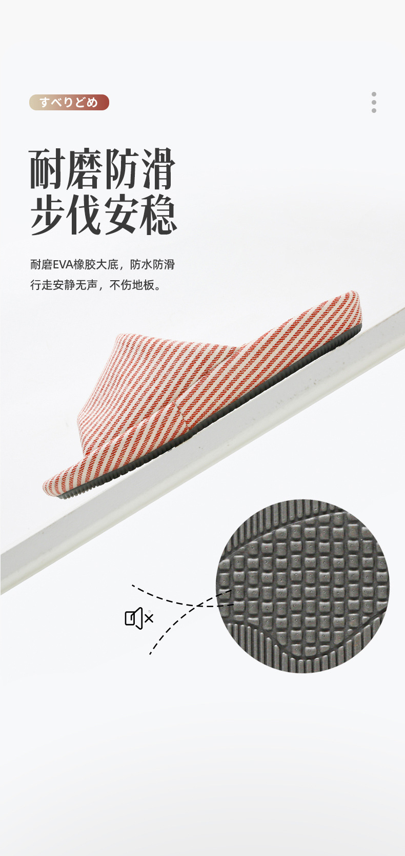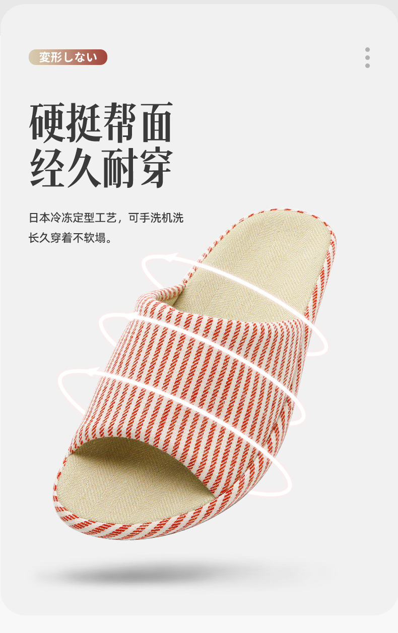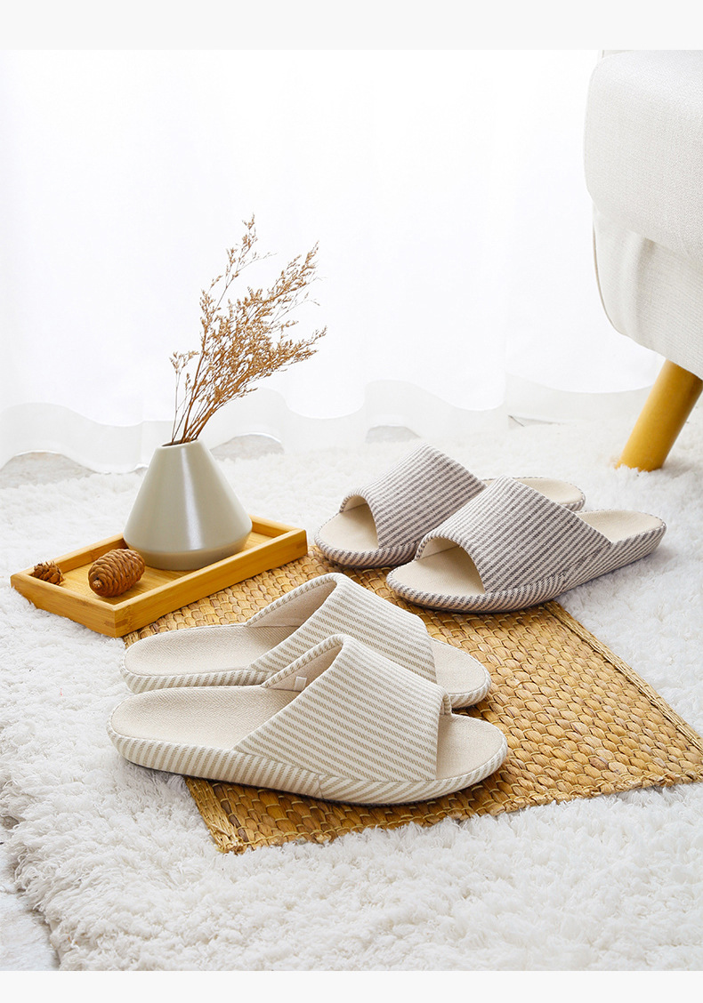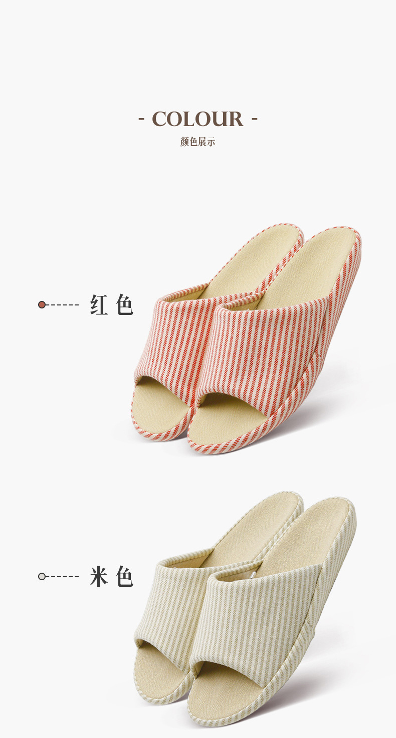 2025春夏新日系简约竖条纹棉麻厚底防水防滑盆底静音家居情侣拖鞋