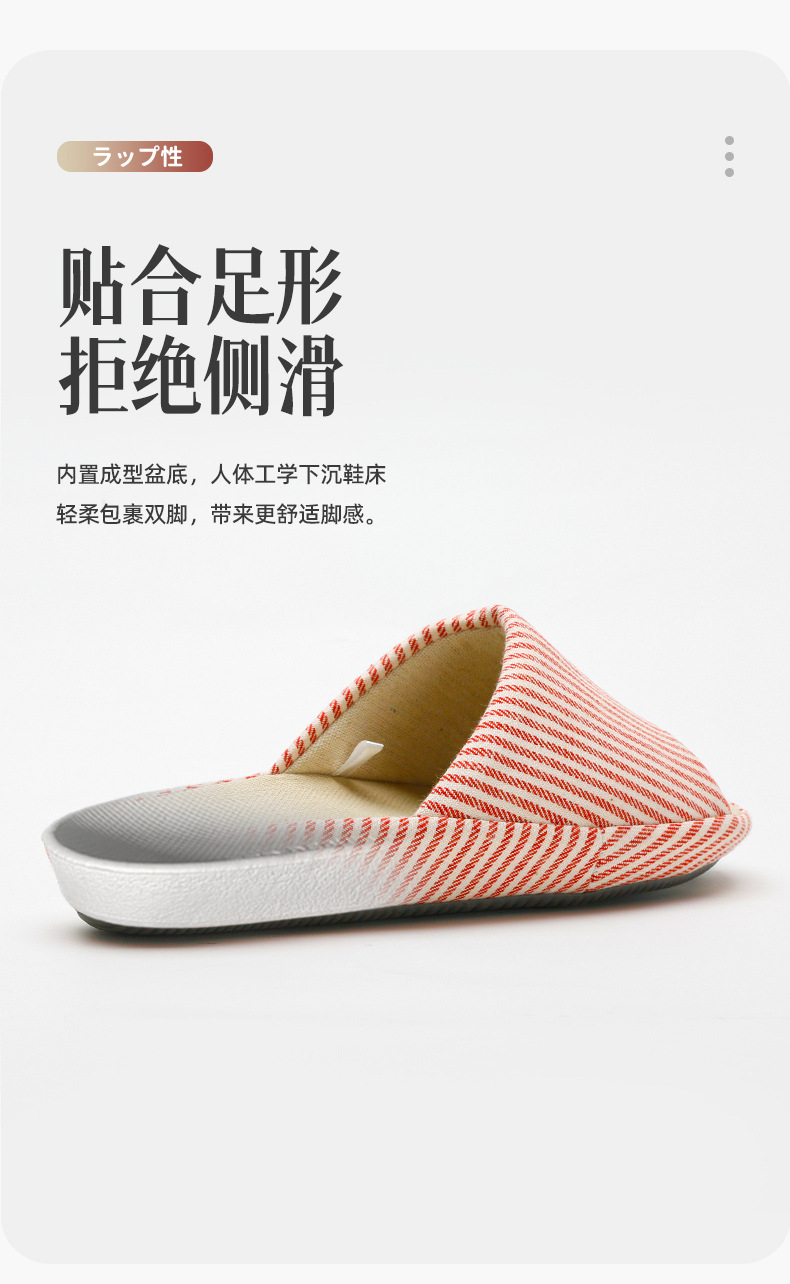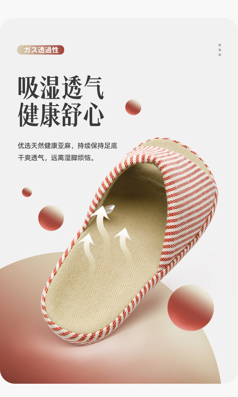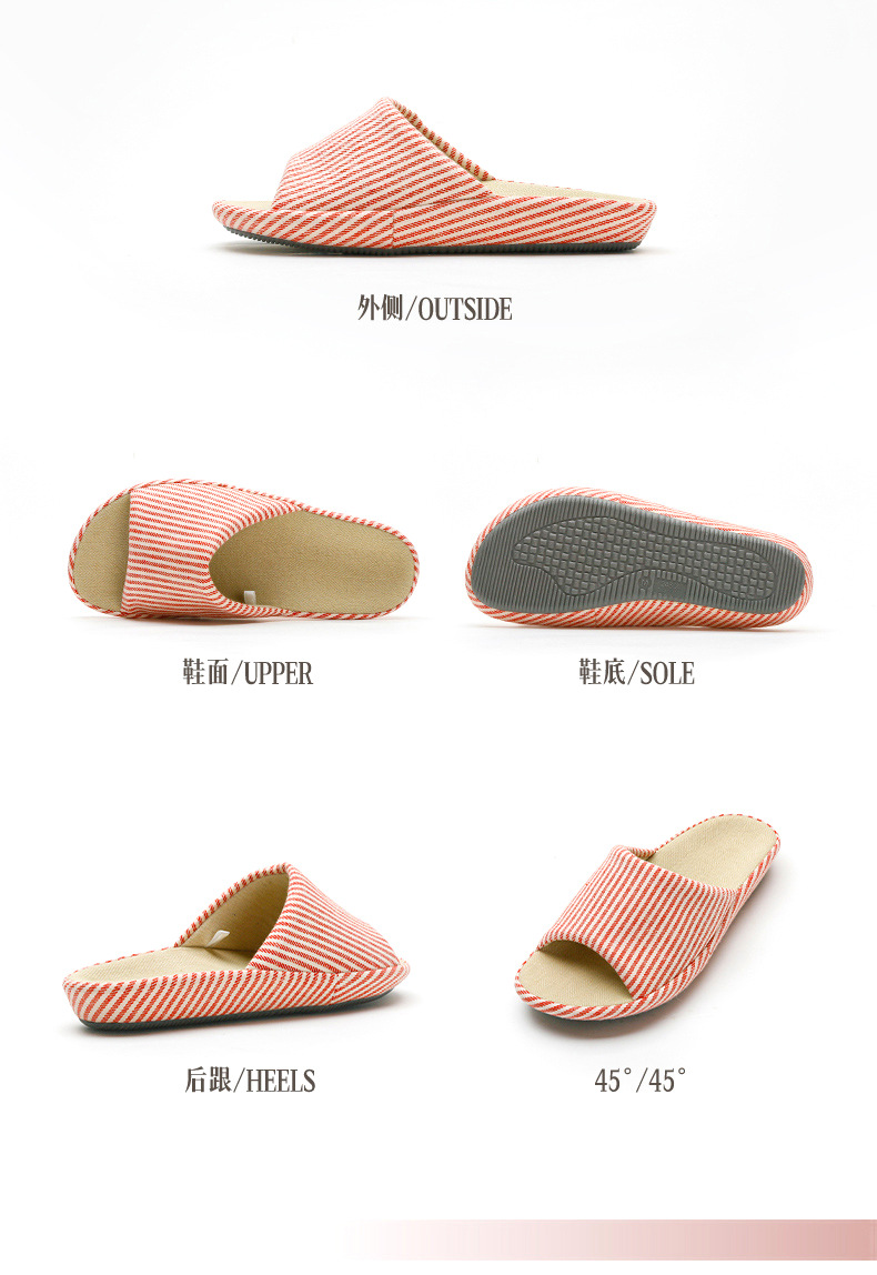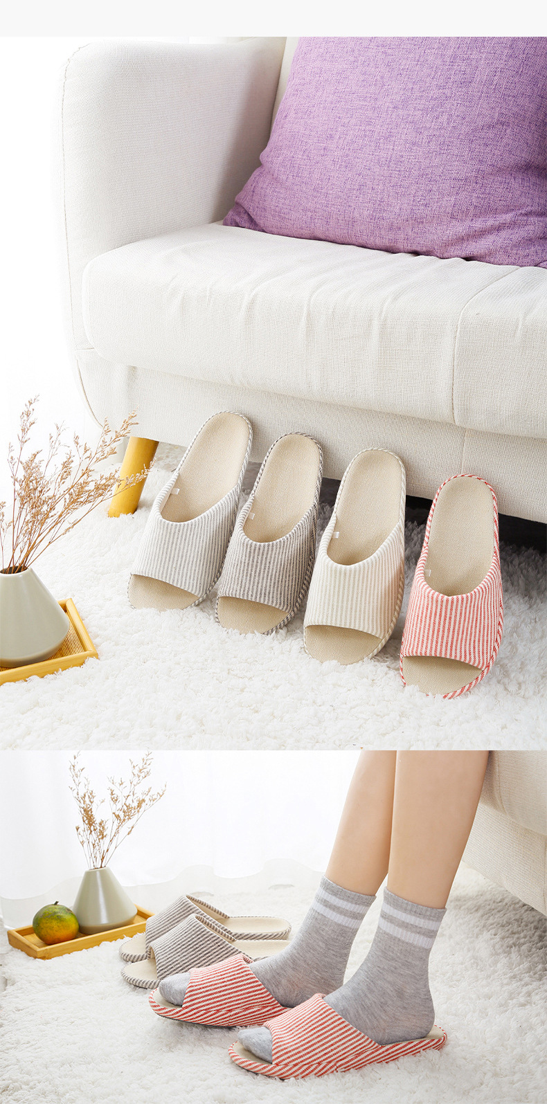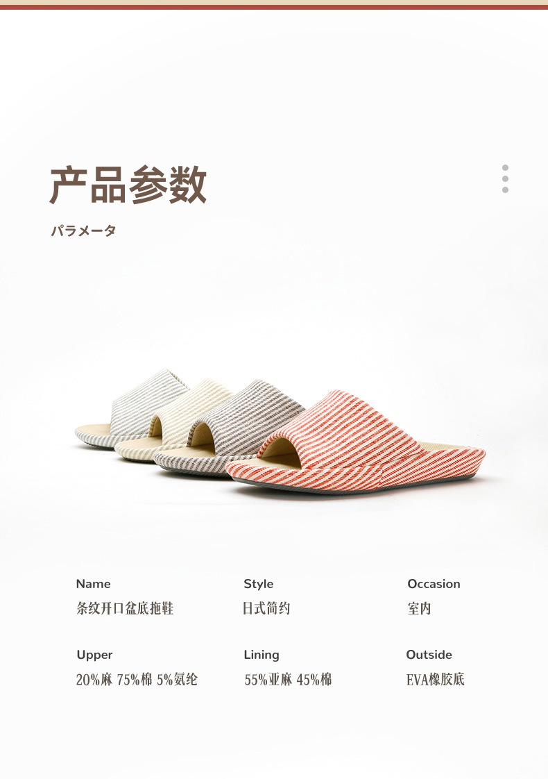 2025春夏新日系简约竖条纹棉麻厚底防水防滑盆底静音家居情侣拖鞋