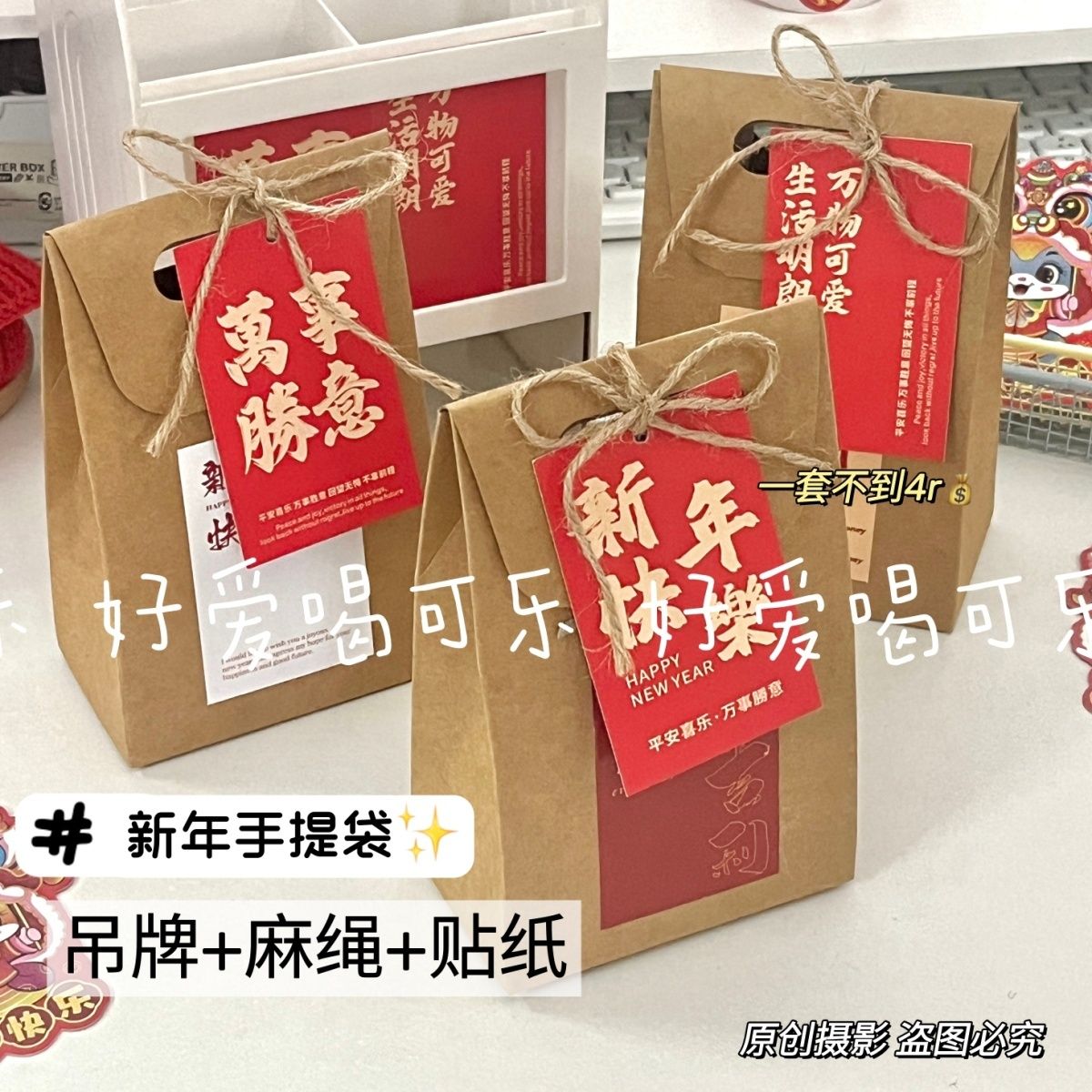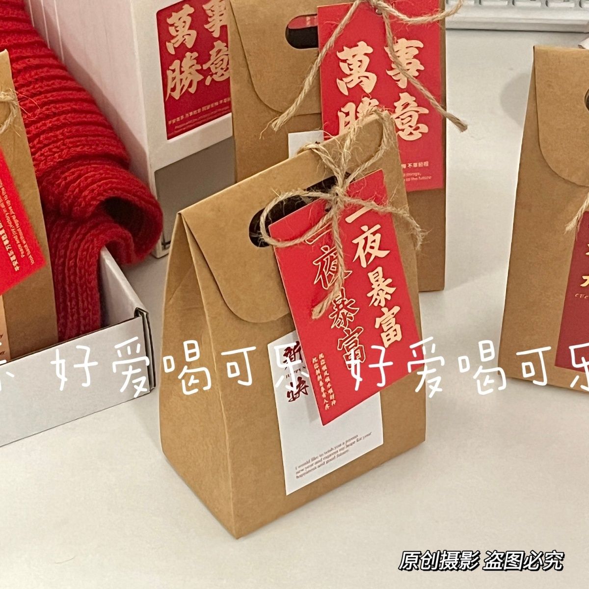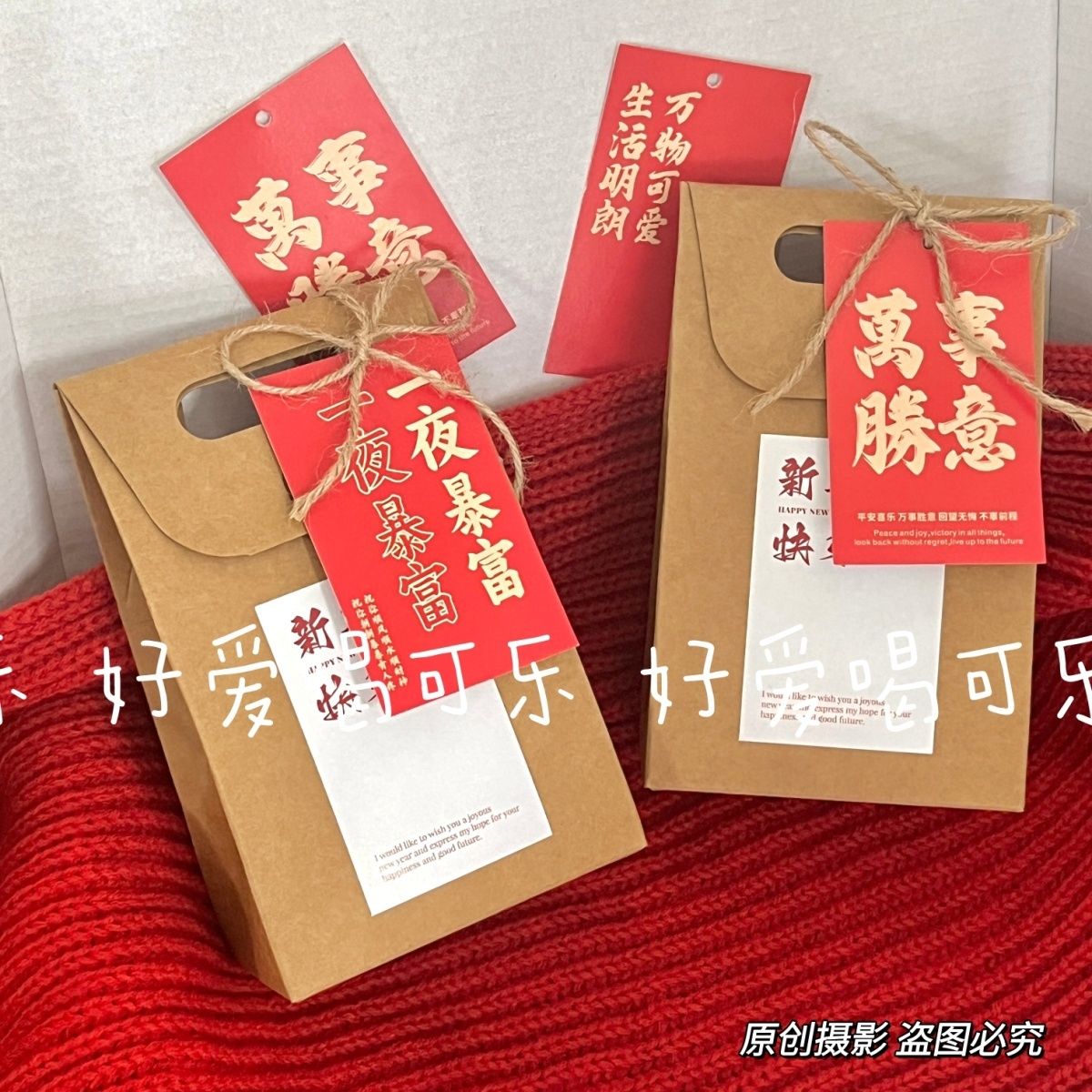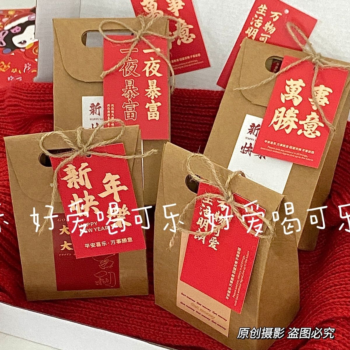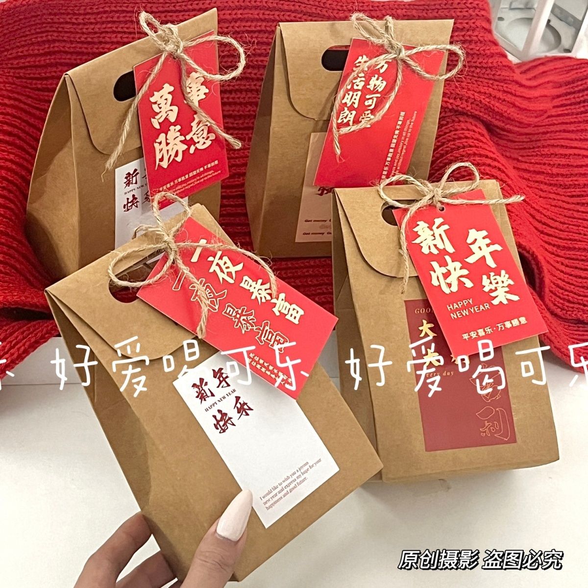 ins新年棕色纸袋牛皮纸出物打包礼品袋手账贴纸包装袋自封袋