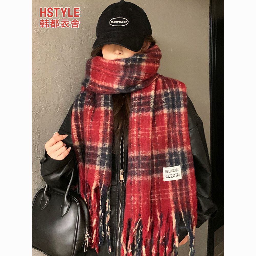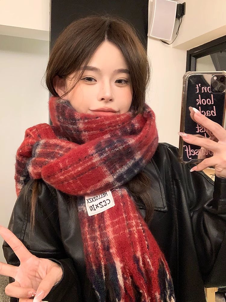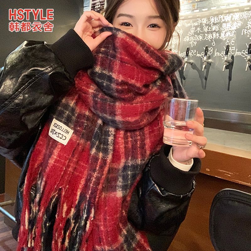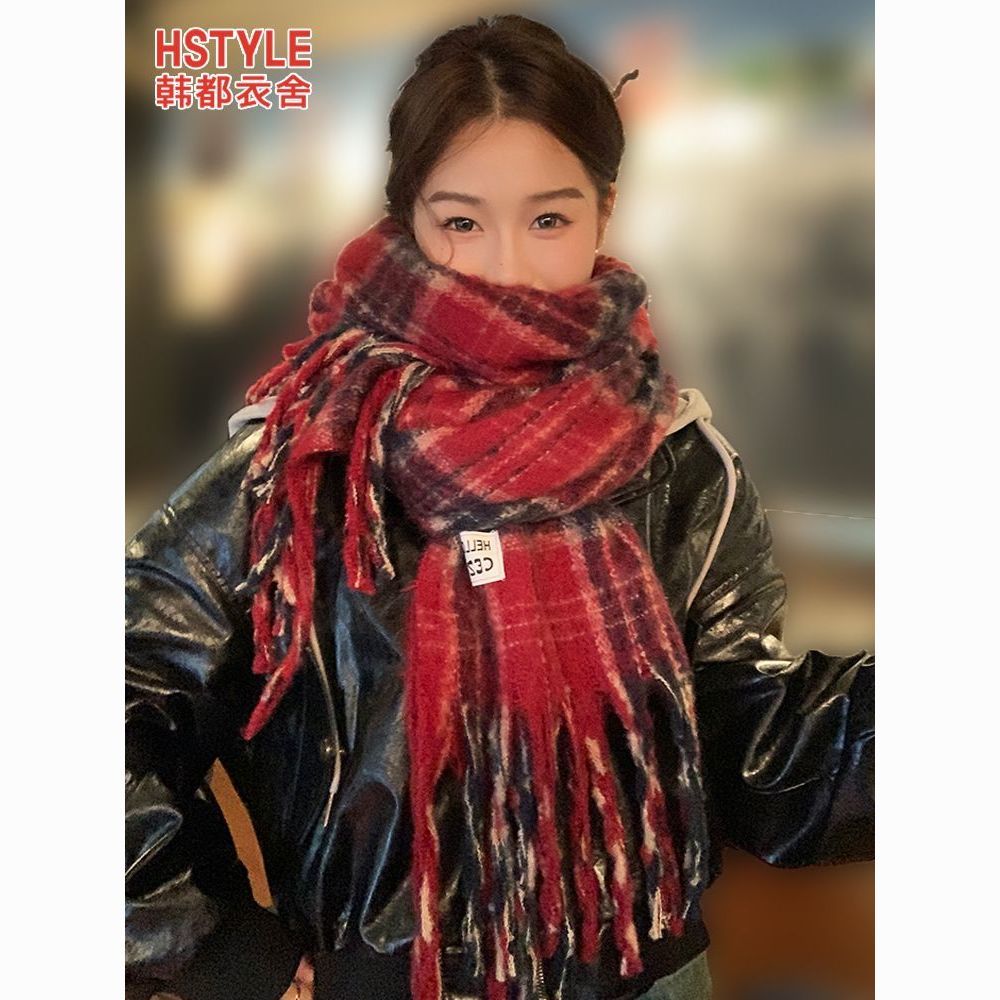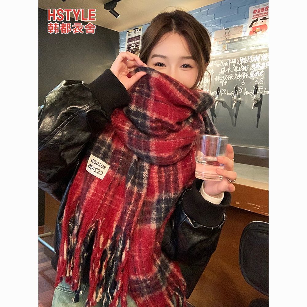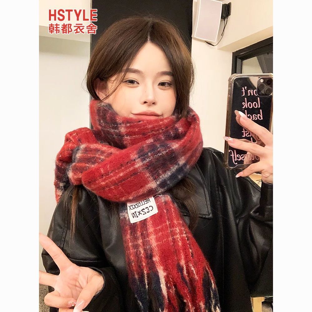 韩都衣舍安可拉红色围巾女冬季新款高级保暖加厚百搭披肩复古围脖