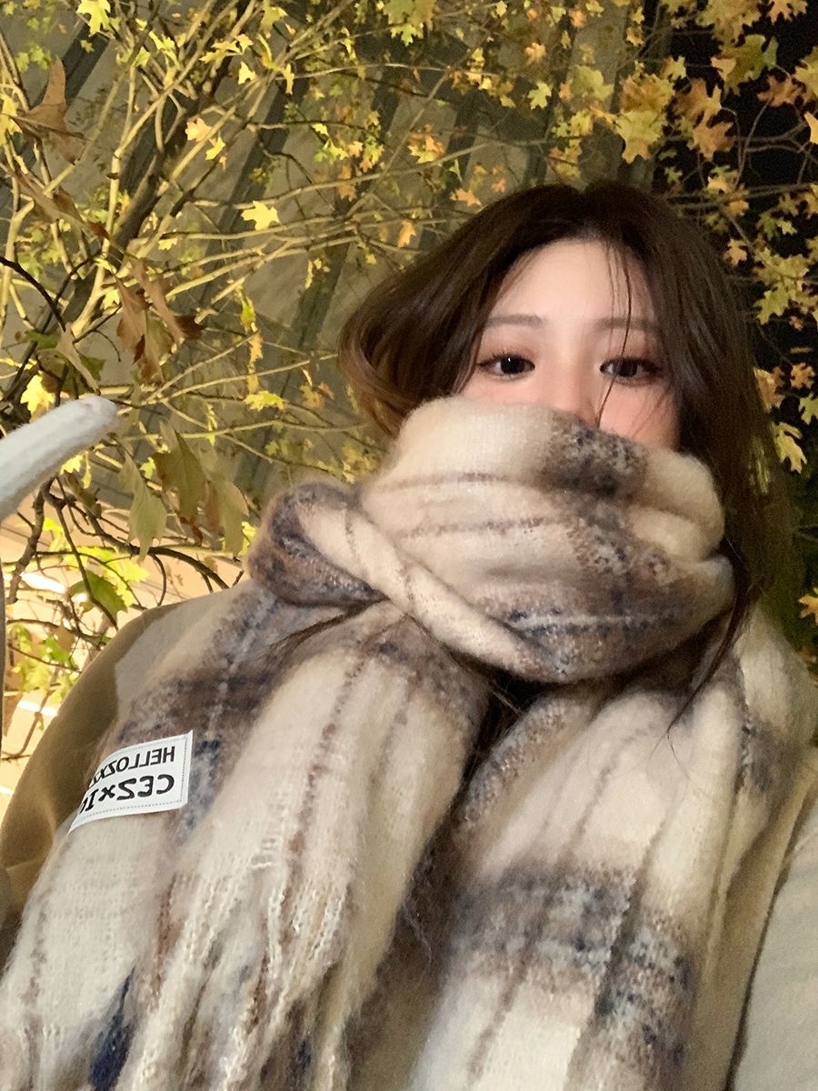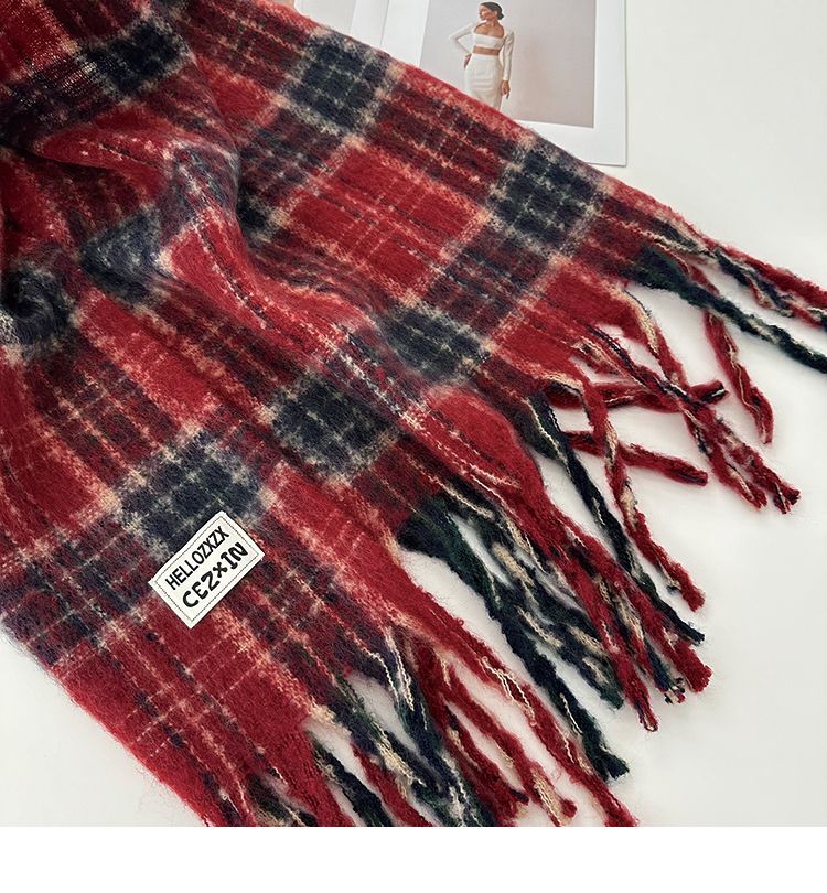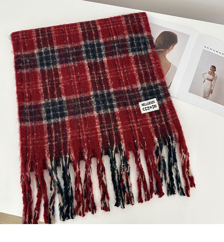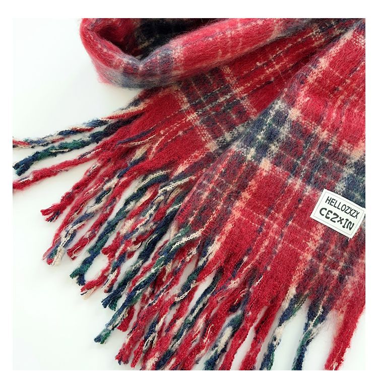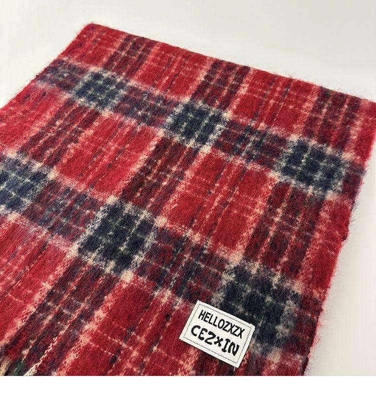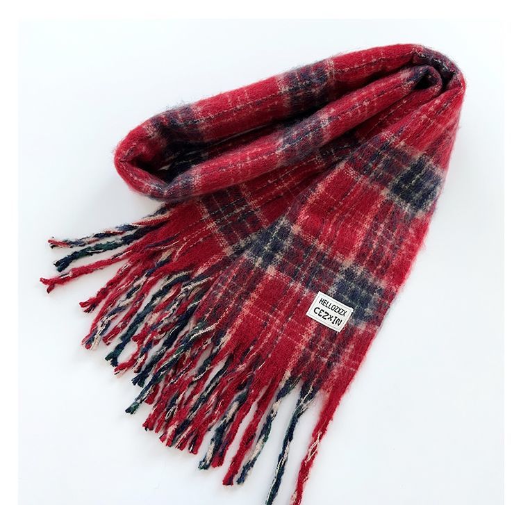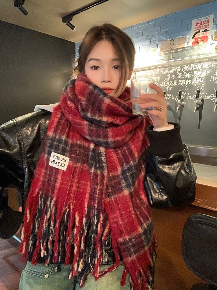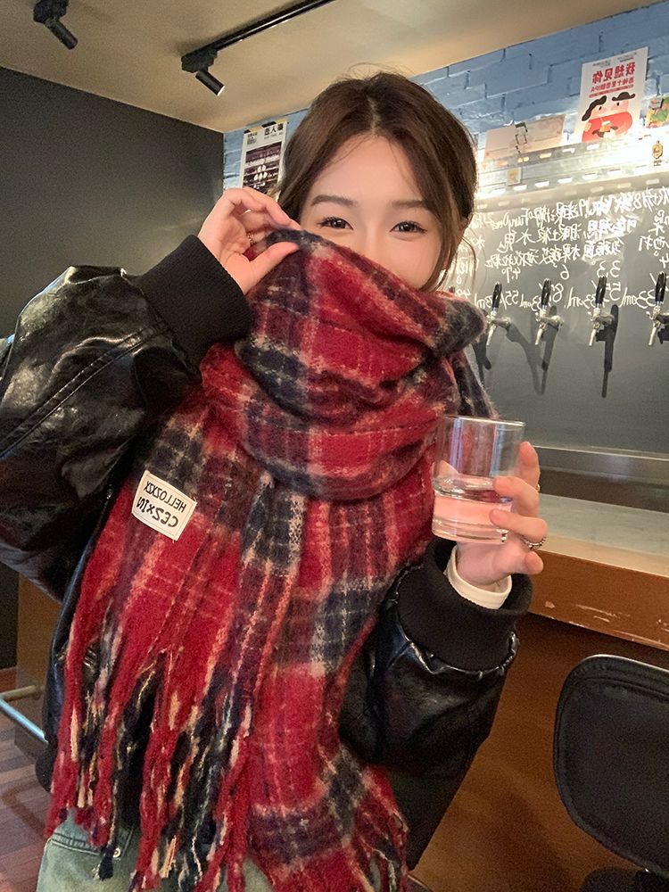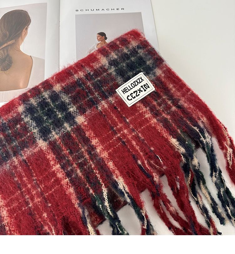 韩都衣舍安可拉红色围巾女冬季新款高级保暖加厚百搭披肩复古围脖