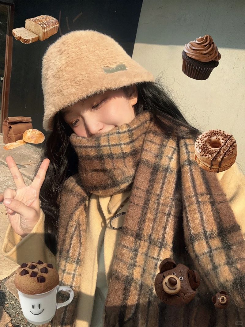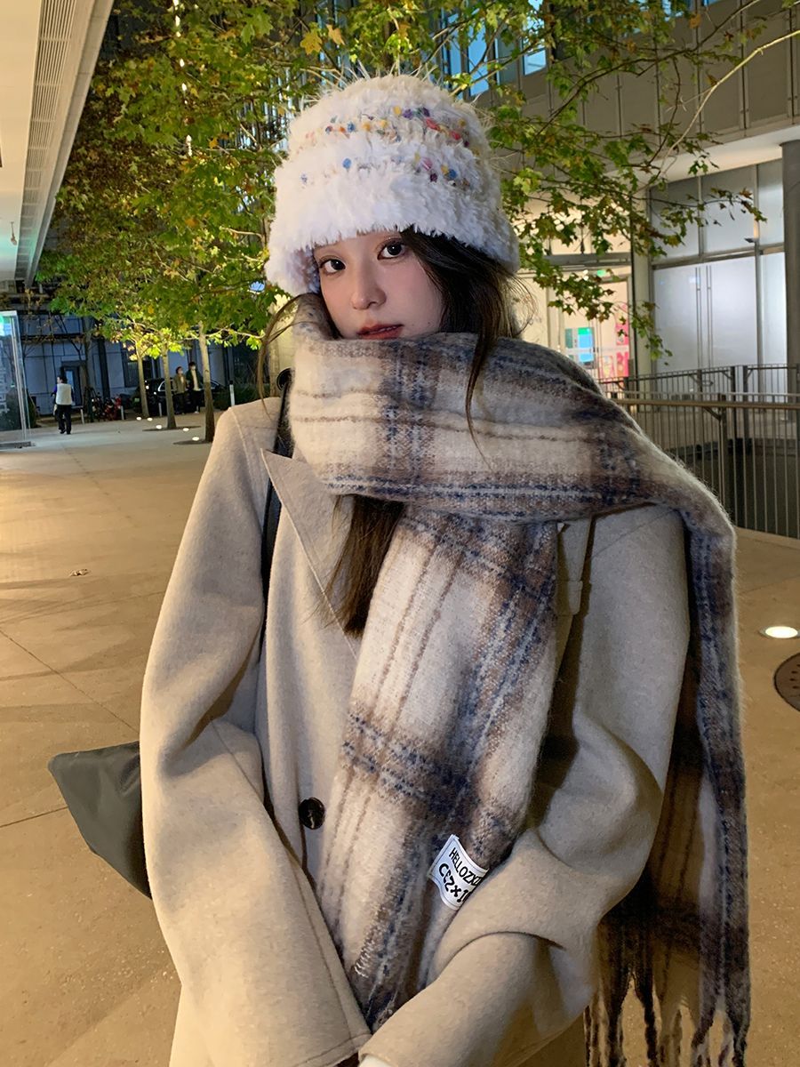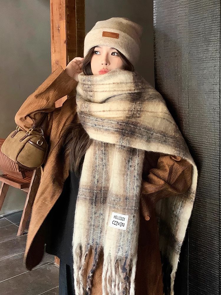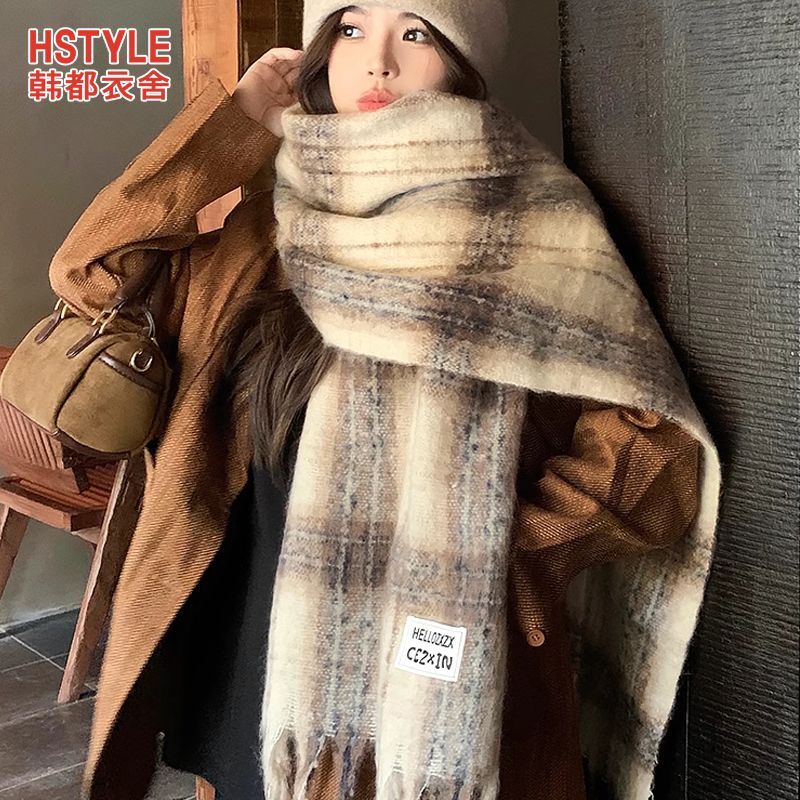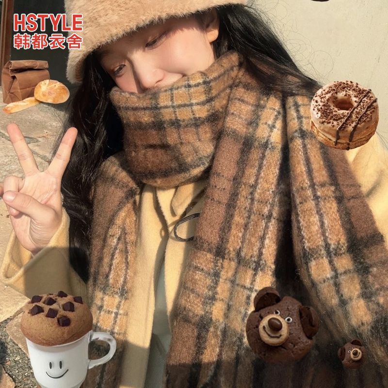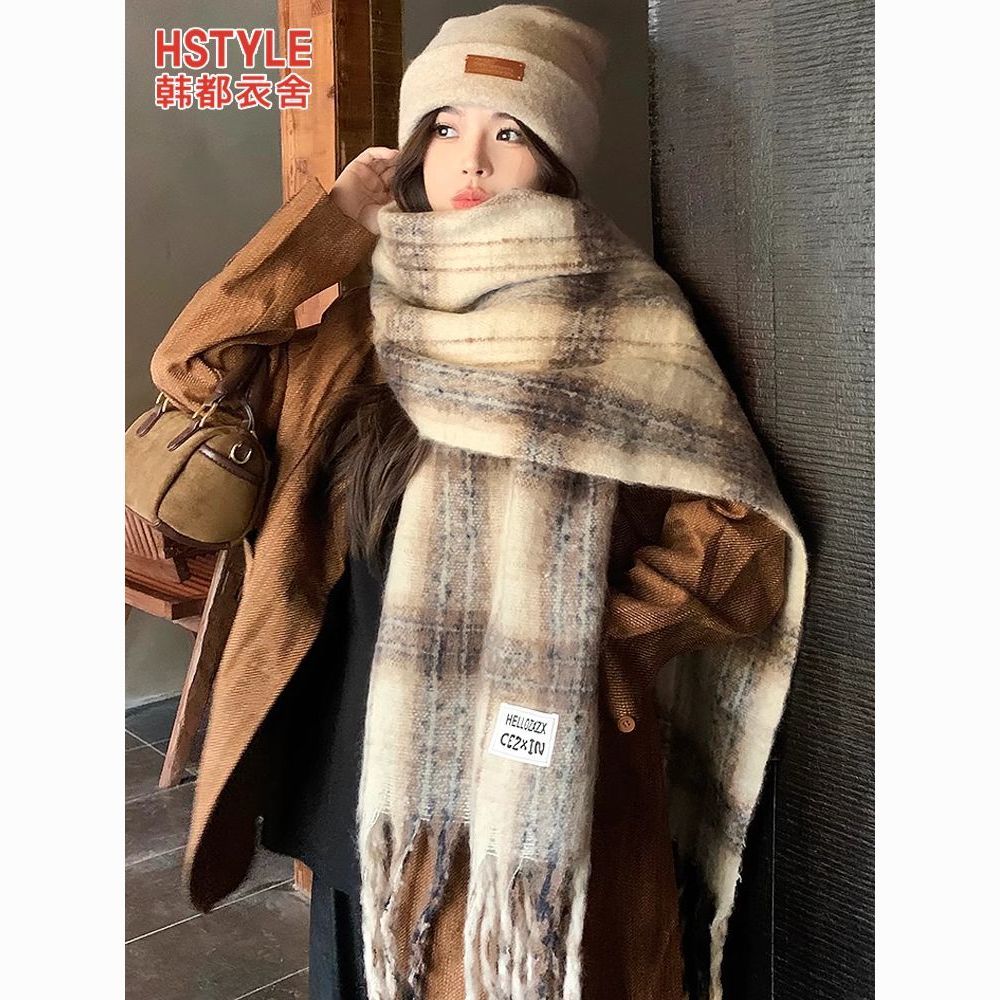 韩都衣舍安可拉红色围巾女冬季新款高级保暖加厚百搭披肩复古围脖