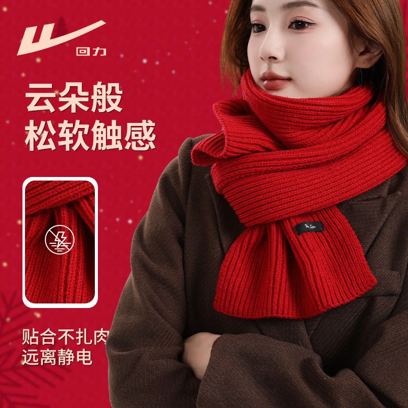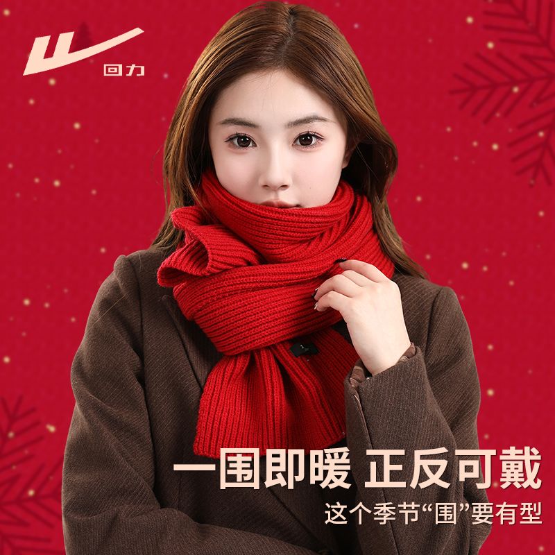回力围巾女2025新款情侣新年节日氛围感秋冬加厚保暖时尚针织围脖