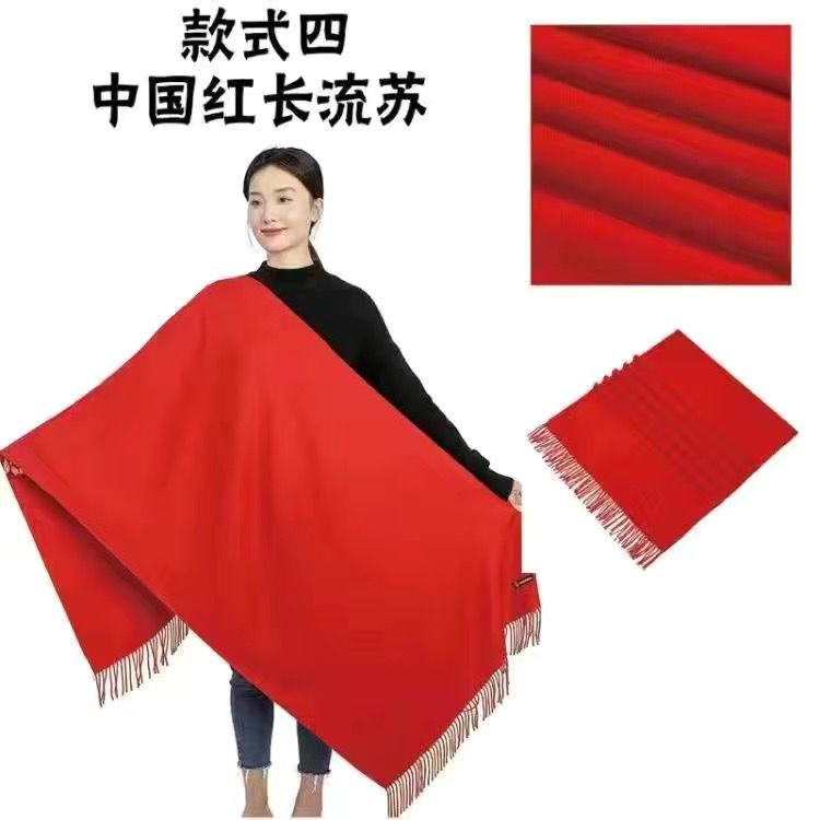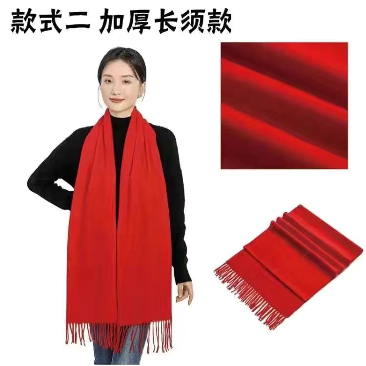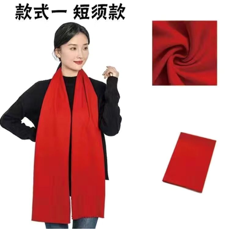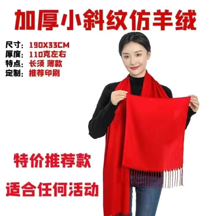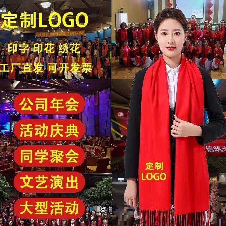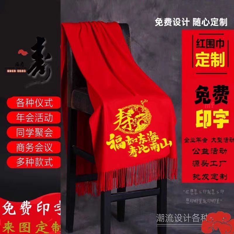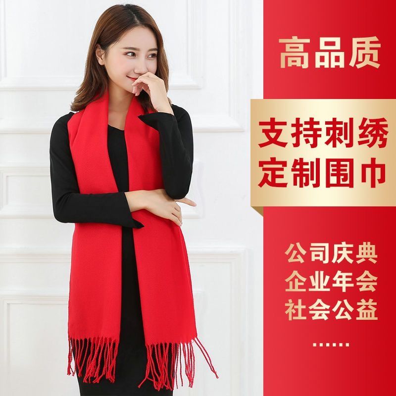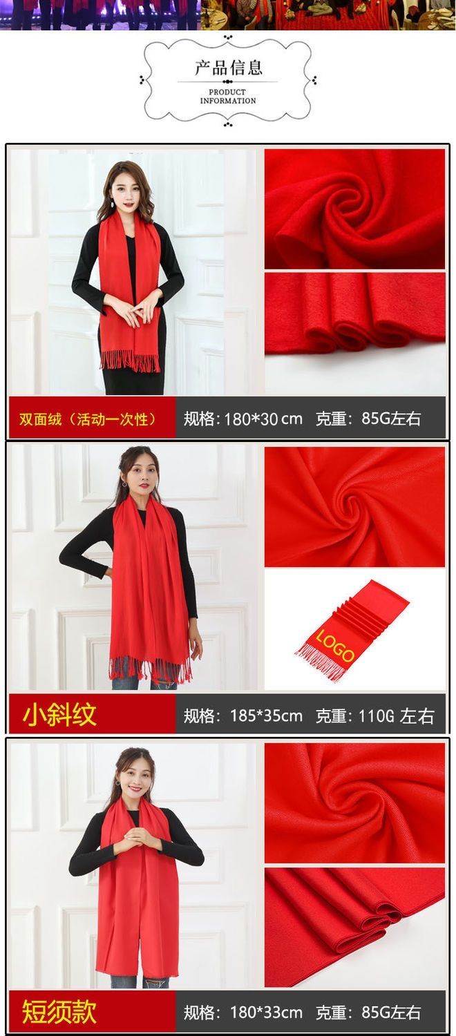 中国红围巾定制logo年会开业会议活动聚会大红色围巾diy刺绣印字